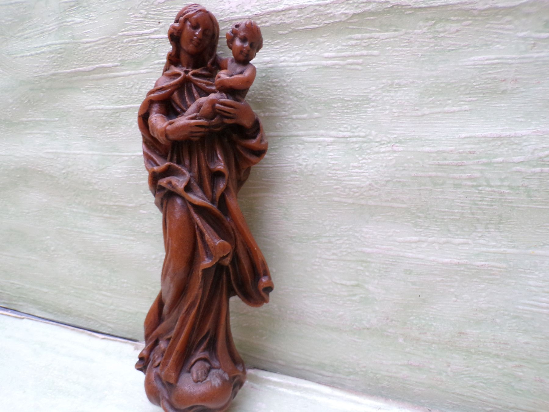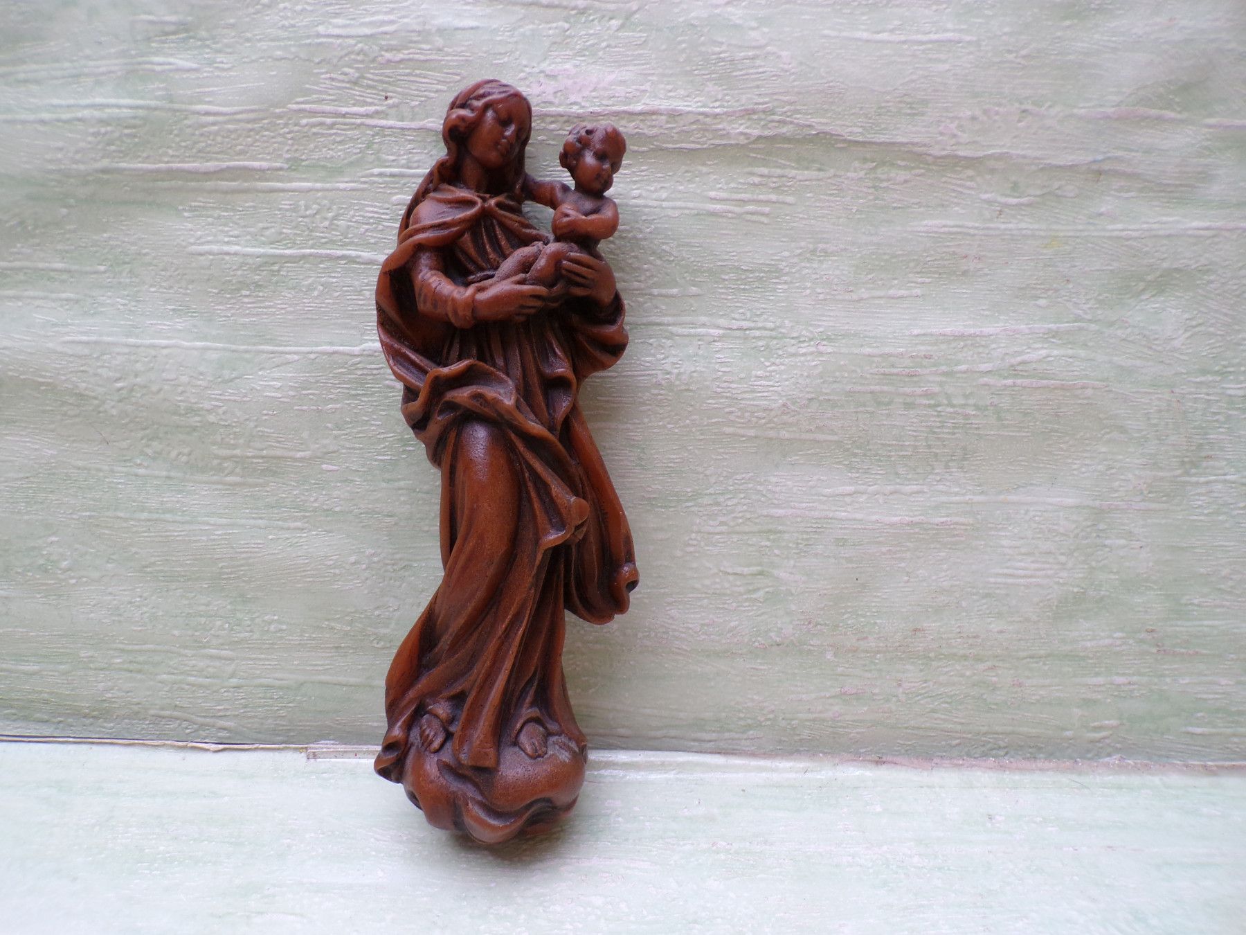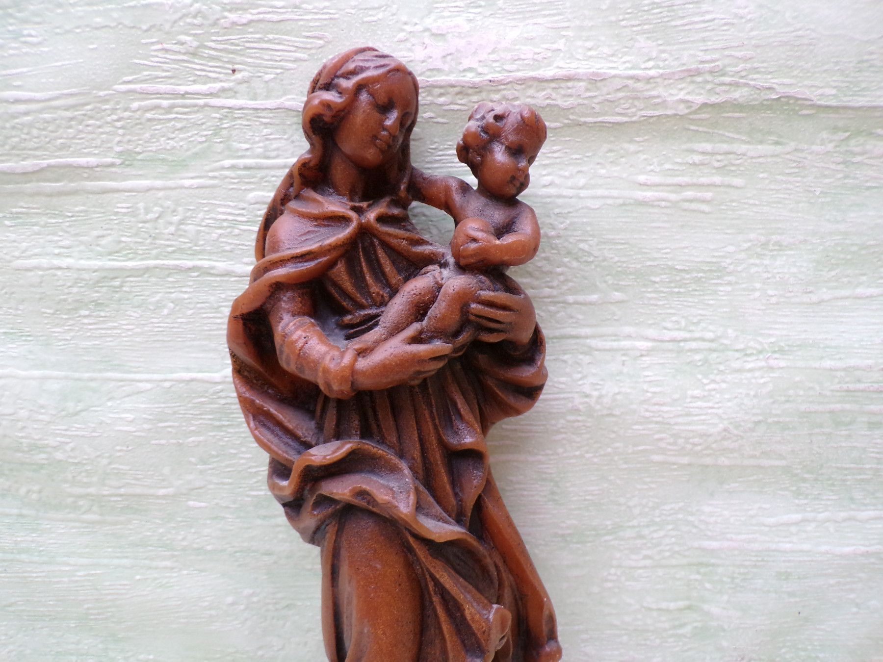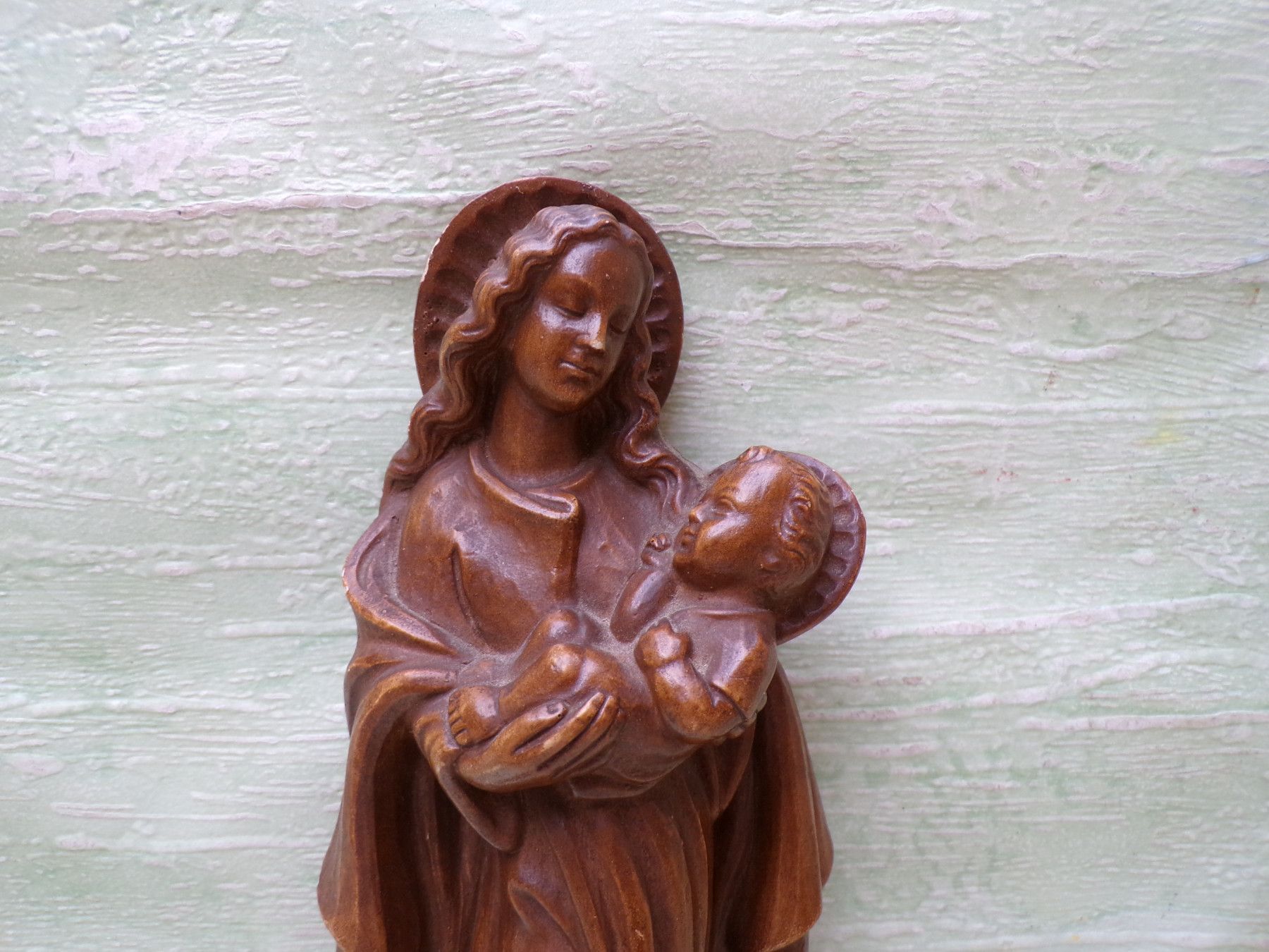 ALT Madonna Mutter Gottes Jesuskind Religion Figuren Wachs Kunststein Wandbild