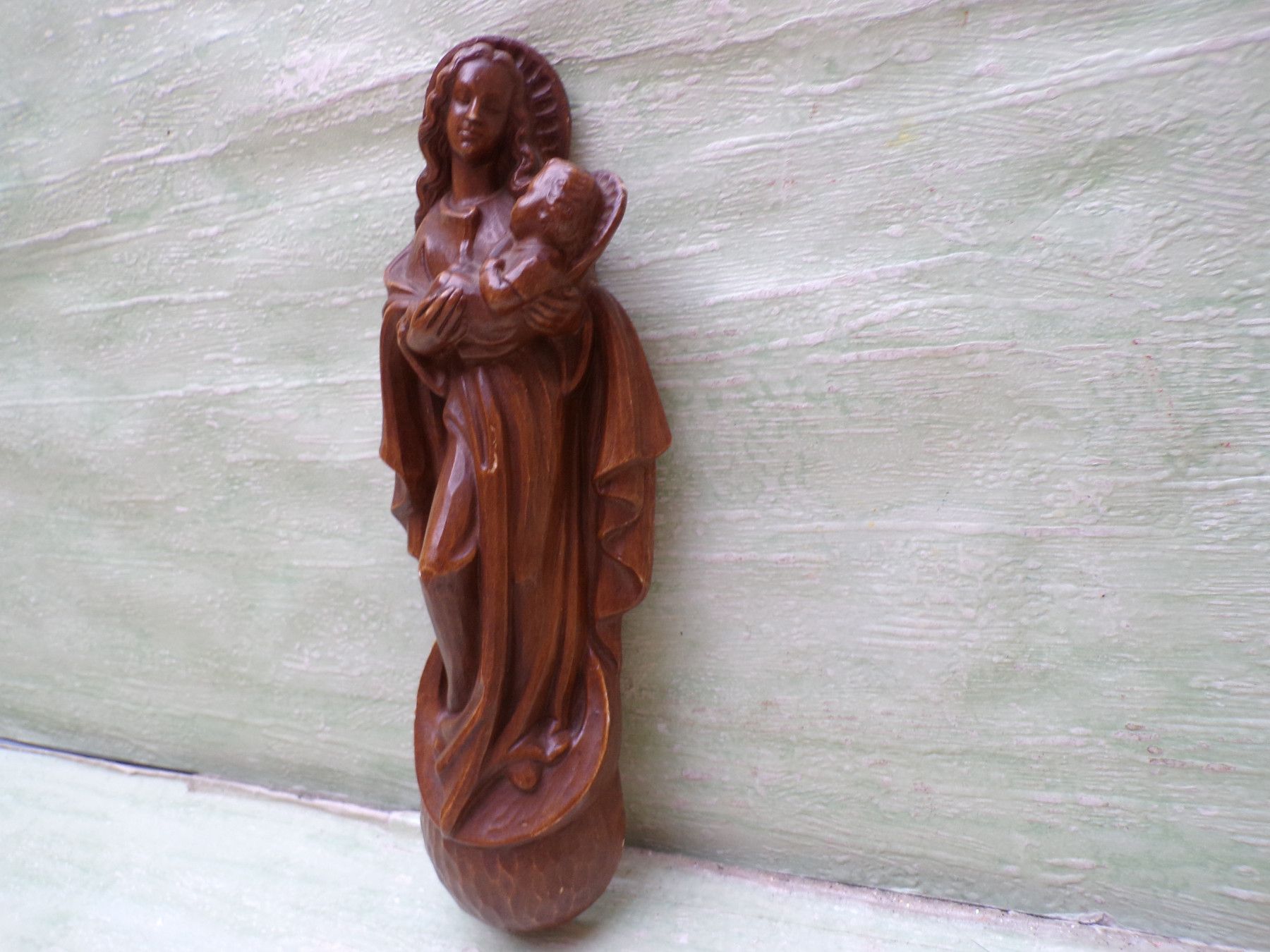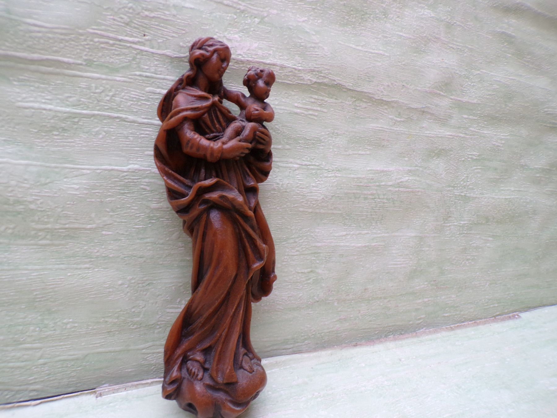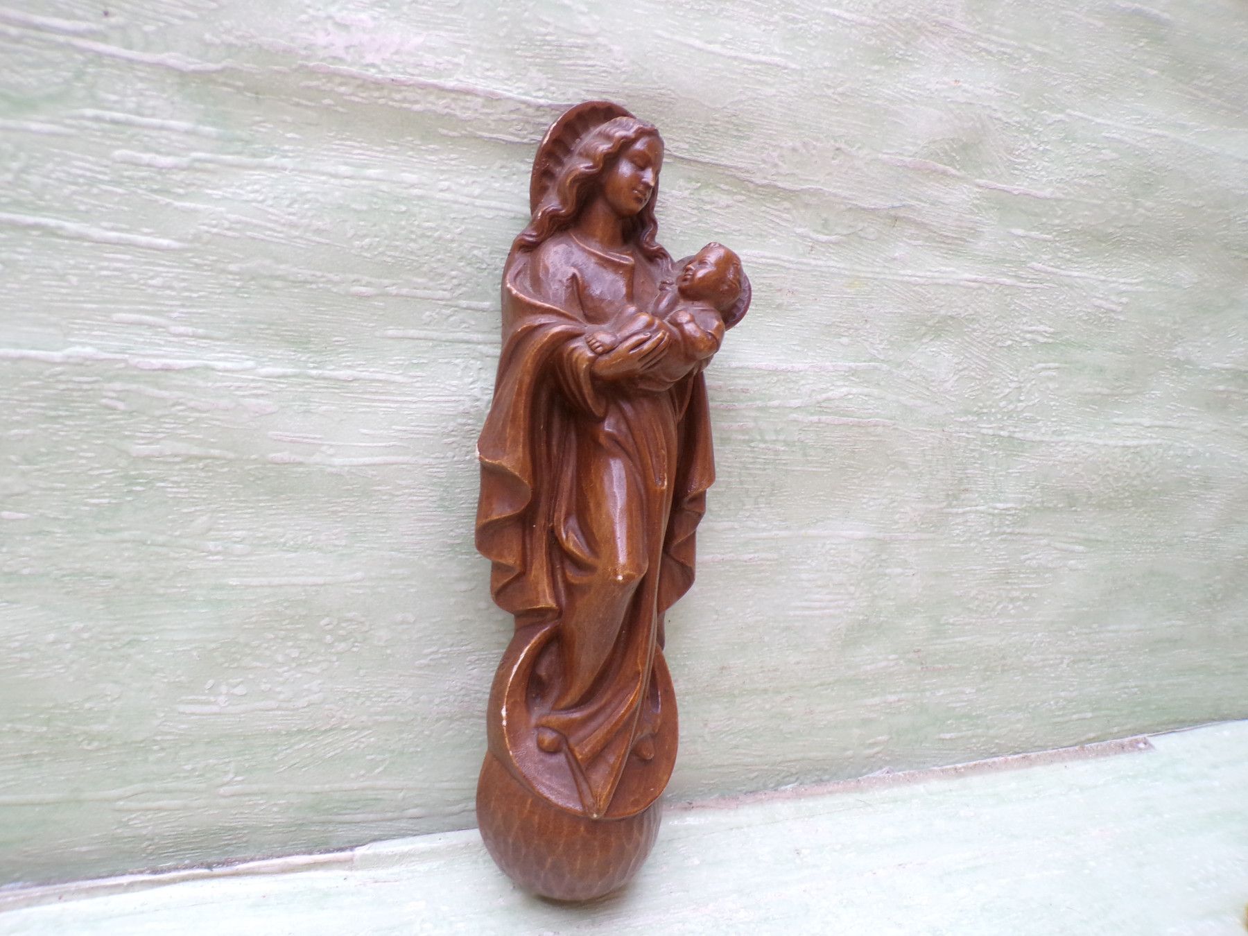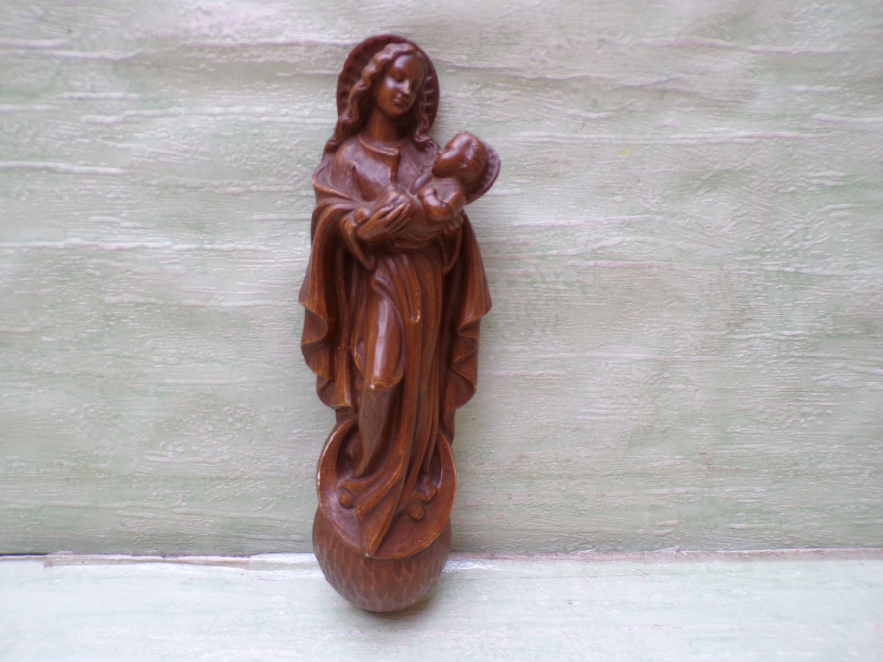 ALT Madonna Mutter Gottes Jesuskind Religion Figuren Wachs Kunststein Wandbild