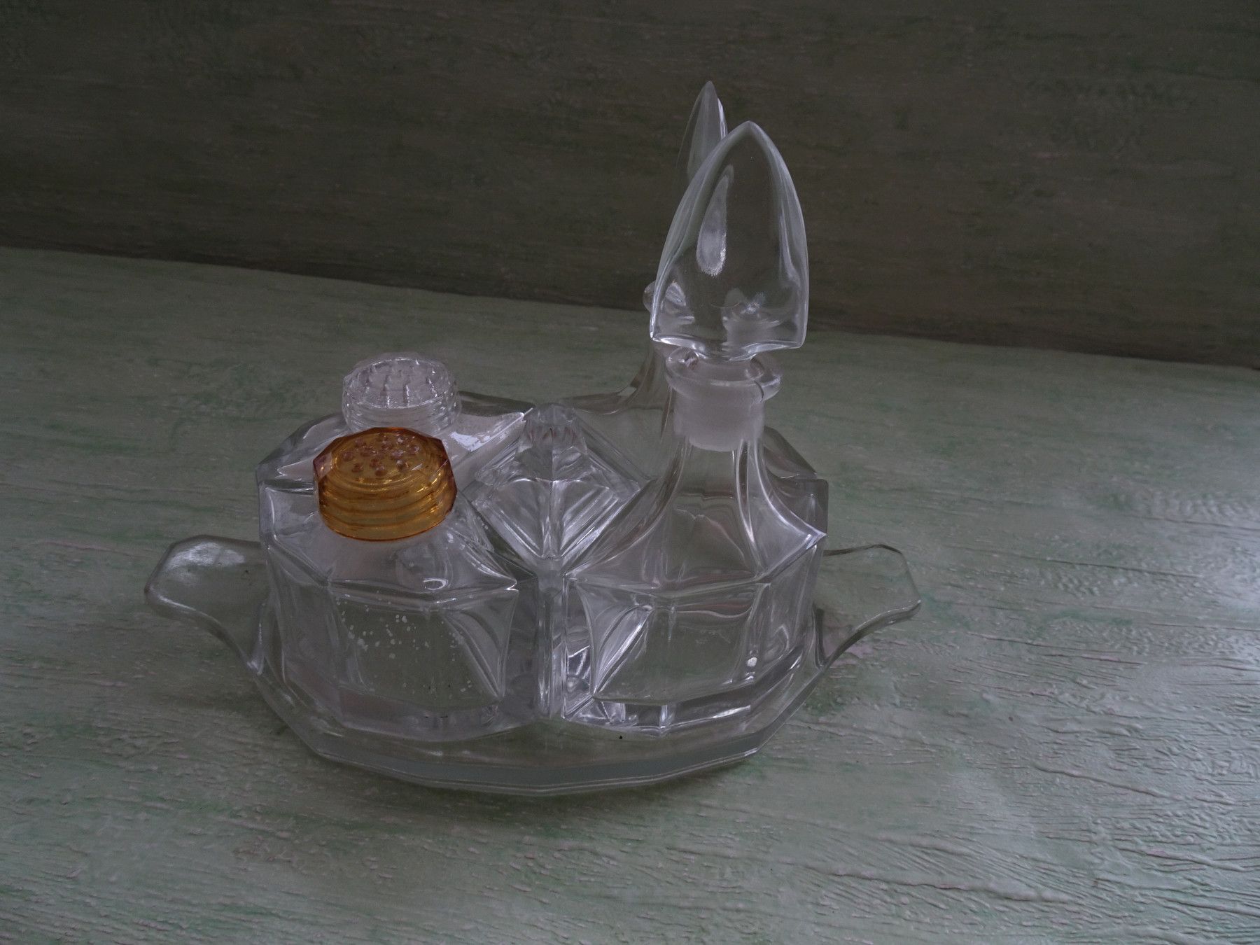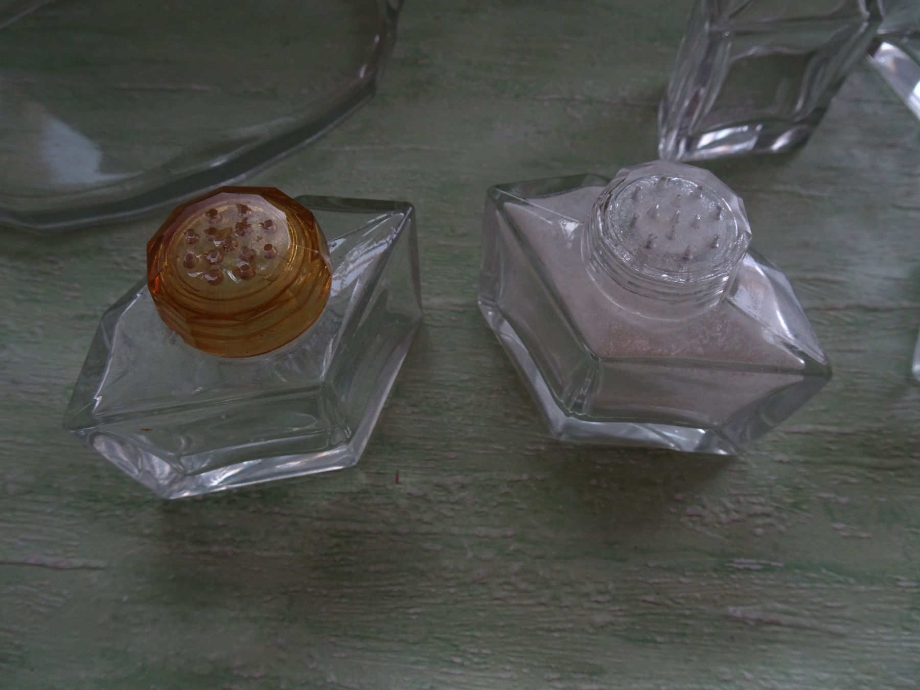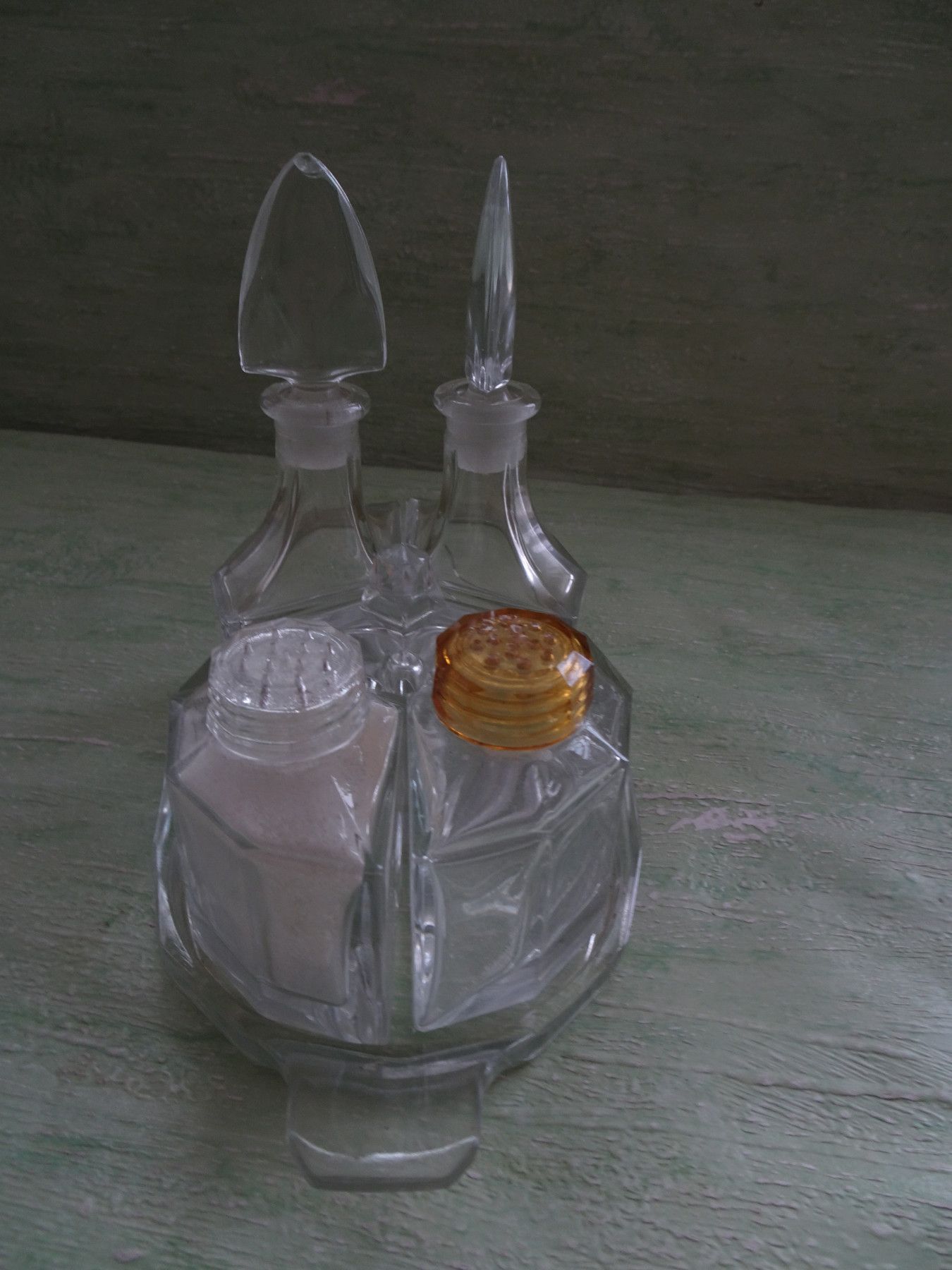 ALT : Menage dekorative eckige Glas-Streuer Salz Pfeffer Senftopf Essig Öl