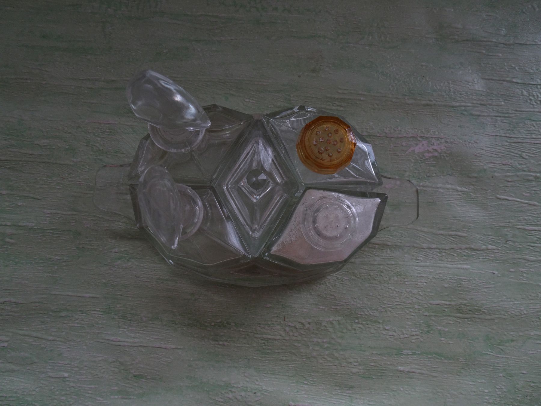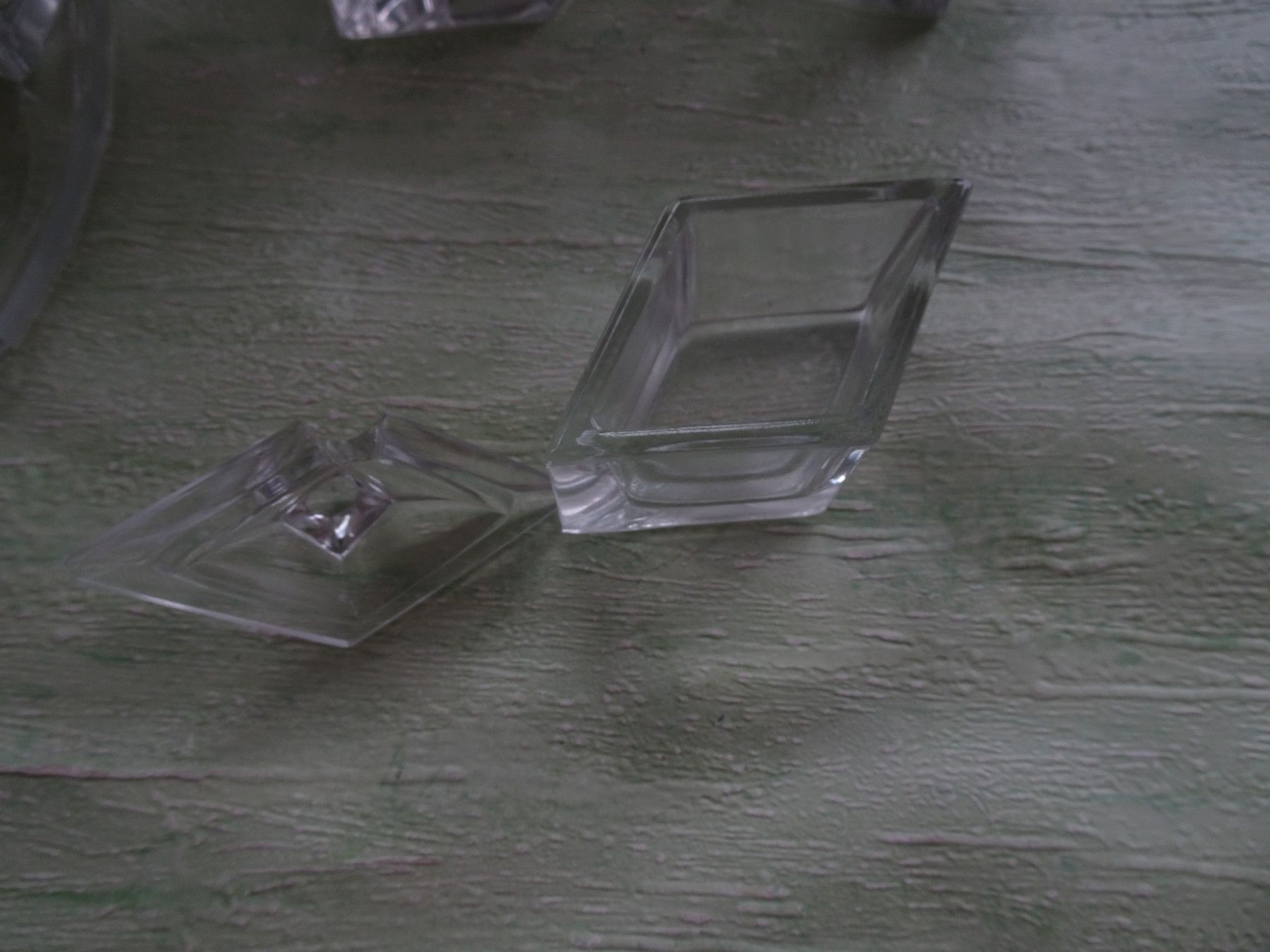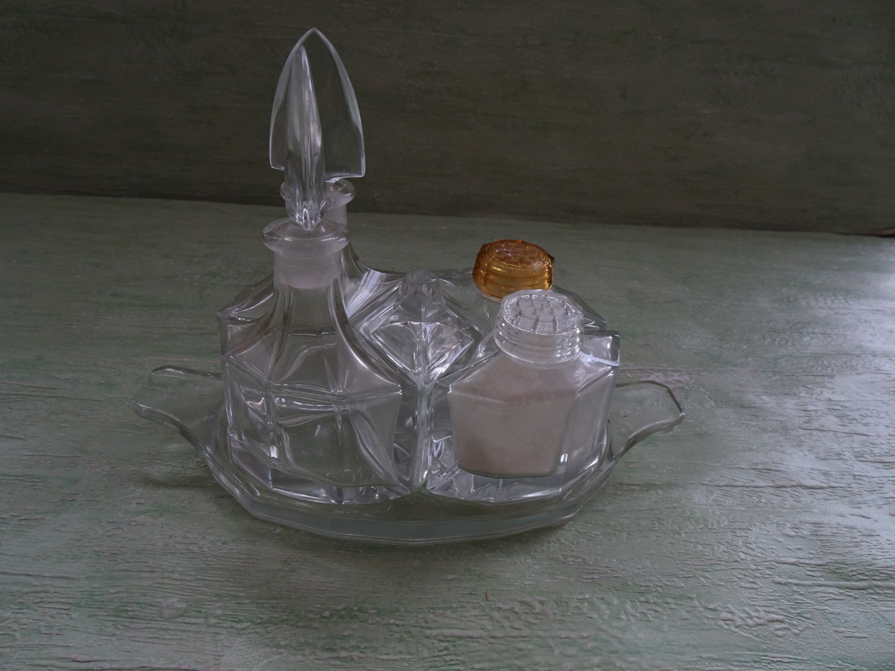 ALT : Menage dekorative eckige Glas-Streuer Salz Pfeffer Senftopf Essig Öl