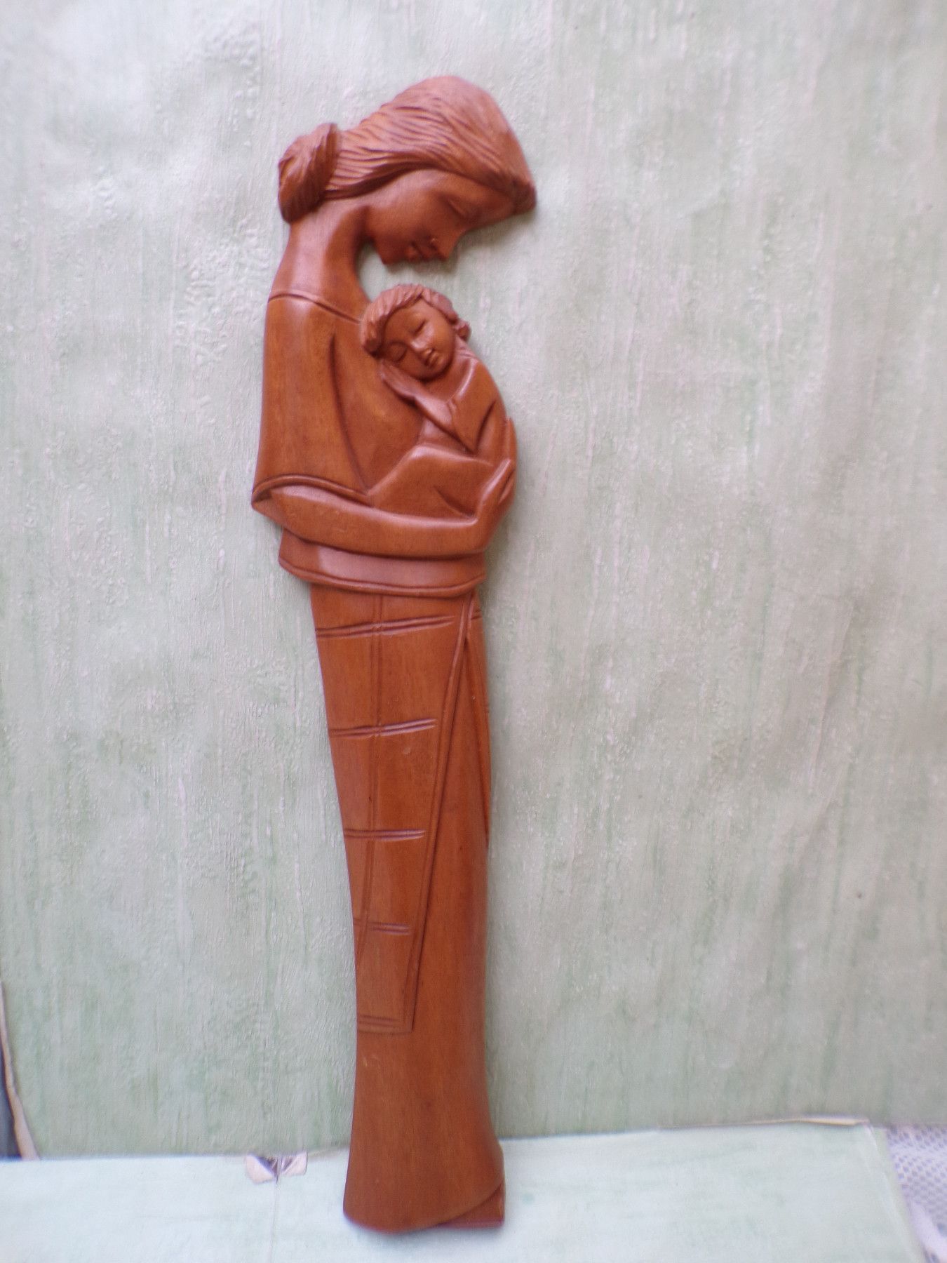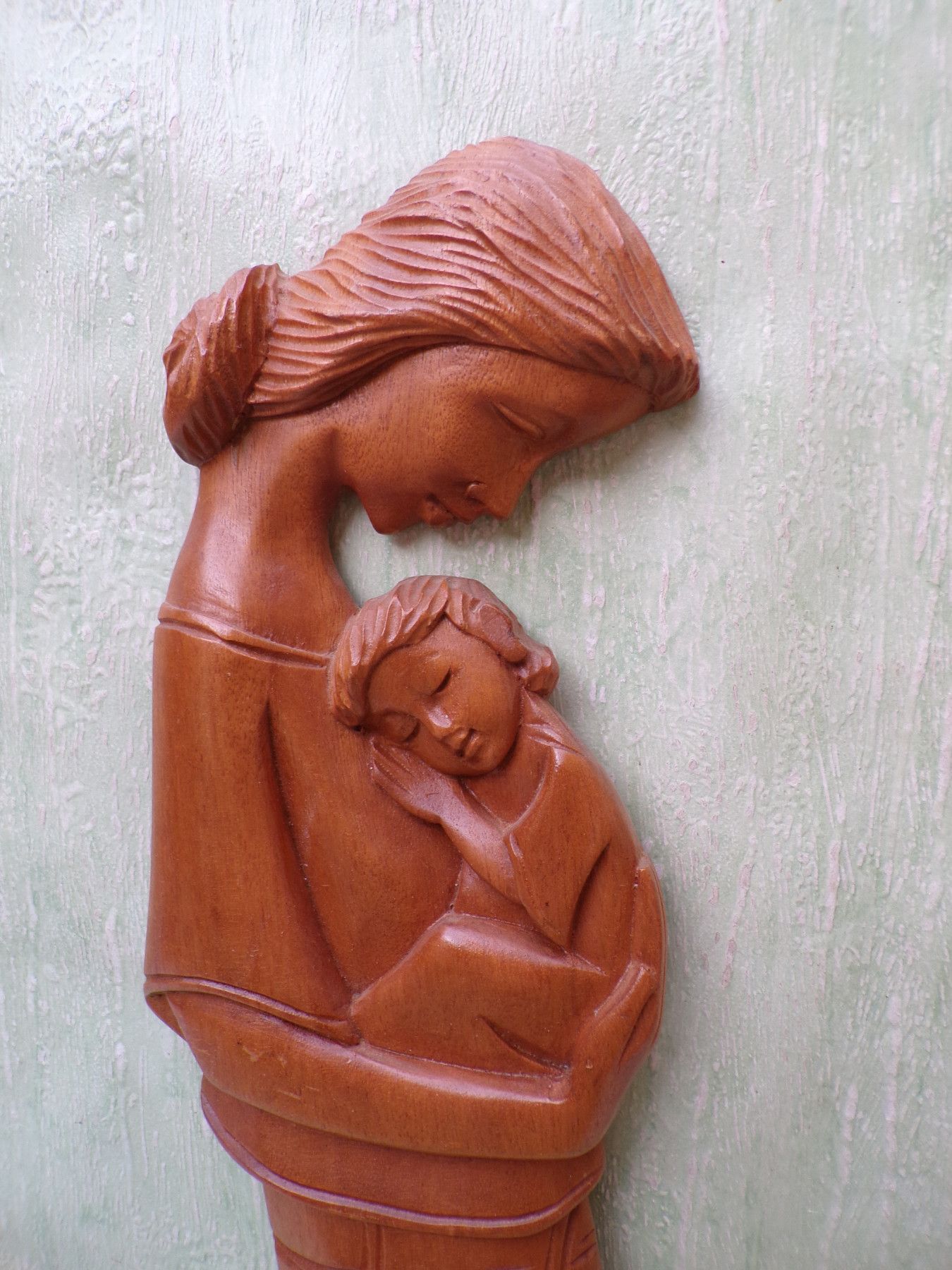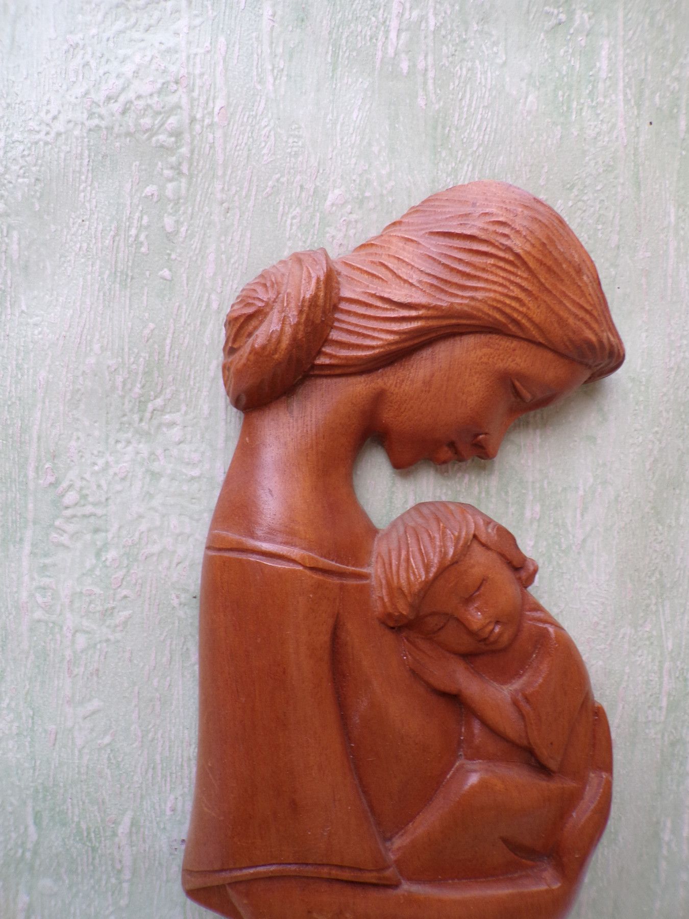 ALT Vintage Mutter und Kind Holzarbeit 51cm Wandbild Relief