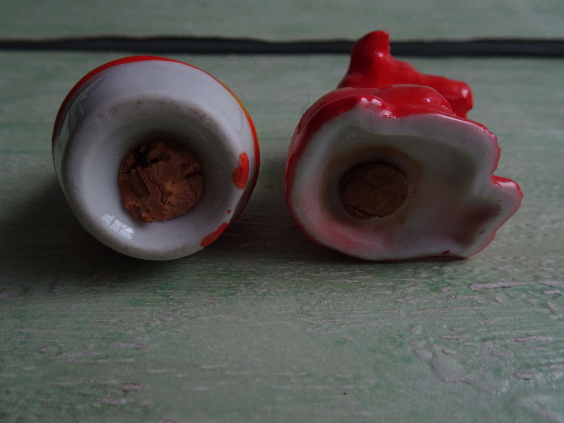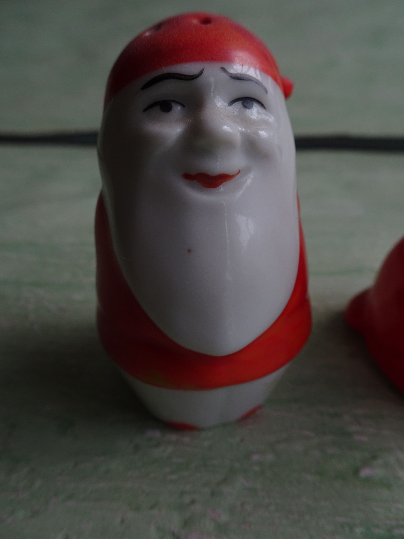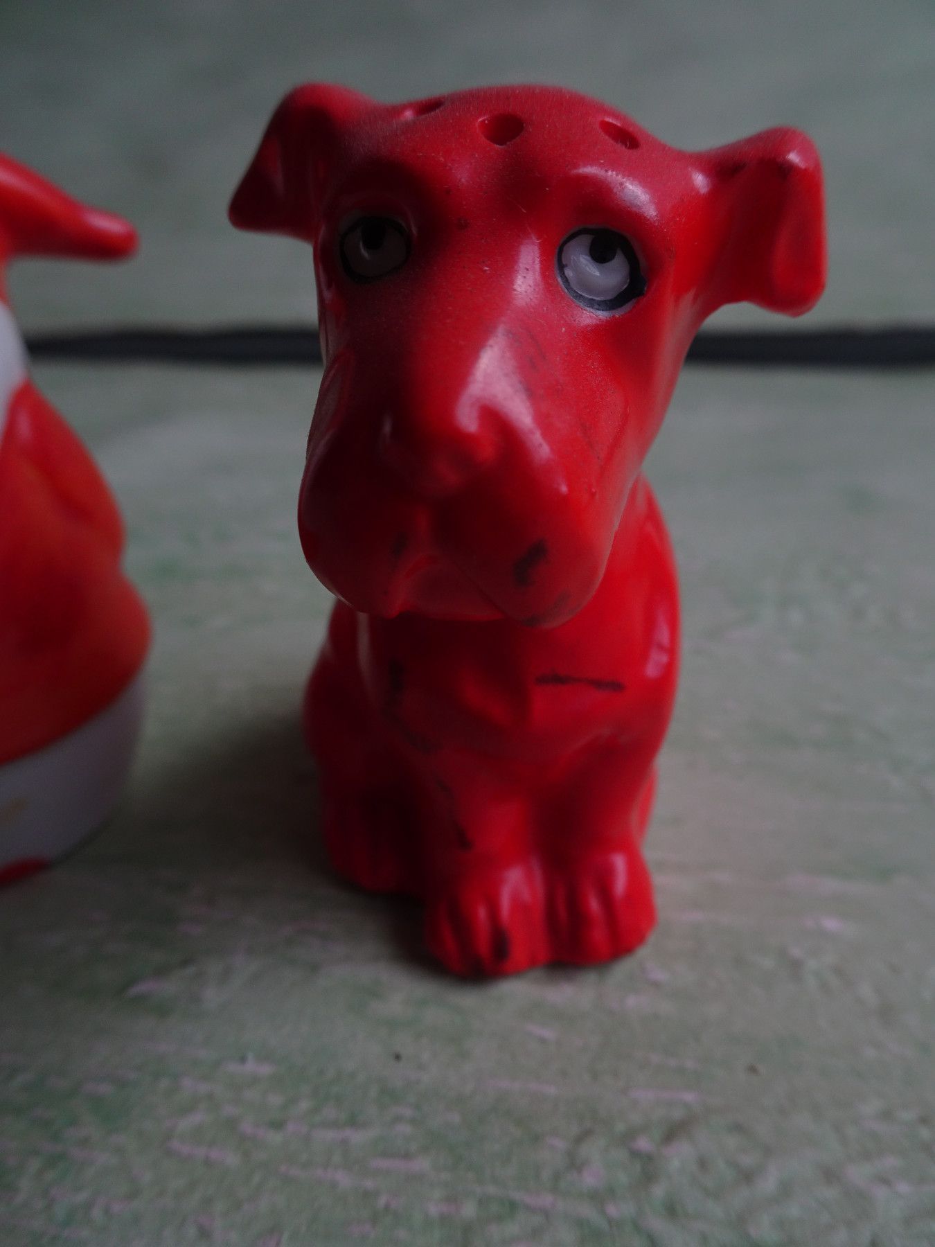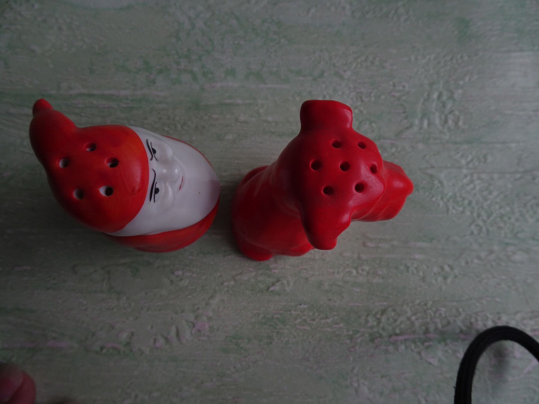 ALT : Weihnachtsmann & Hund Keramikporzellan Korkenverschluss Salz & Pfeffer Streuer