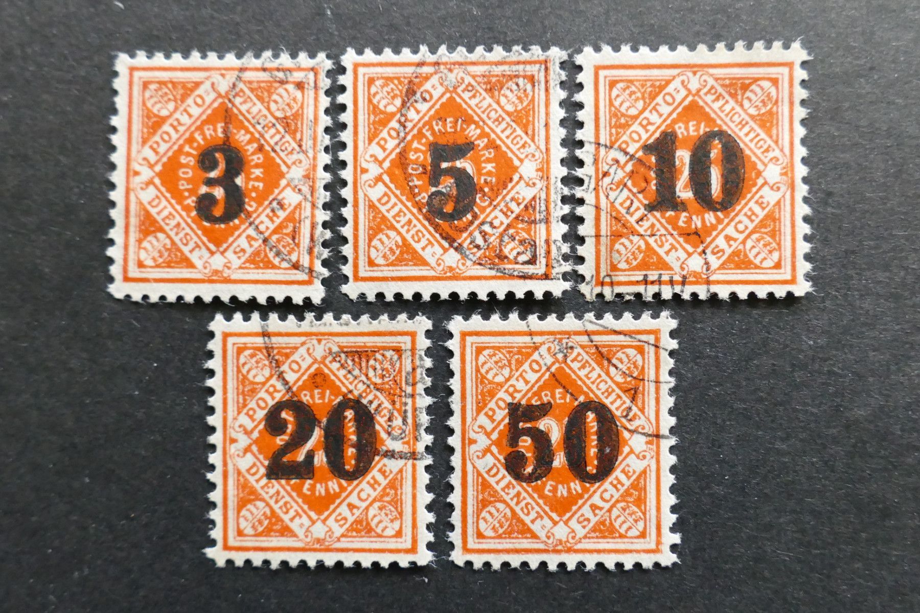 Altdeutschland Württemberg MiNr. 184-188 gestempelt