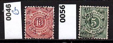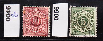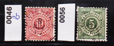 K372 - Altdeutschland Württemberg Mi. Nr. 46 b + 56 Weiße Ziffer im Kreis o