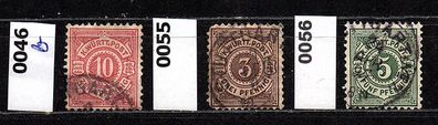 K376 - Altdeutschland Württemberg Mi. Nr. 46 b + 55 + 56 Weiße Ziffer im Kreis o
