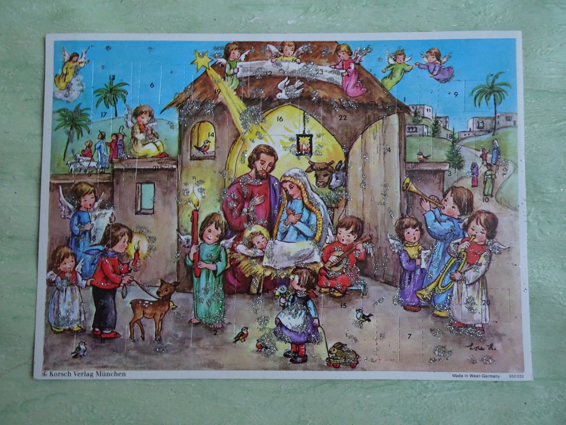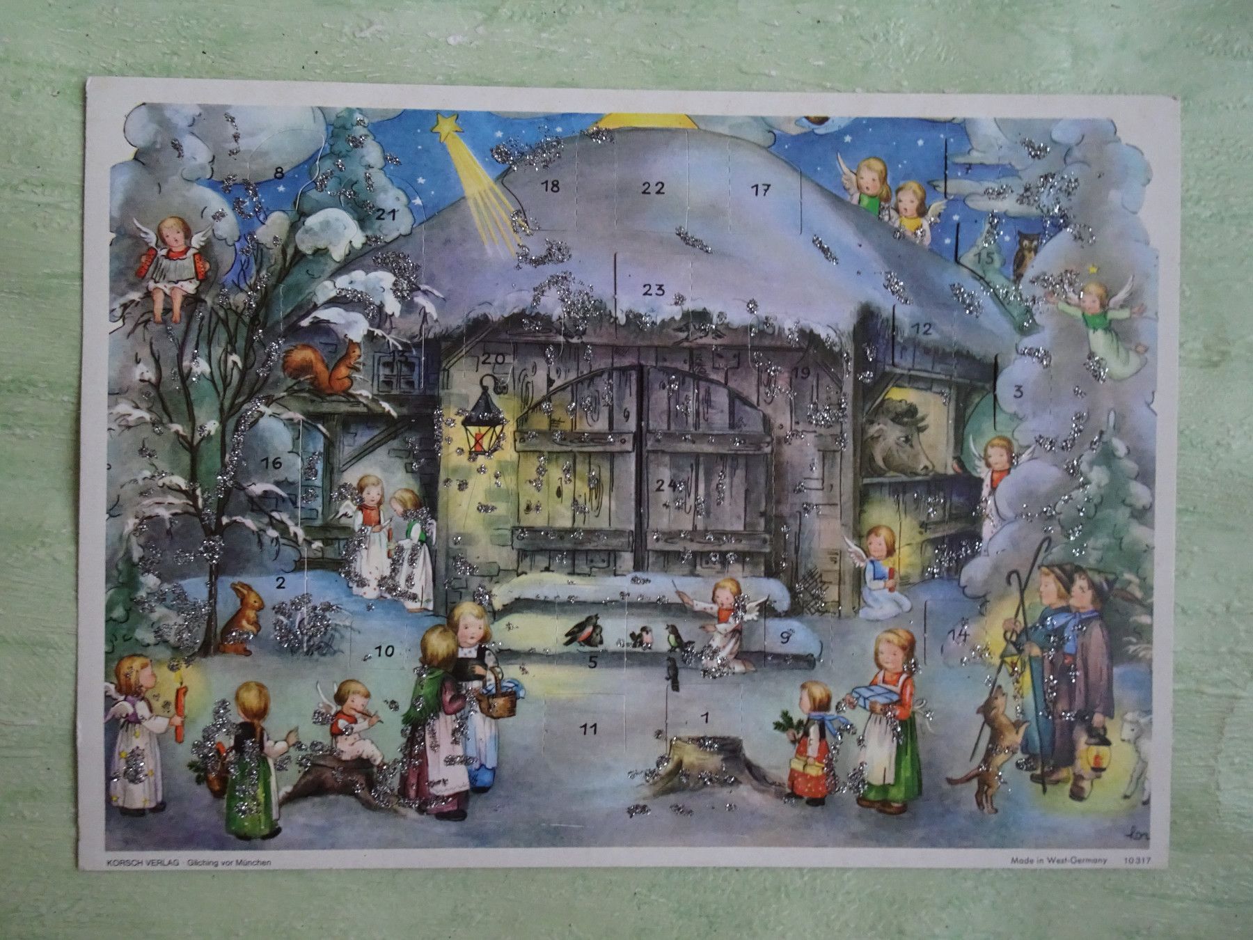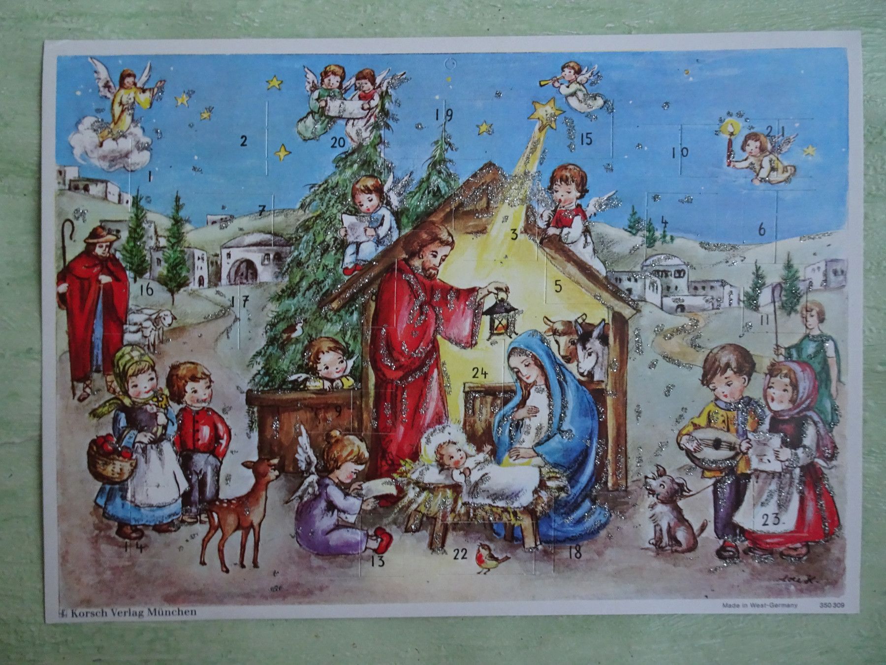 alte Adventskalender Korsch West-Germany München Lore Hummel Krippen Kontur & Din A4