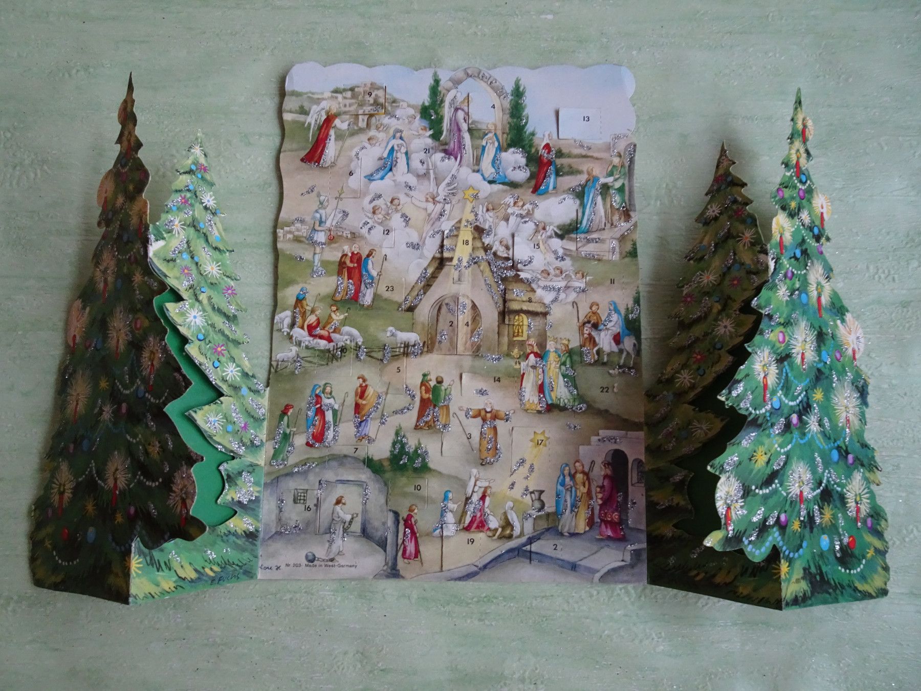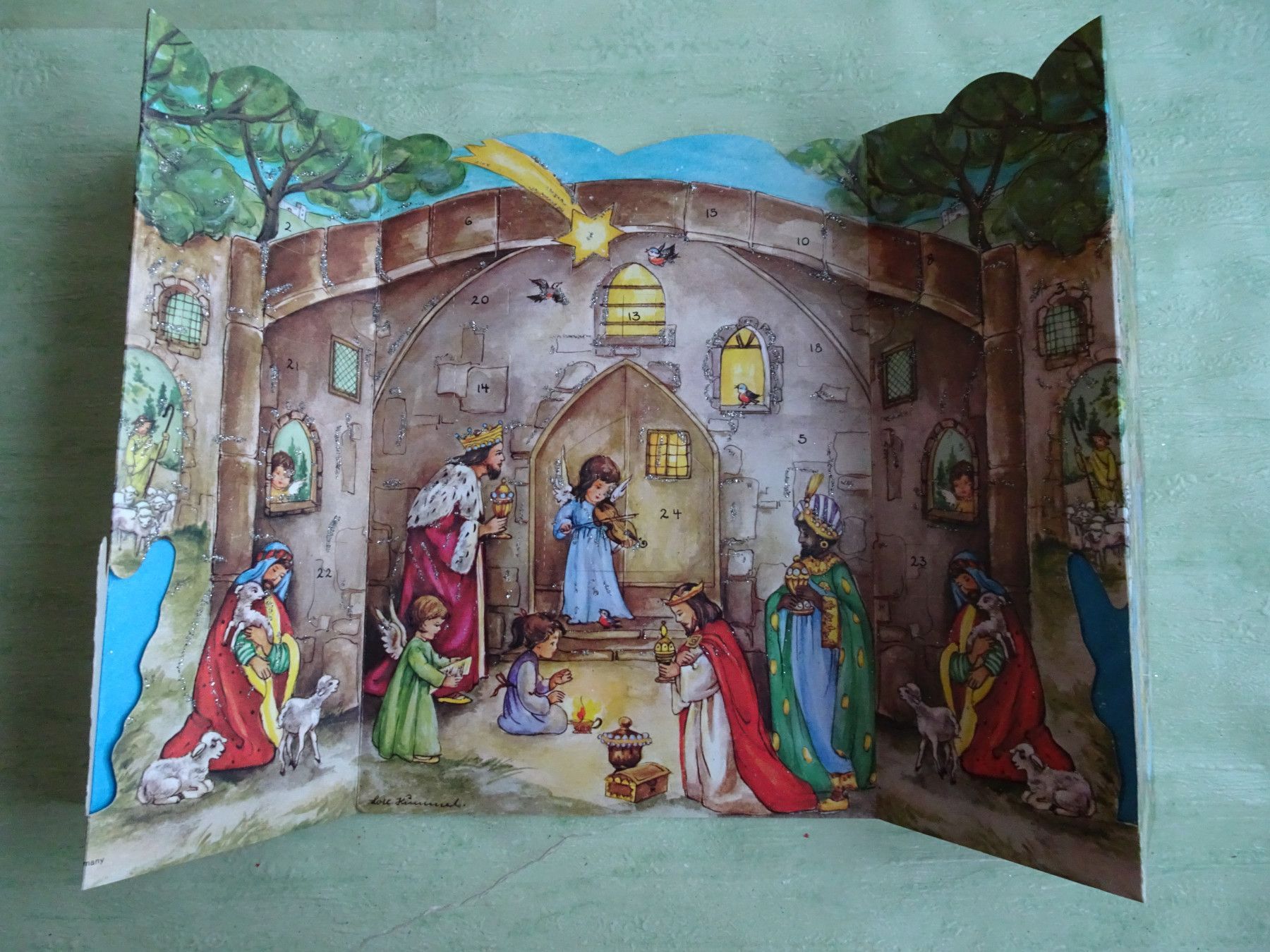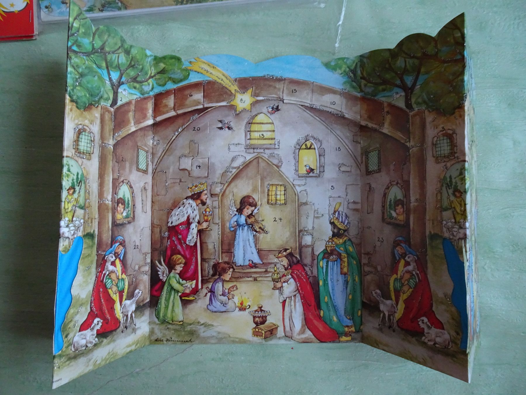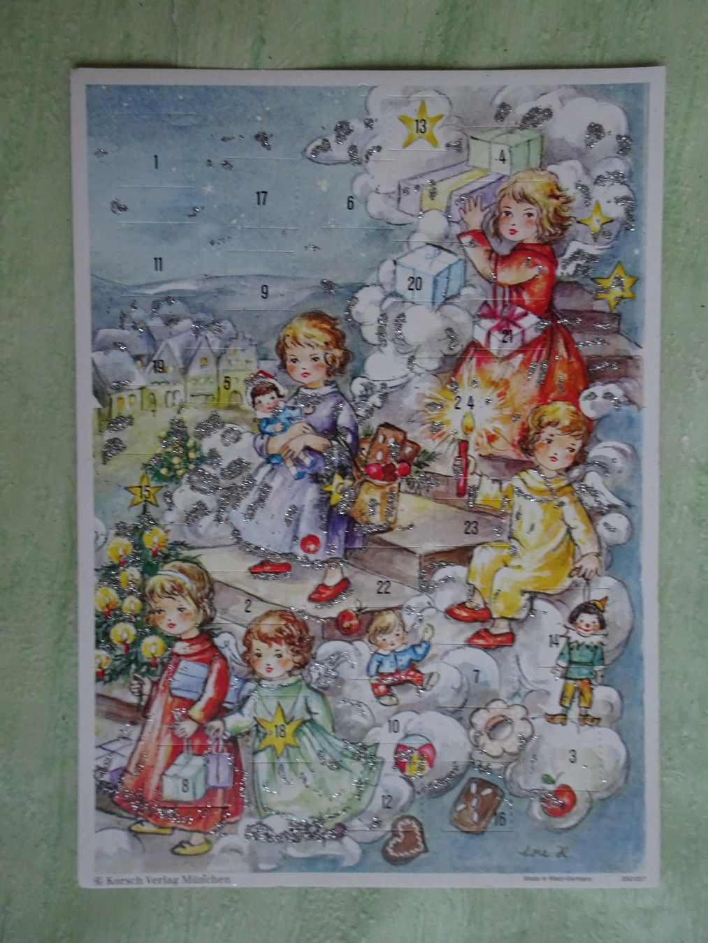 alte Adventskalender Korsch West-Germany München Lore Hummel Krippen Kontur & Din A4