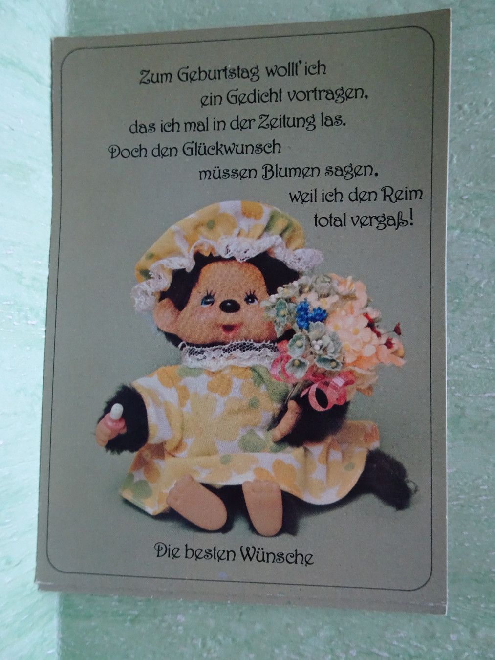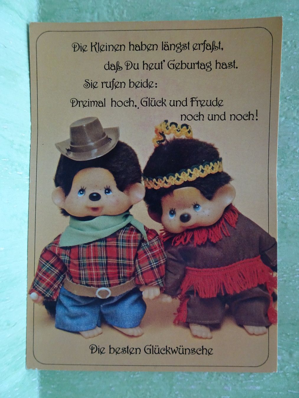 alte AK Postkarten Horn Verlag Kuscheläffchen Monchichi Zum Geburtstag C) Pensel