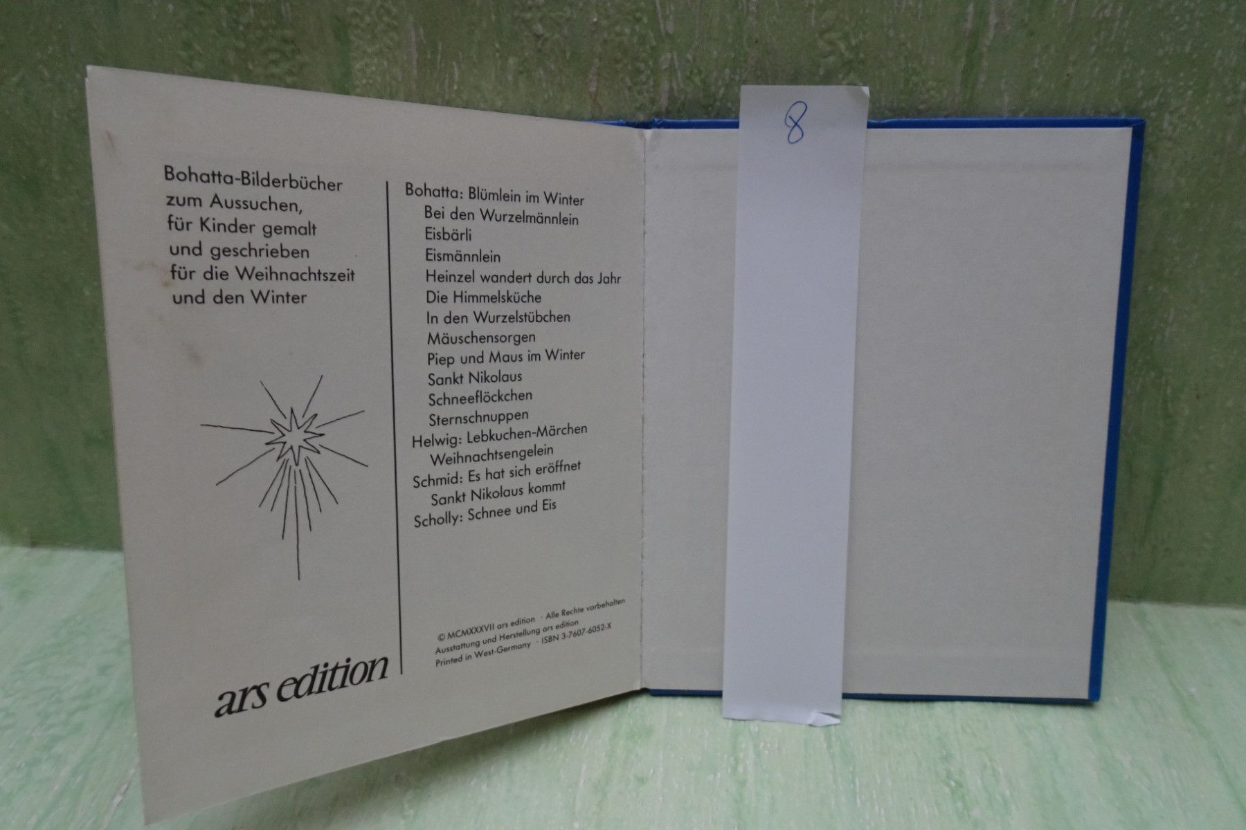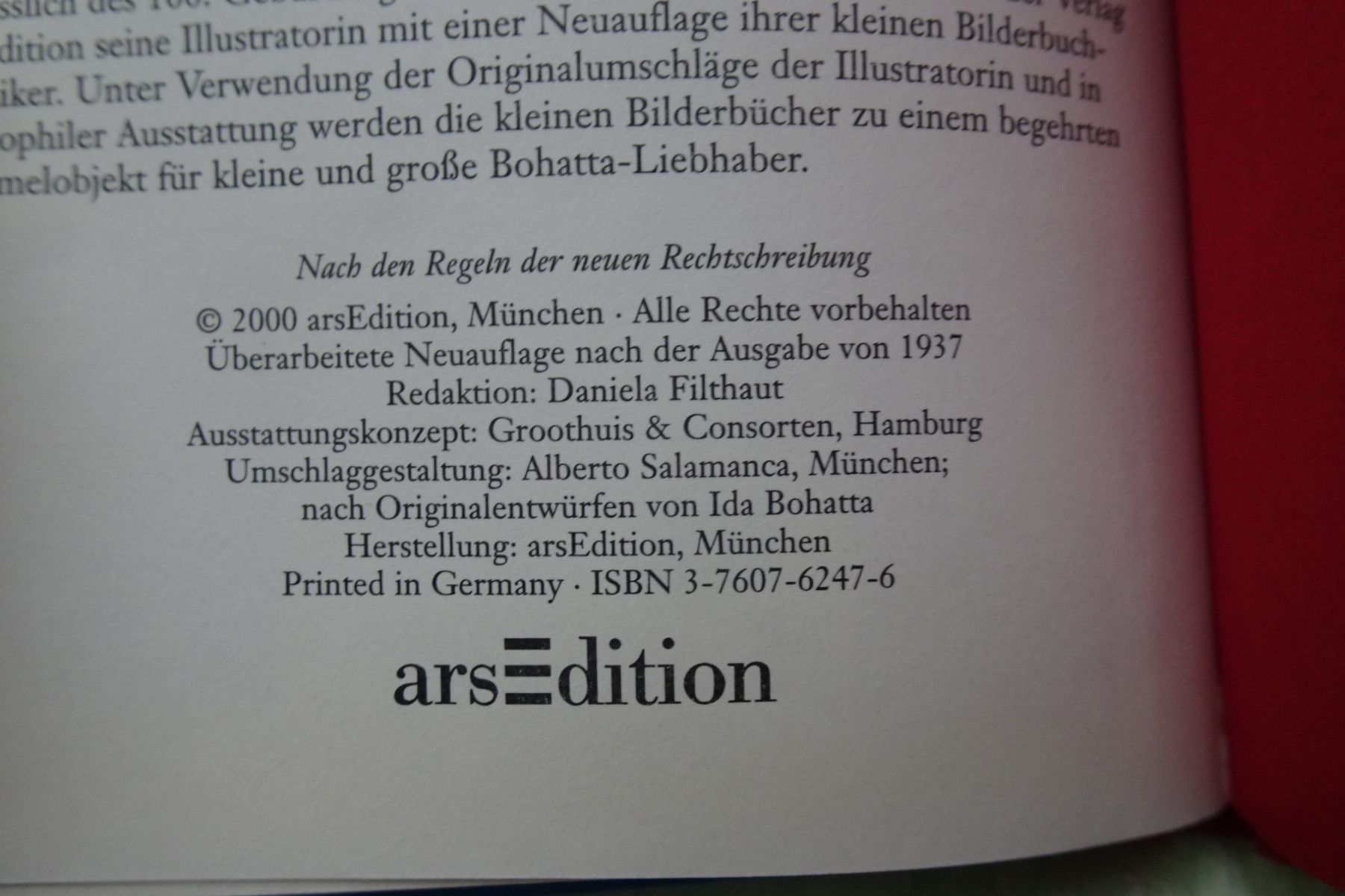 Bilderbücher - Kinderbücher ... Erinnerungen ..... ars edition Kleines mini Buch Bilderbücher zum Vorlesen und Selbstlesen Ida Bohatta 1 : Schneeflöckchen (C) 2000 arsEdition nach den Regeln der neuen Rechtschreibung Fadenbindung sehr gut 2 : Die Himmelsküche (C) MCMXXXIII 1933 ars edition, West Ger... Mehr