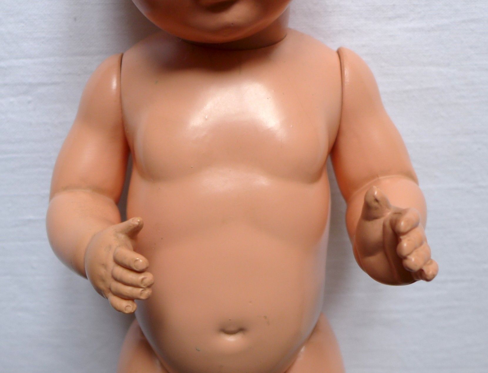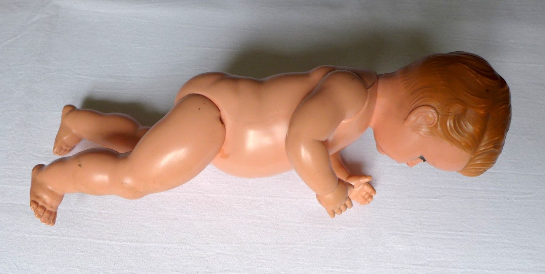 gebrauchter Zustand mit Gebrauchs - und Lagerspuren siehe Fotos , bespielt , keine fehlenden Finger oder Zehen , keine Risse , blaue feststehende Augen , Schulternaht etwas gelöst , Lichtspiegelungen , Schattenbildung , Farbabweichungen können beim fotografieren auftreten , Sp 142 Achtung ! Nicht fü