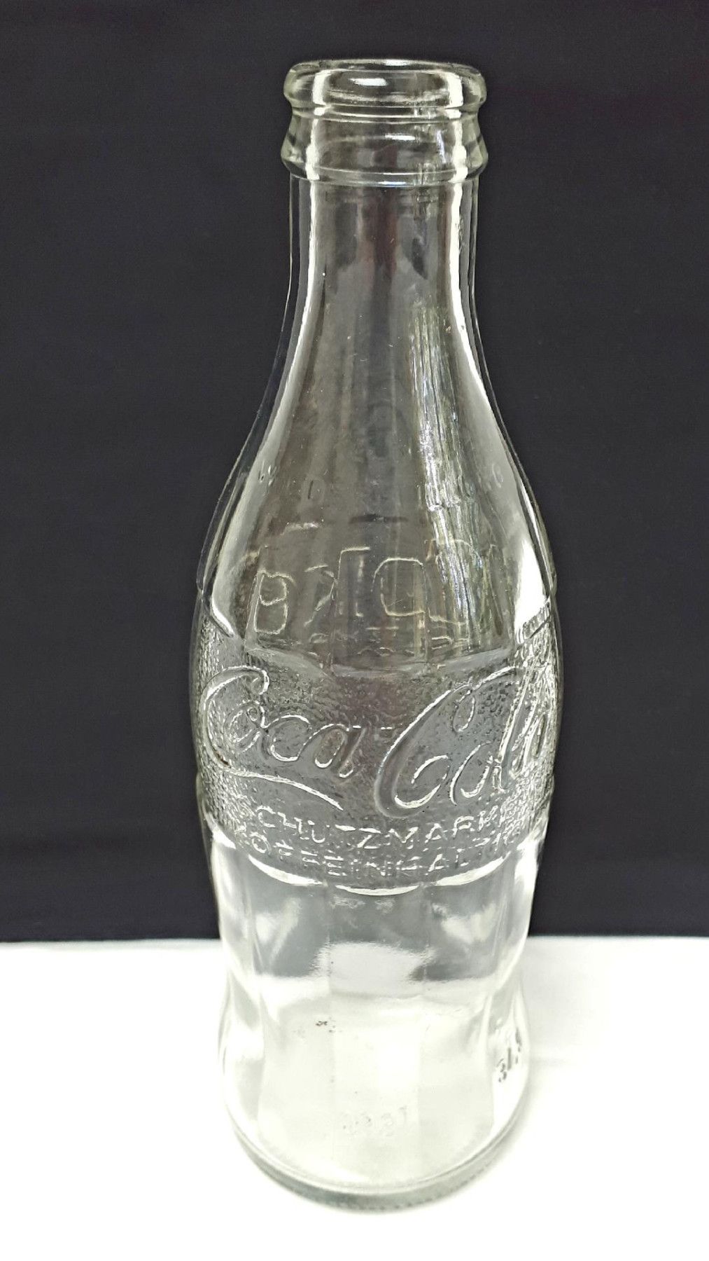 Alte Coca Cola Flasche Coke Schutzmarke - Limonade Kein Pfand - Keine Rückgabe - Keine Wiederbefüllung * 0,33 Liter * Höhe: ca. 20 cm * Durchmesser Boden: ca. 6,5 cm * Gewicht: ca. 260 g Zustand: gut - gebraucht mit kleinen Gebrauchsspuren (kleinere Verschmutzungen kommen vor) Abbildung ist beispielhaft, Abweichungen kommen vor!