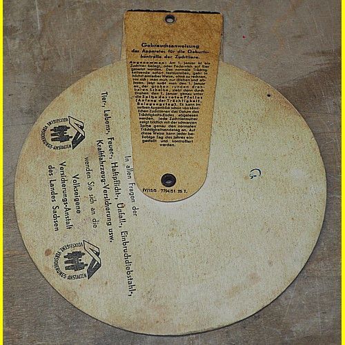 Durchmesser der reinen Scheibe: ca. 16 cm Sie stellen die Zulassung Besamung ihres Zuchttieres auf der Scheibe ein und diese sagt ihnen ca. das Ende der Trächtigkeit bzw. den Zeitpunkt des Wurfes. Die Scheibe stammt aus der Familie und wurde hier auf dem Bauernhof eingesetzt. Dürfte von ca. 1951 sta