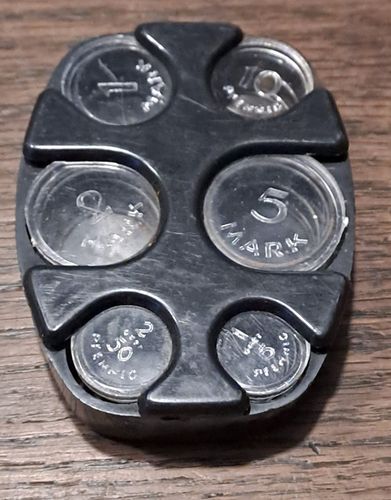 Alte DM Groschenbox Münzhalter Münzenbox Deutsche Mark Vintage