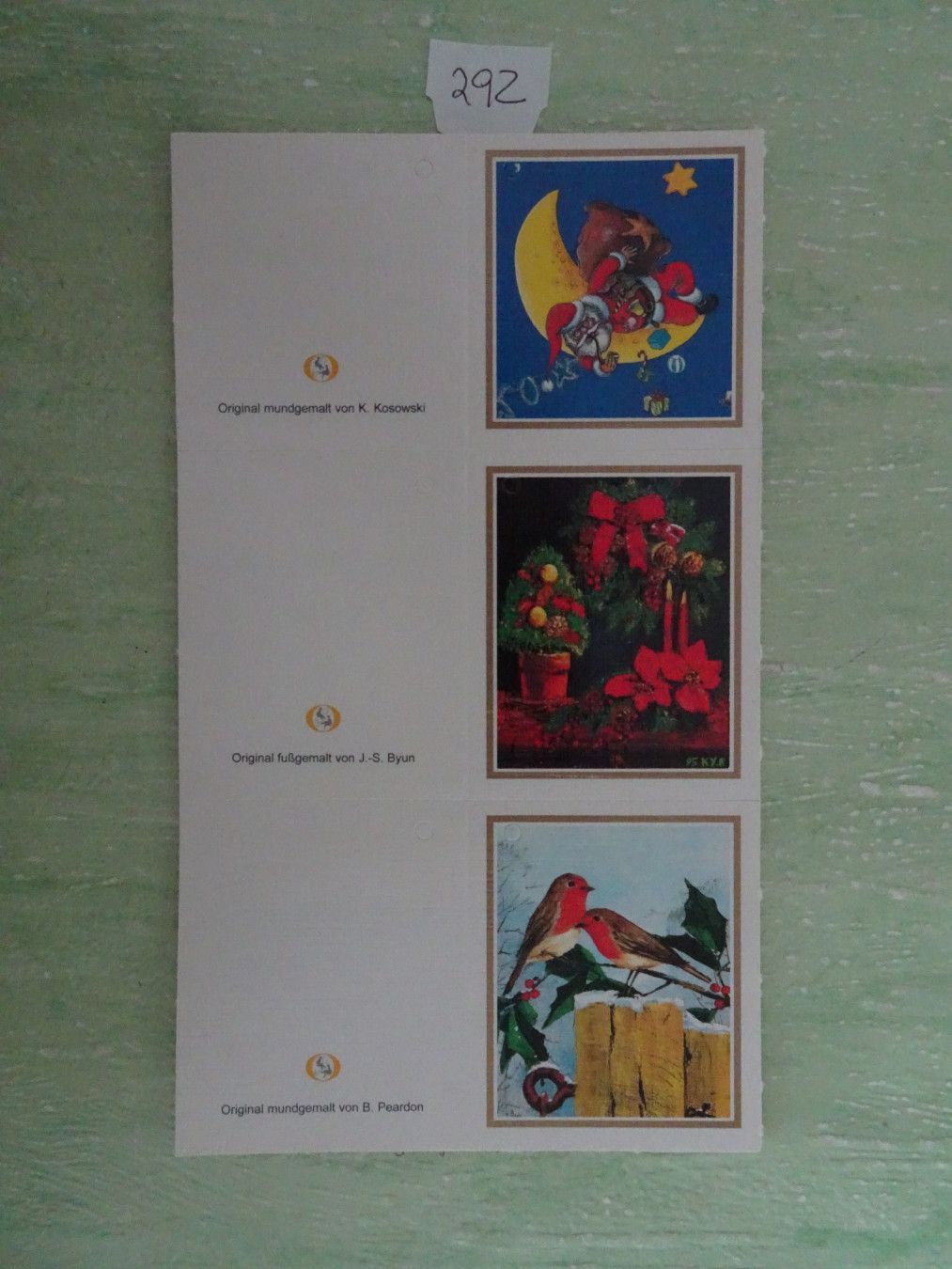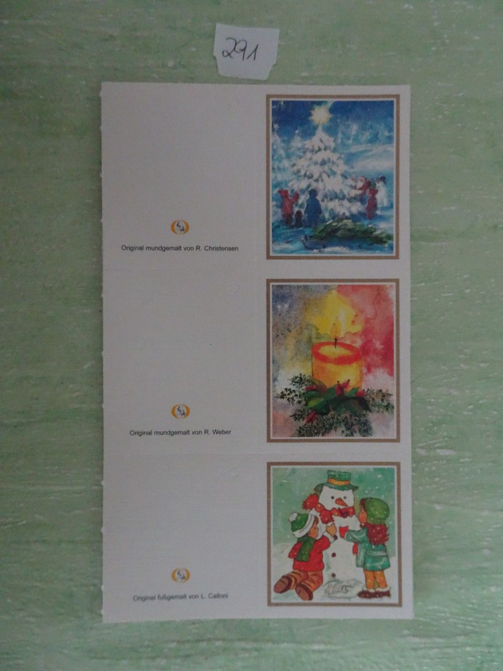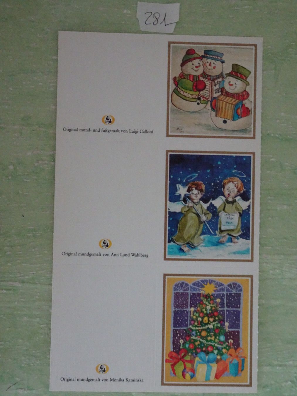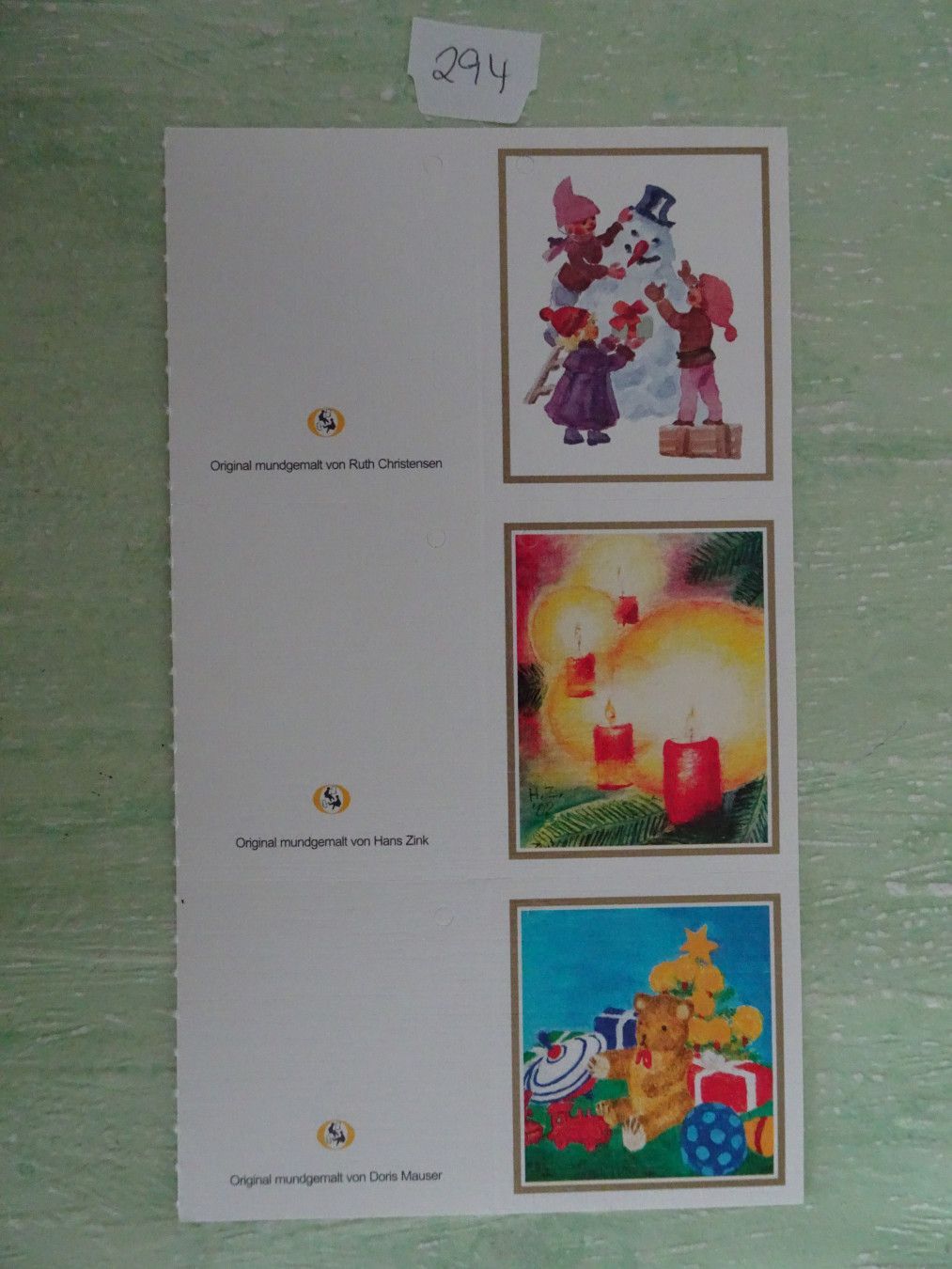 alte Geschenkanhänger Mund- Fußgemalt Ruth Christensen Thomas Kahlau uva