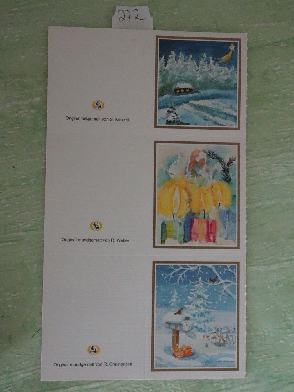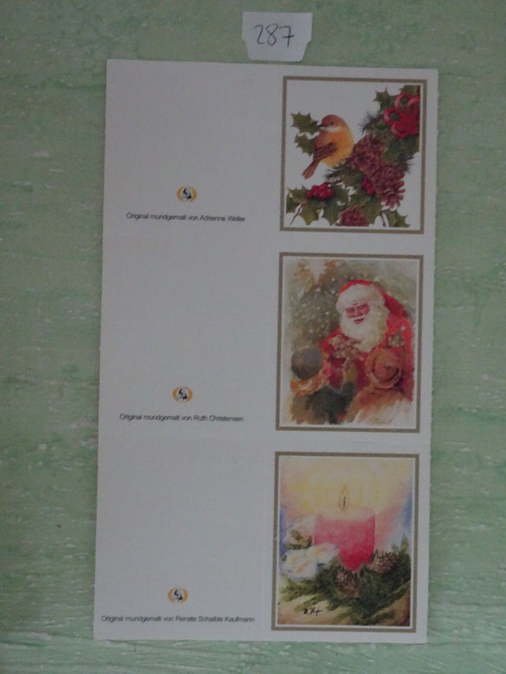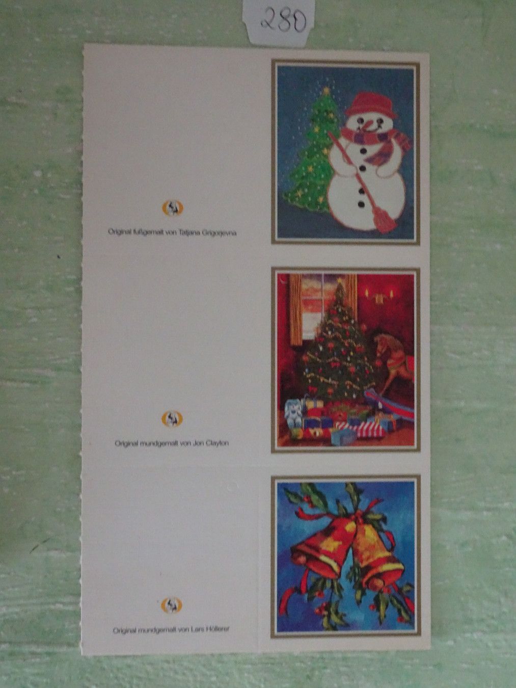 alte Geschenkanhänger Mund- Fußgemalt Ruth Christensen Thomas Kahlau uva