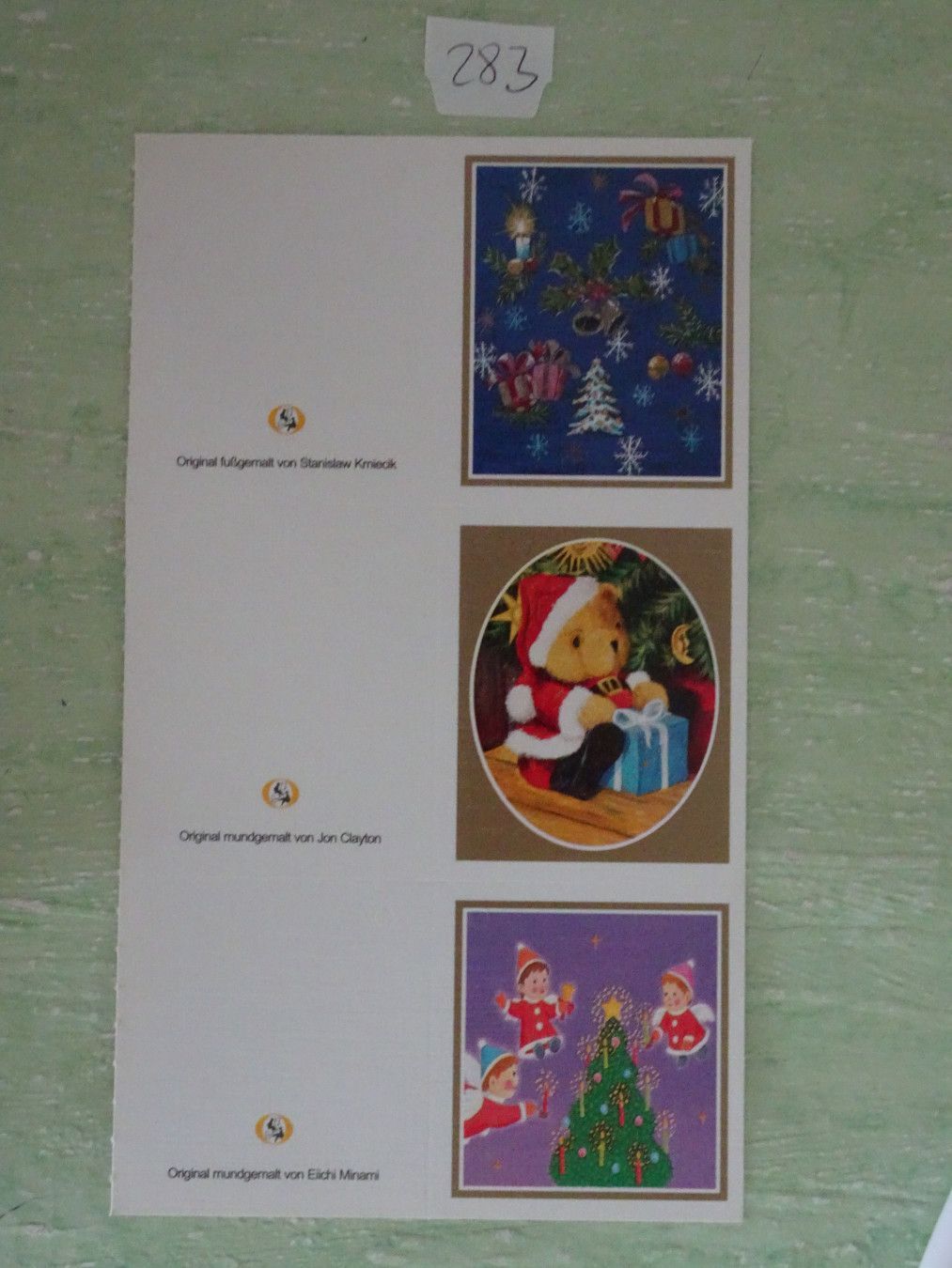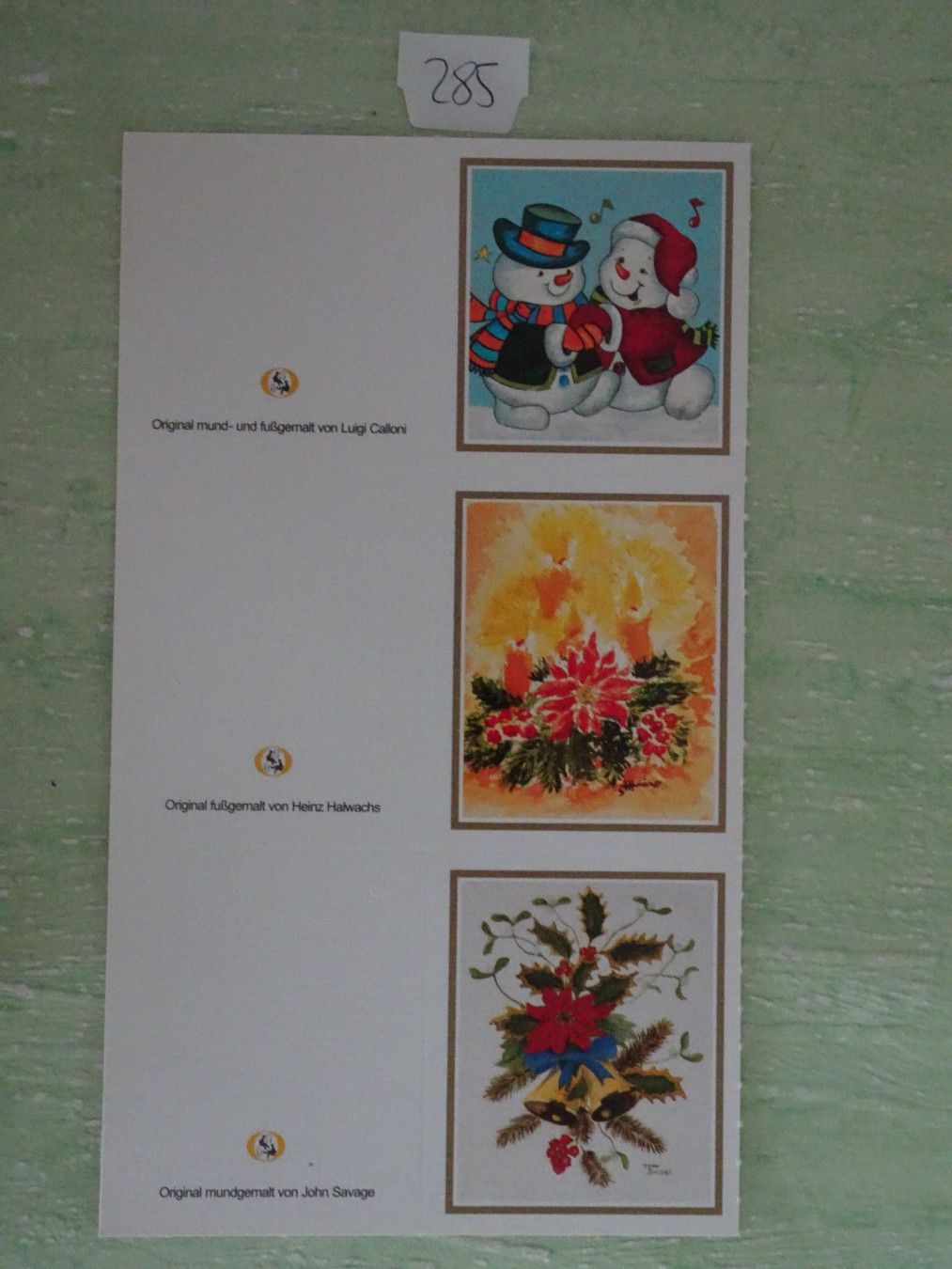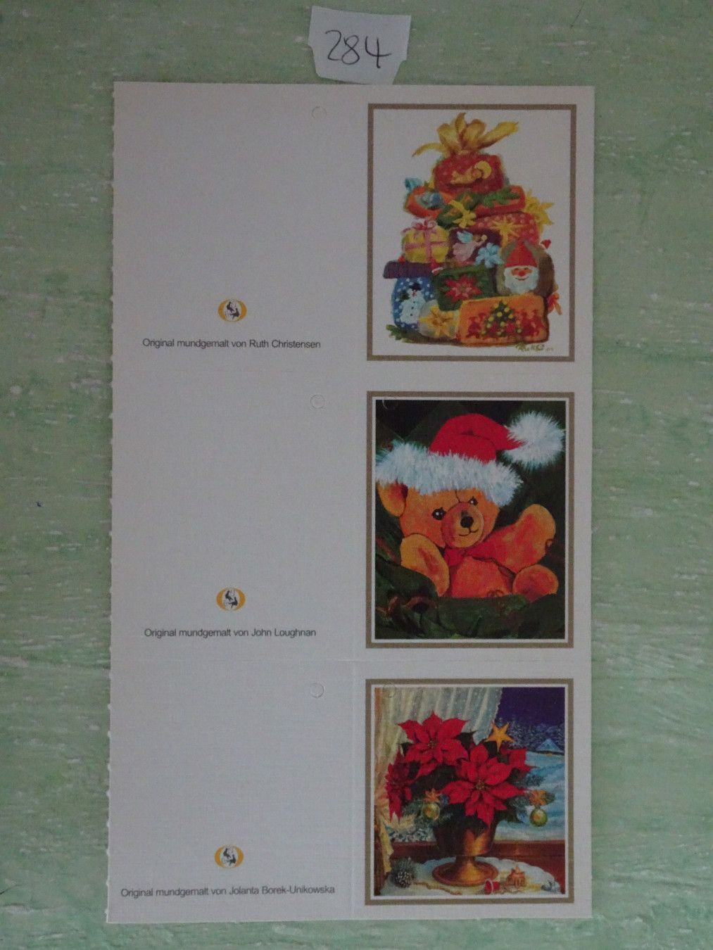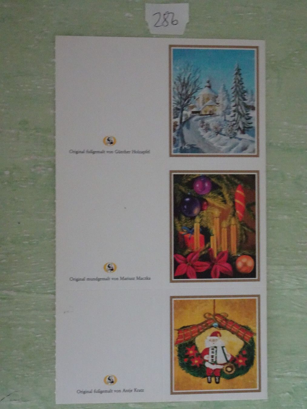alte Geschenkanhänger Mund- Fußgemalt Ruth Christensen Thomas Kahlau uva