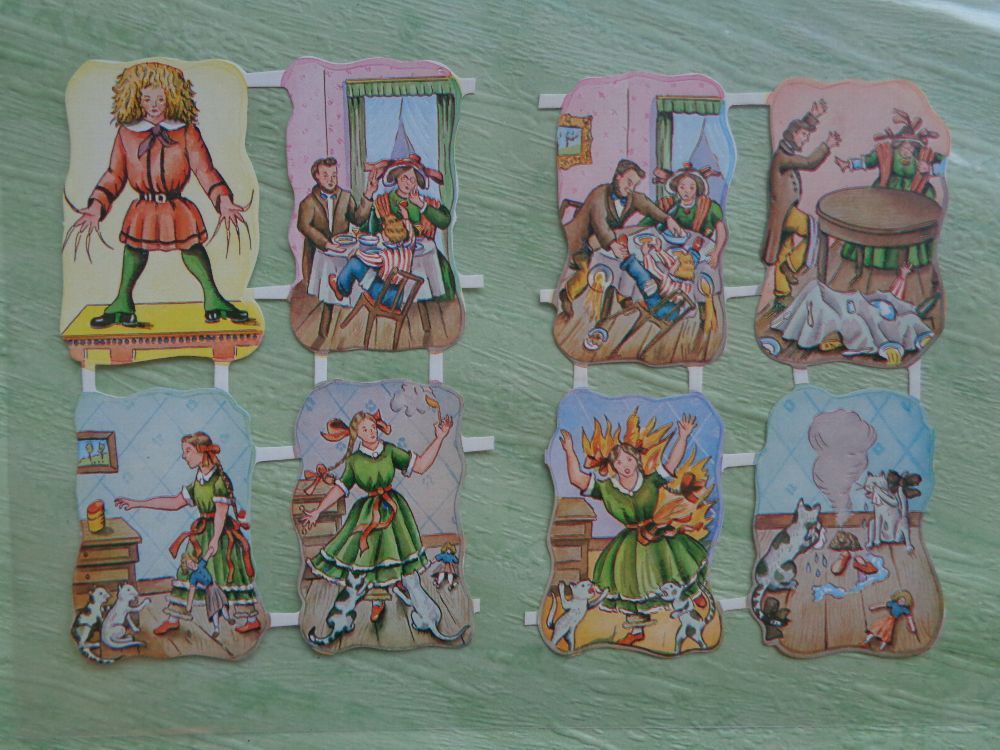 alte Glanzbilderbogen Scraps Struwwelpeter WK WS ??? Wilhelm Busch geteilter Bogen