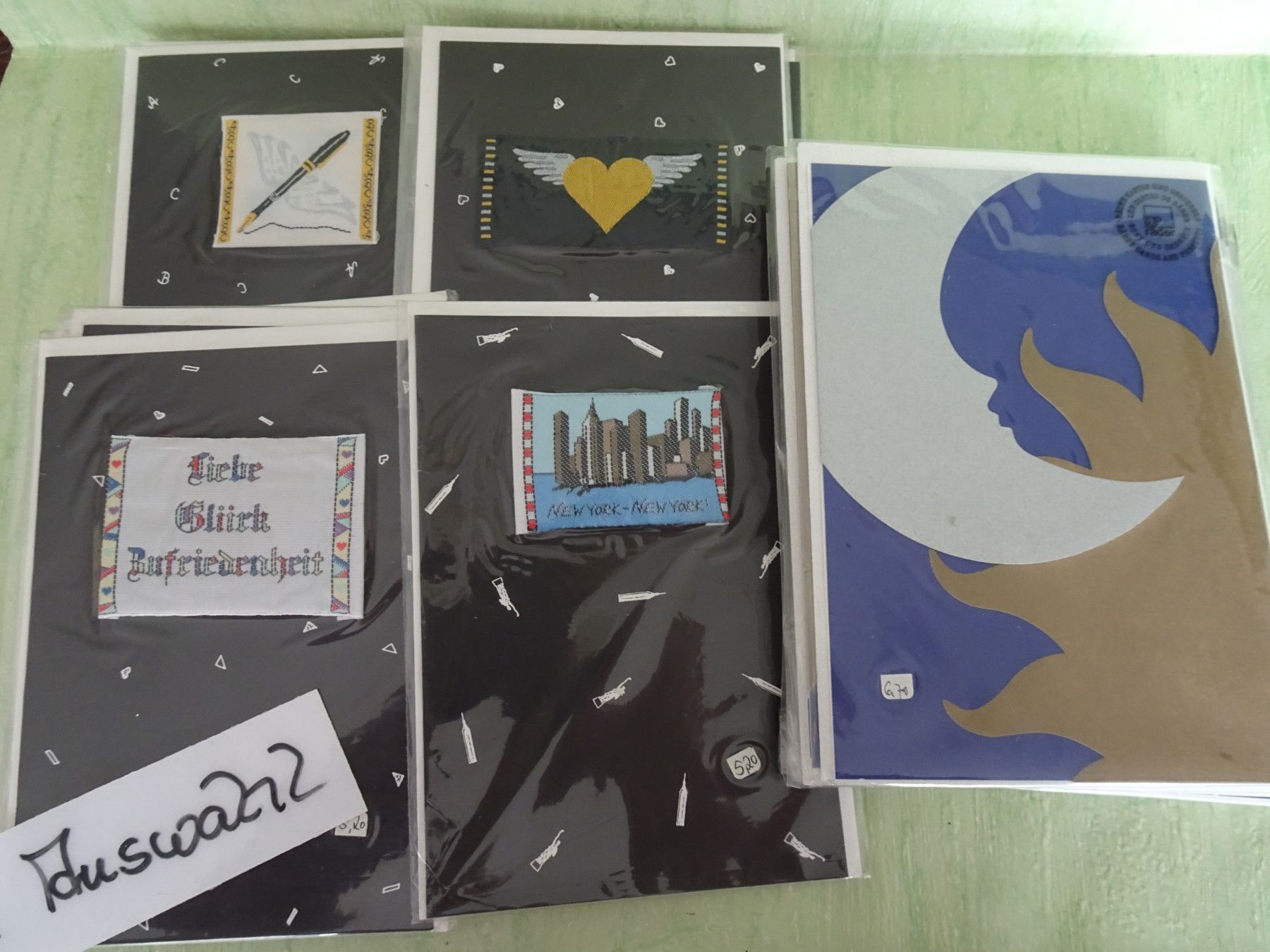 alte Grußkarten räder neutral Stoff Füller ABC Herz Sonne Mond New York Glück
