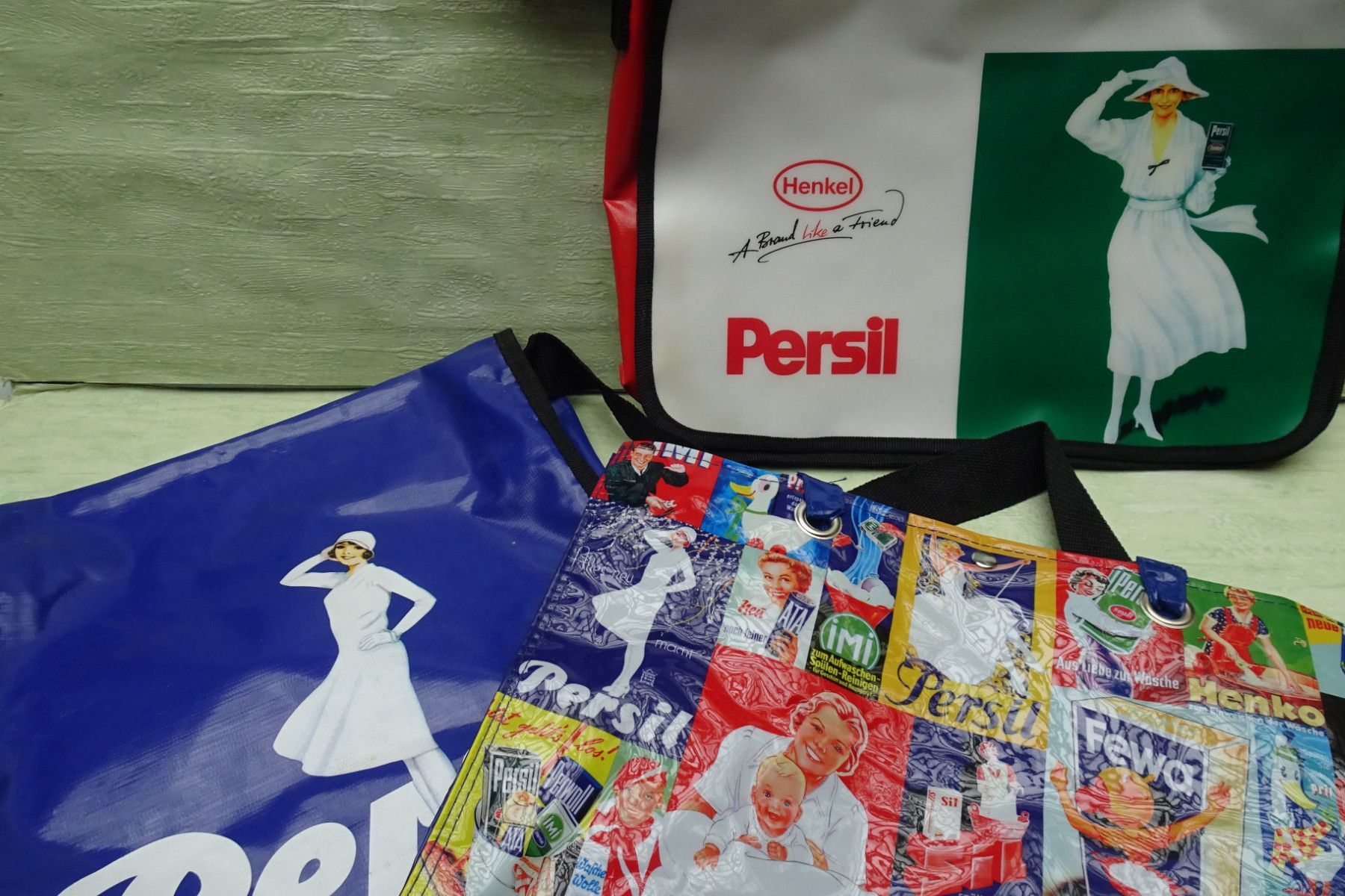 Sammeln & Seltenes ... aus Freude an schönen Dingen ..... alte Sammlerstücke *) Persil weiße Dame grün : 2 Fächer innen, Außenreißverschluß, ca 33x36x12,5cm !!! ... bitte Fotos anschauen ... !!! Bestandteil der Beschreibung Bitte berücksichtigen Sie , daß die Farben Foto Original abweichen könne... Mehr
