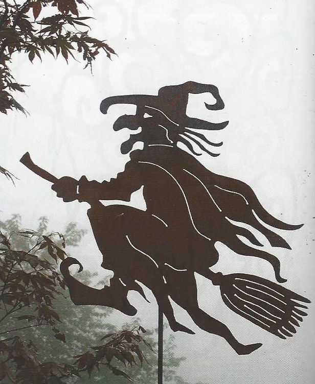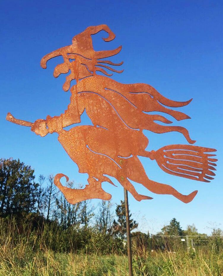 Alte Hexe fliegend Hexen 46x50 cm Rost Edelrost Metall Figur Gartenstecker