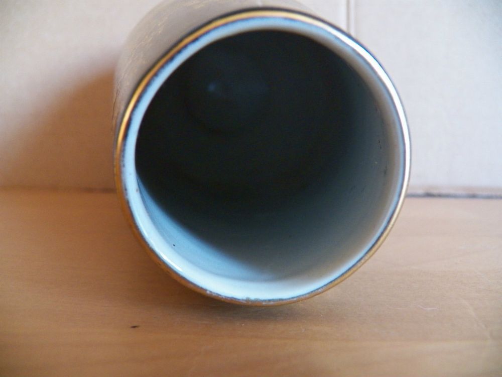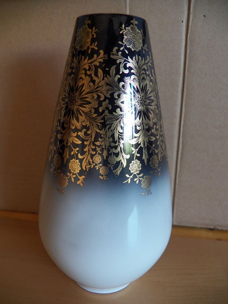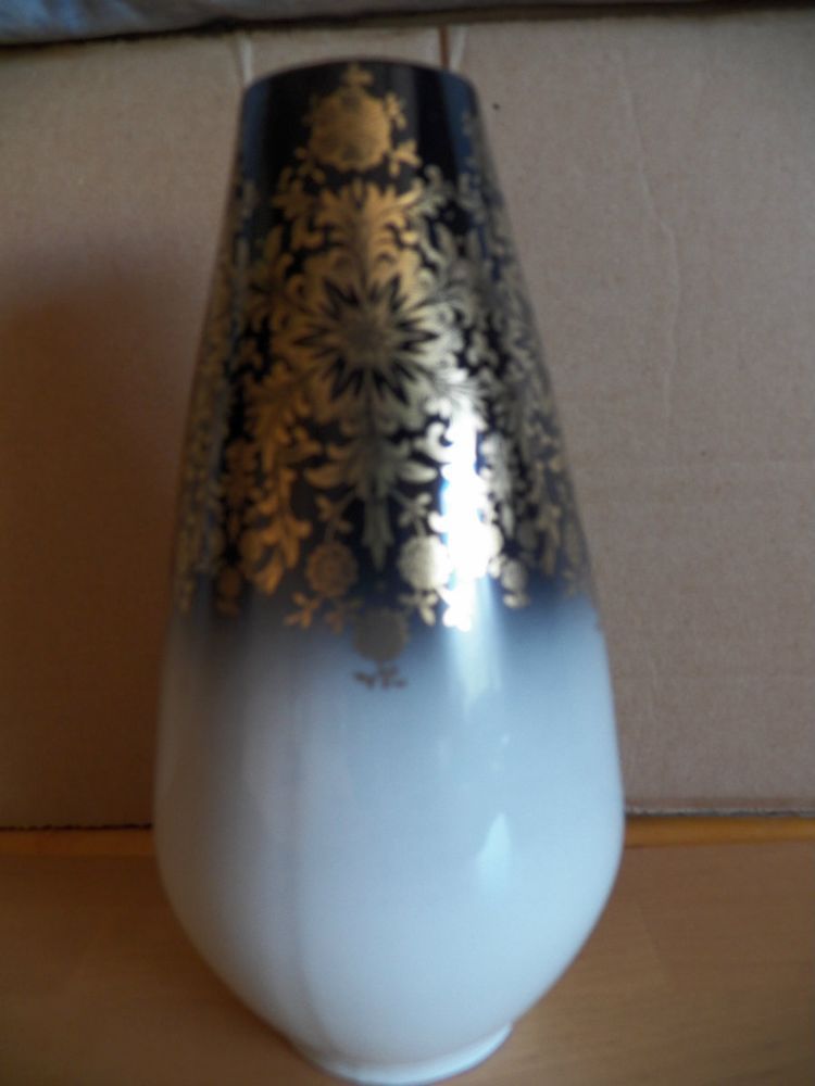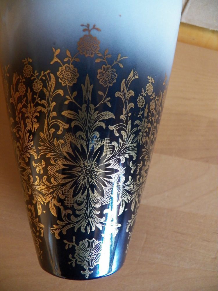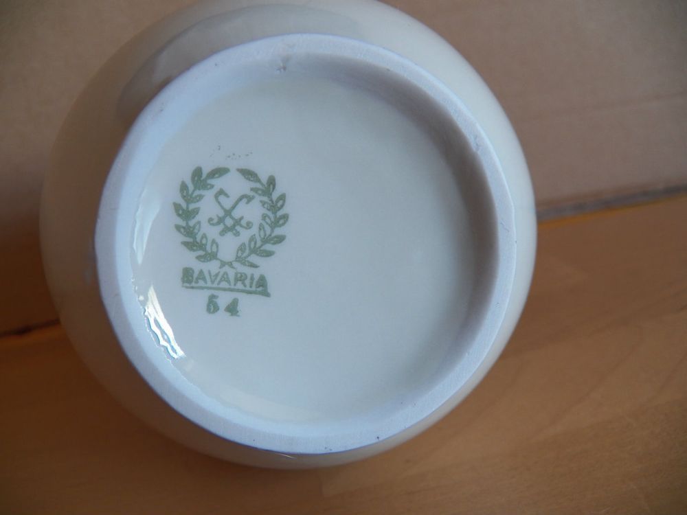 Gold-schwarz-elfenbein - Auf der Unterseite ist der Stempel und eine 54 zu erkennen Maße ca. 21,5 cm hoch und hat einen Durchmesser von ca. 12 cm immer die breiteste Stelle gemessen der Durchmesser ist am Boden ca. 6 cm oben an der Öffnung 4 cm habe versucht alle Mängel mit Abzubilden