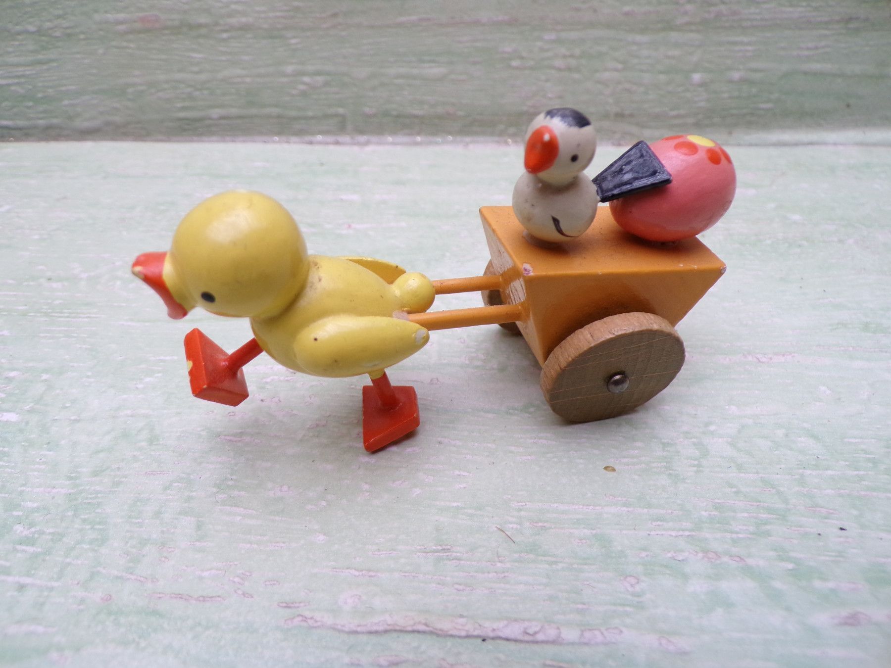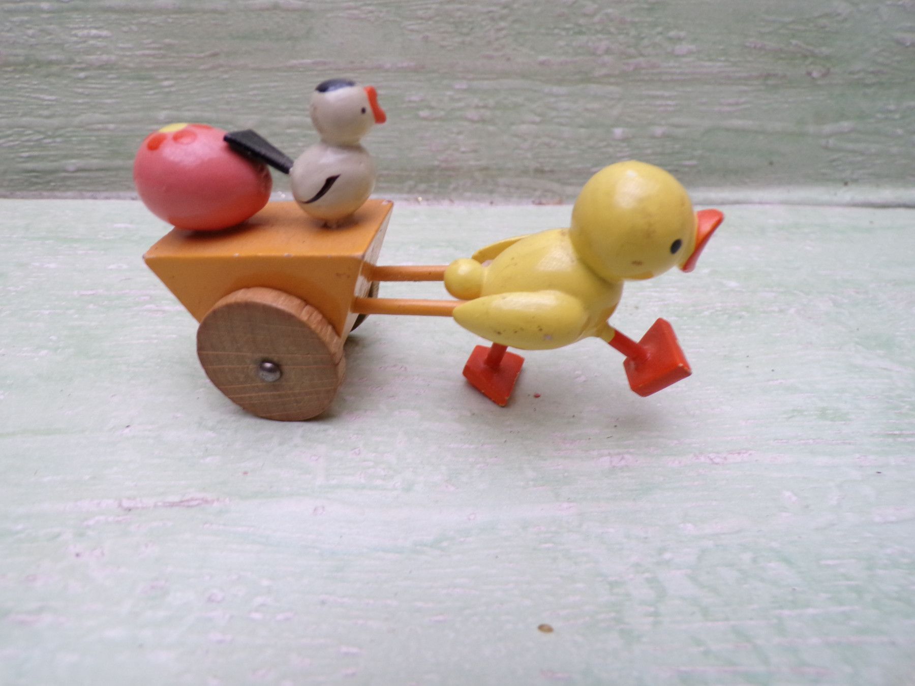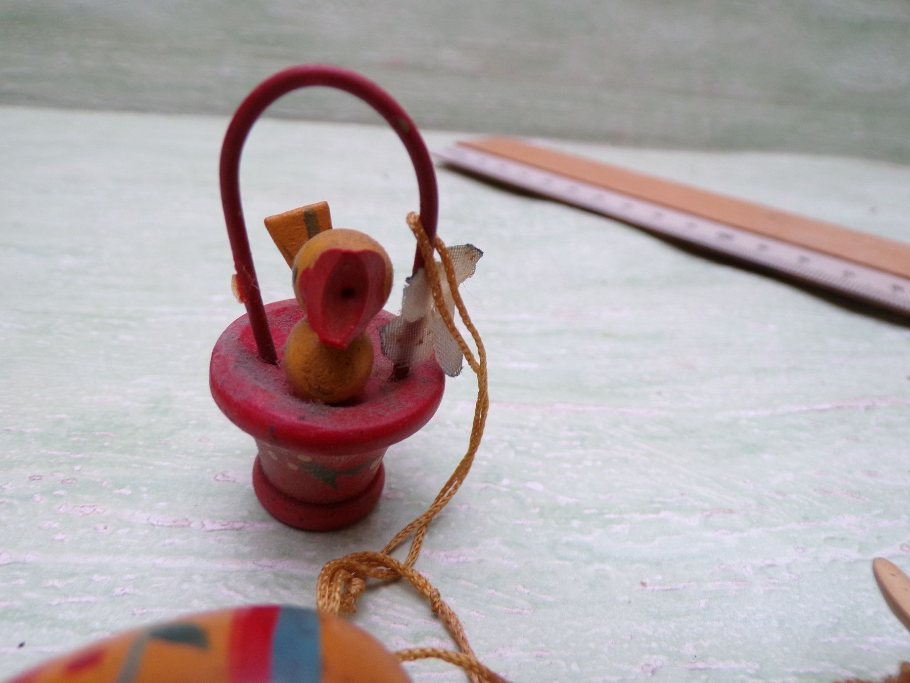 alte Holz Deko Miniatur Ostern Kerzenständer Pilz Küken Anhänger Osterhäsin Entenkorb
