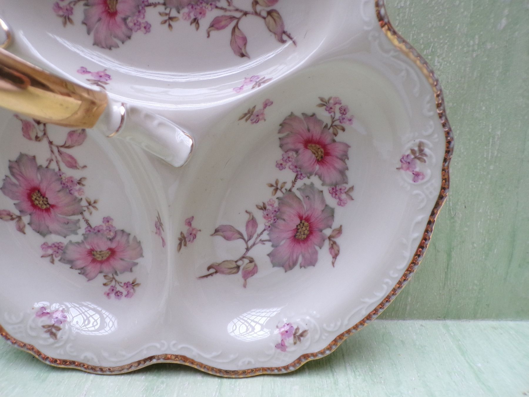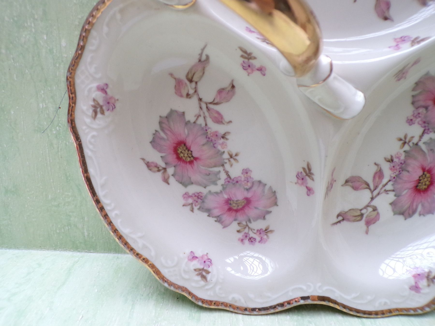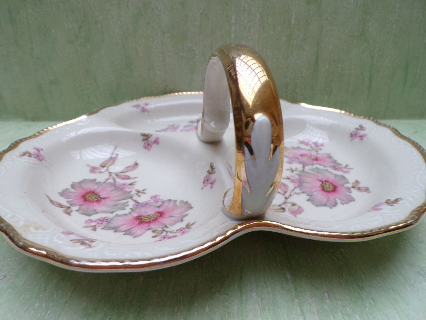 alte Kabarett-Schale mit Griff Zeh & Scherzer Bavaria Germany Goldrand Blütendekor