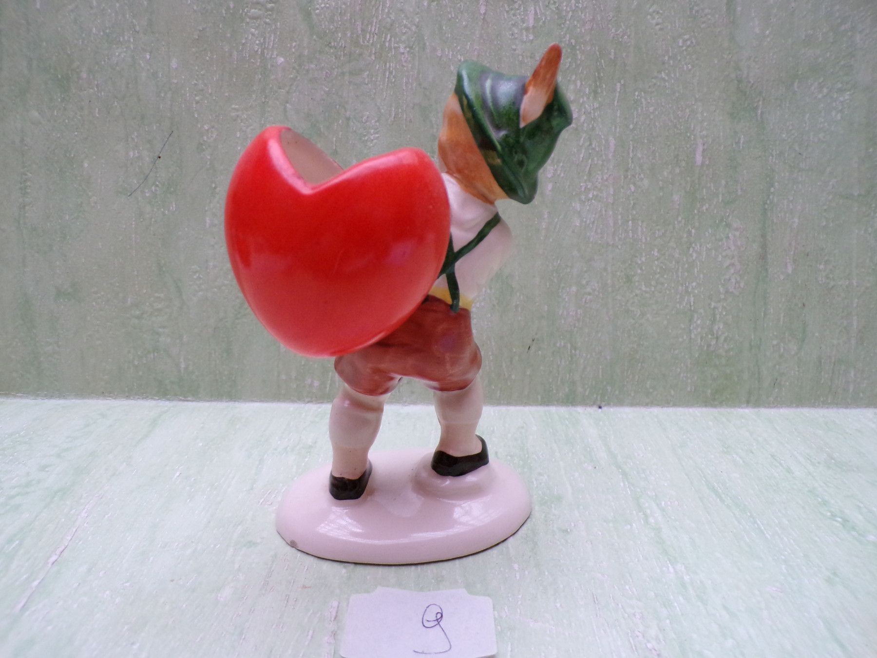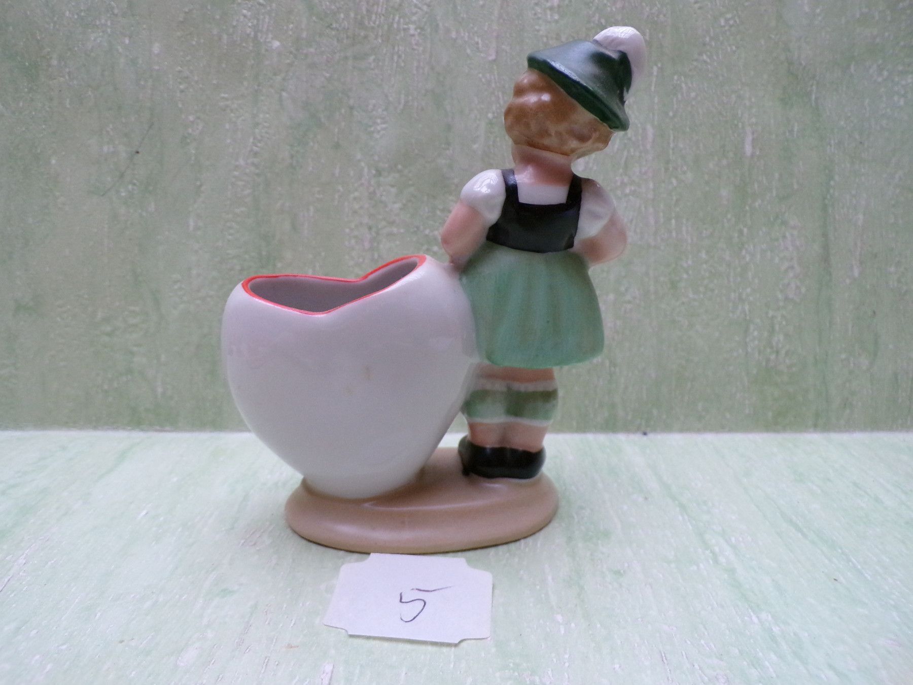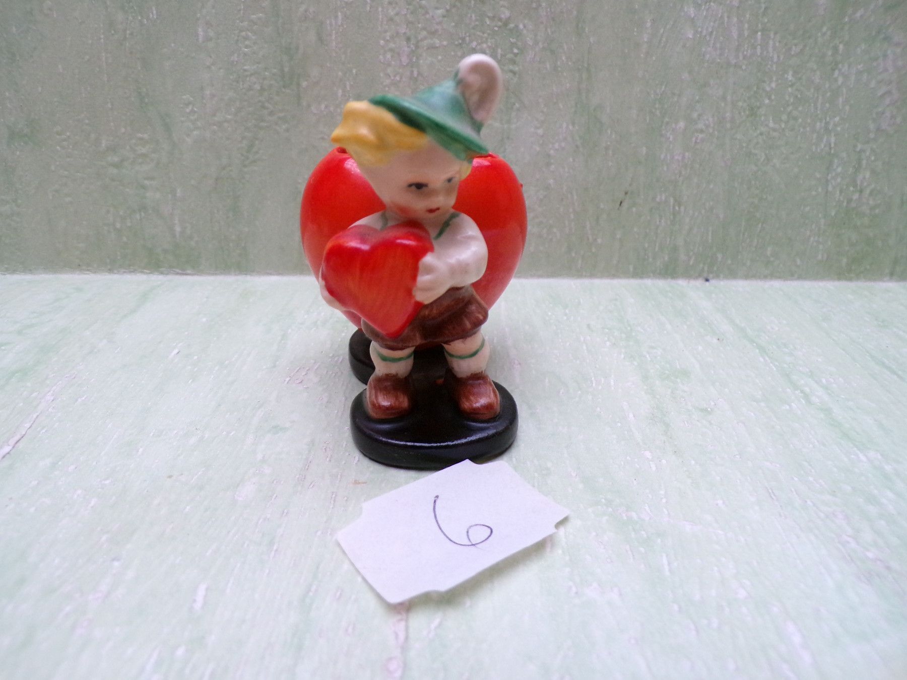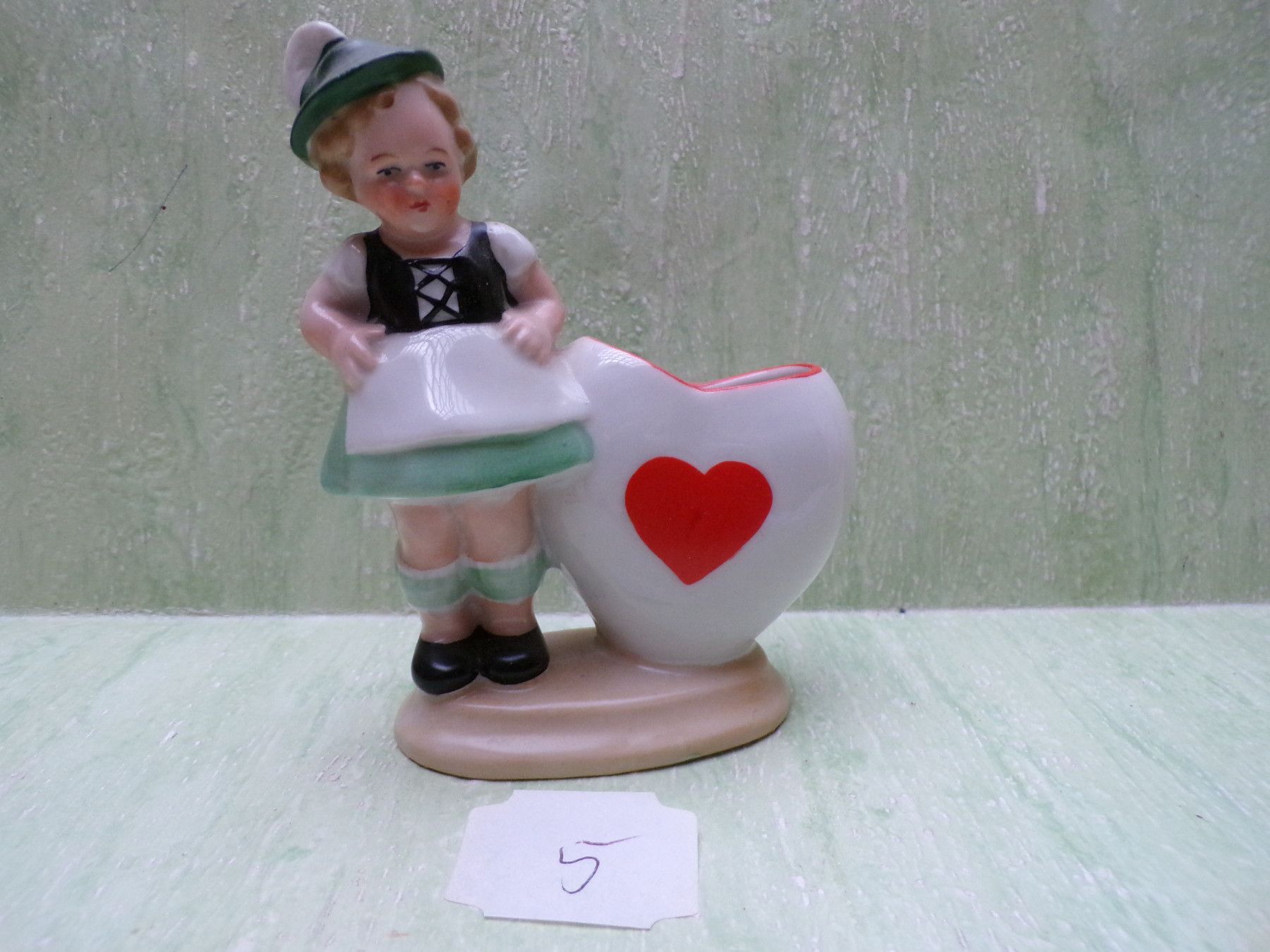 1: Bock Wallendorf Bub schwarzer Hut 11cm, 2: VEB Ilmeau 6307 Mädel grüner Hut 11cm, 3: -ohne BM- Hund Blumenstrauß 7cm