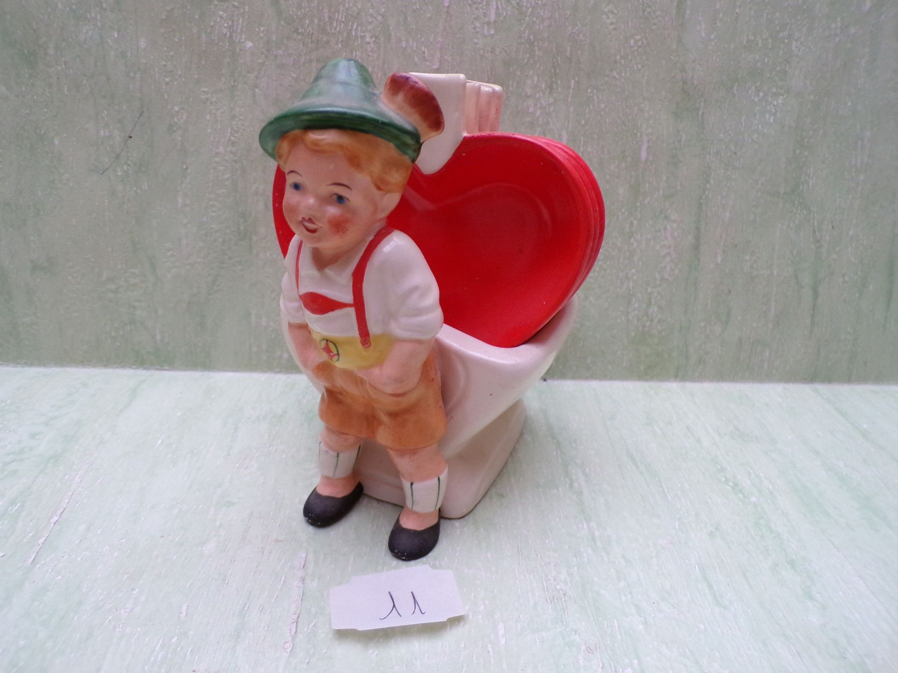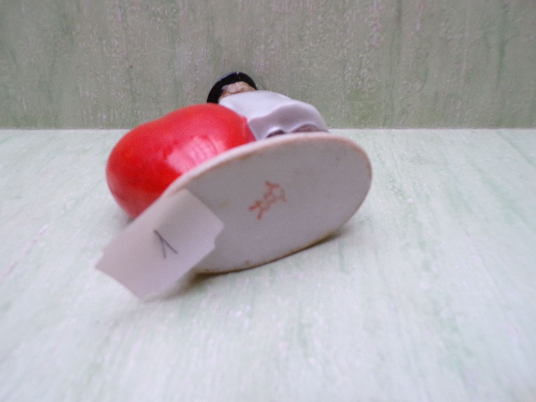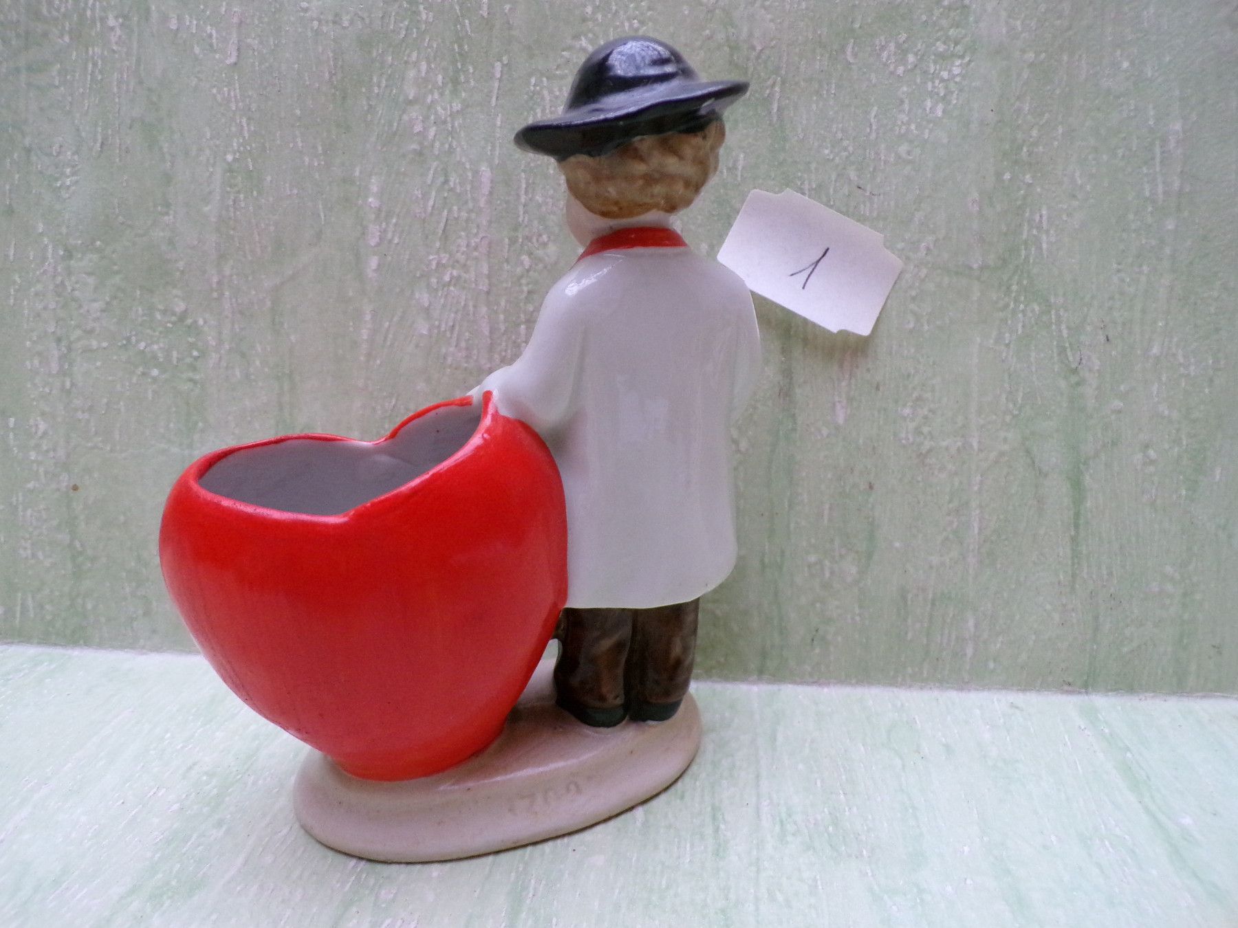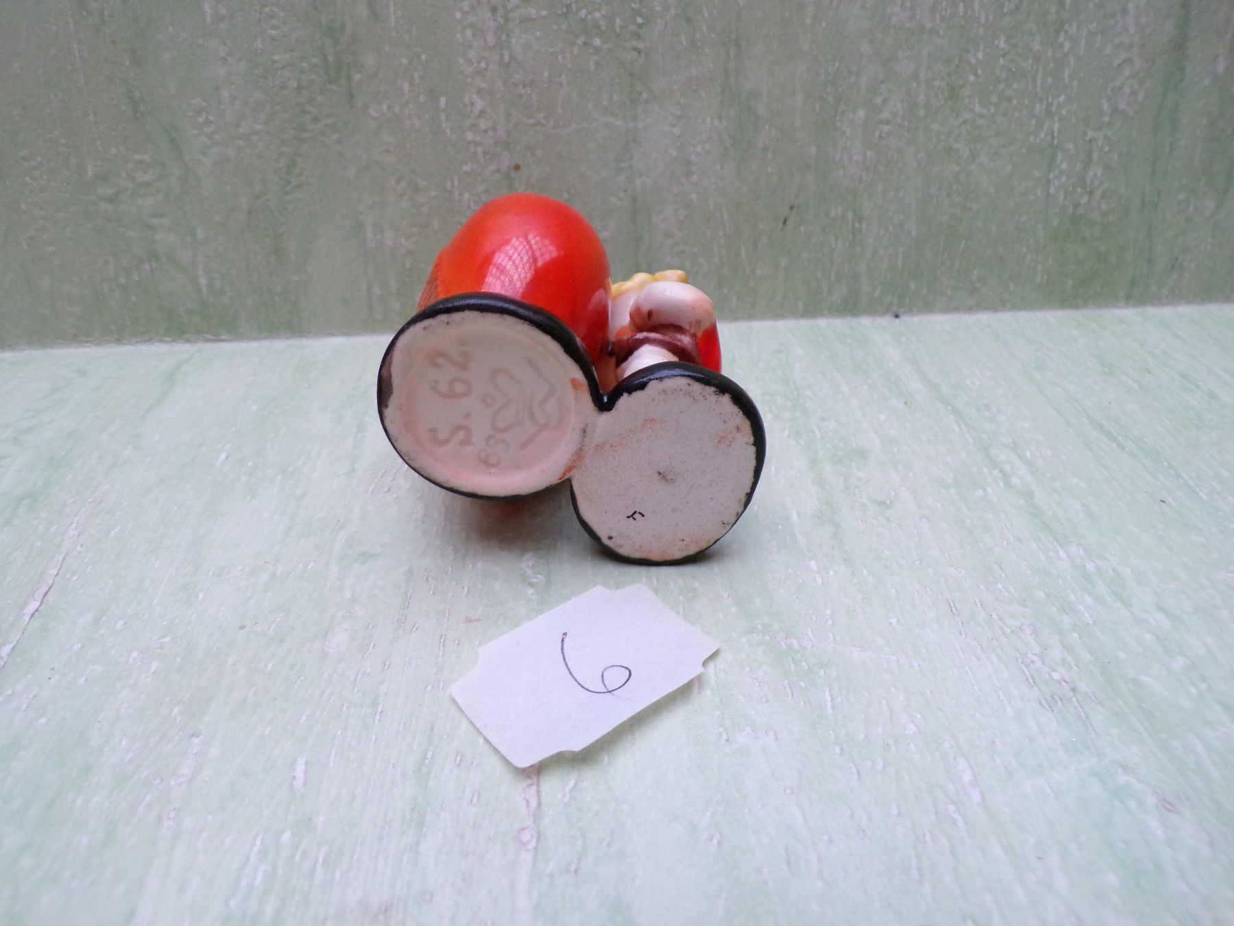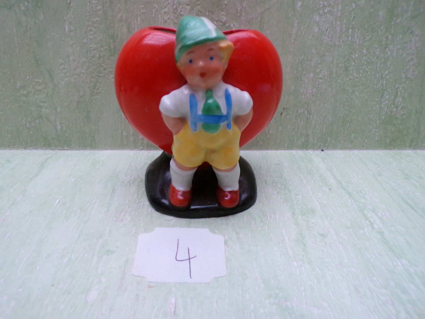 1: Bock Wallendorf Bub schwarzer Hut 11cm, 2: VEB Ilmeau 6307 Mädel grüner Hut 11cm, 3: -ohne BM- Hund Blumenstrauß 7cm