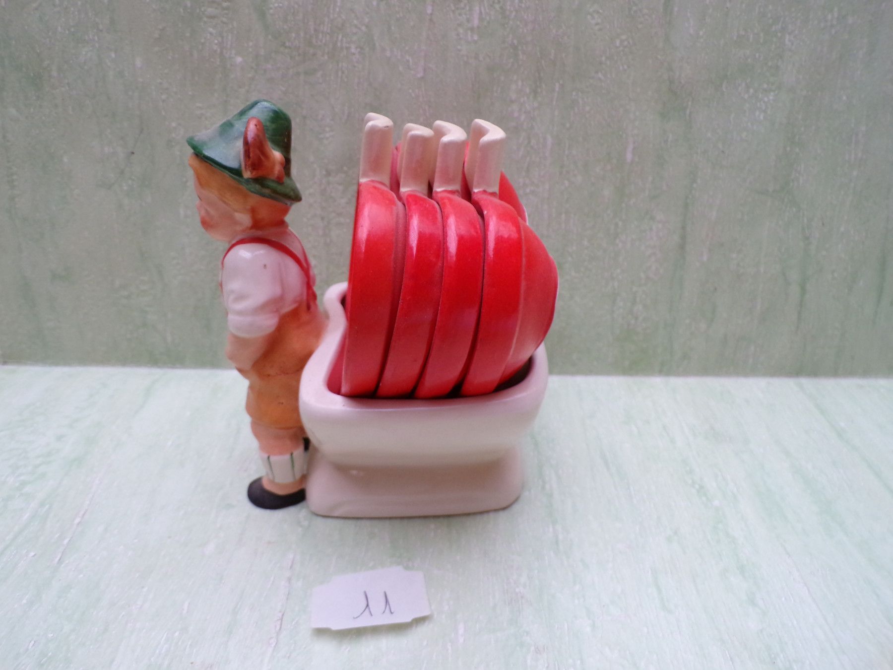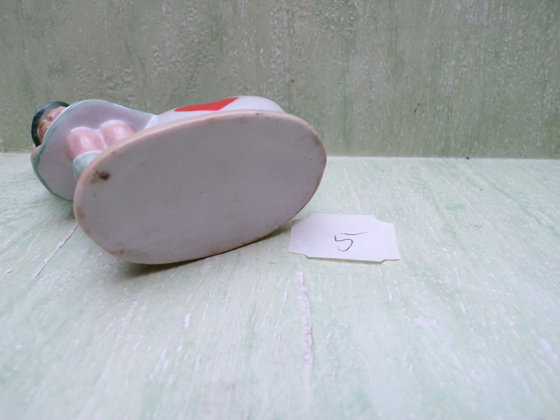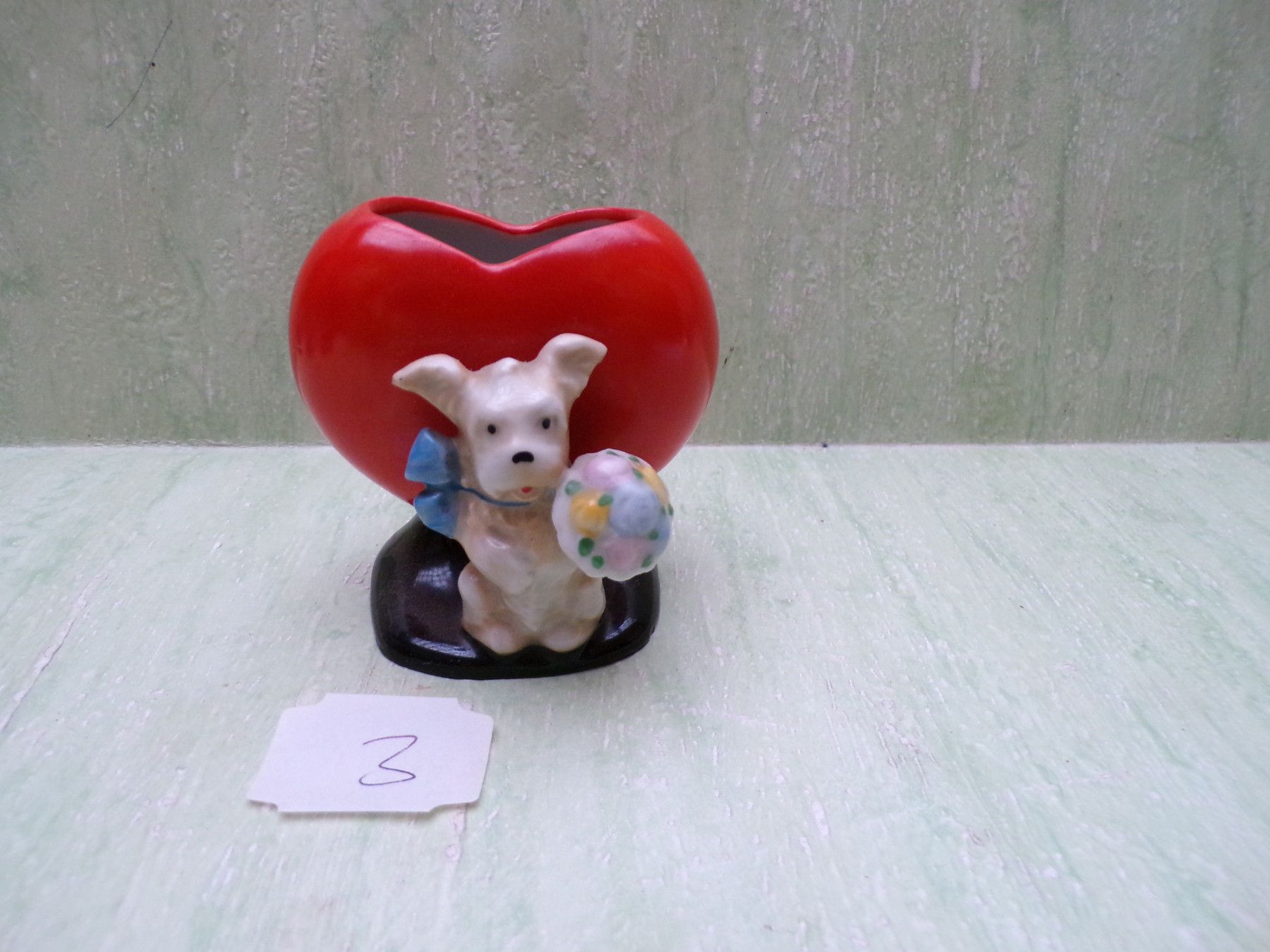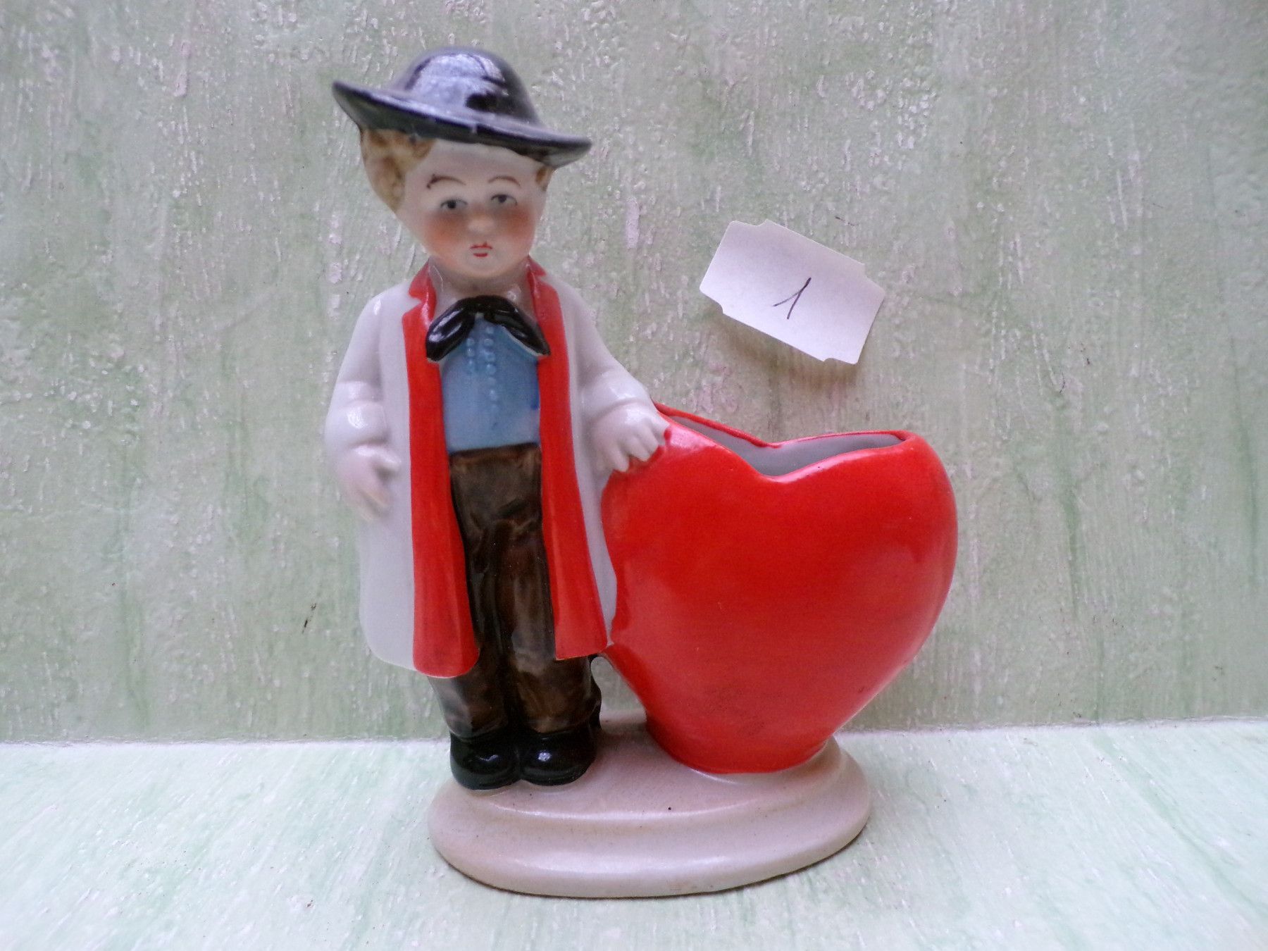 1: Bock Wallendorf Bub schwarzer Hut 11cm, 2: VEB Ilmeau 6307 Mädel grüner Hut 11cm, 3: -ohne BM- Hund Blumenstrauß 7cm