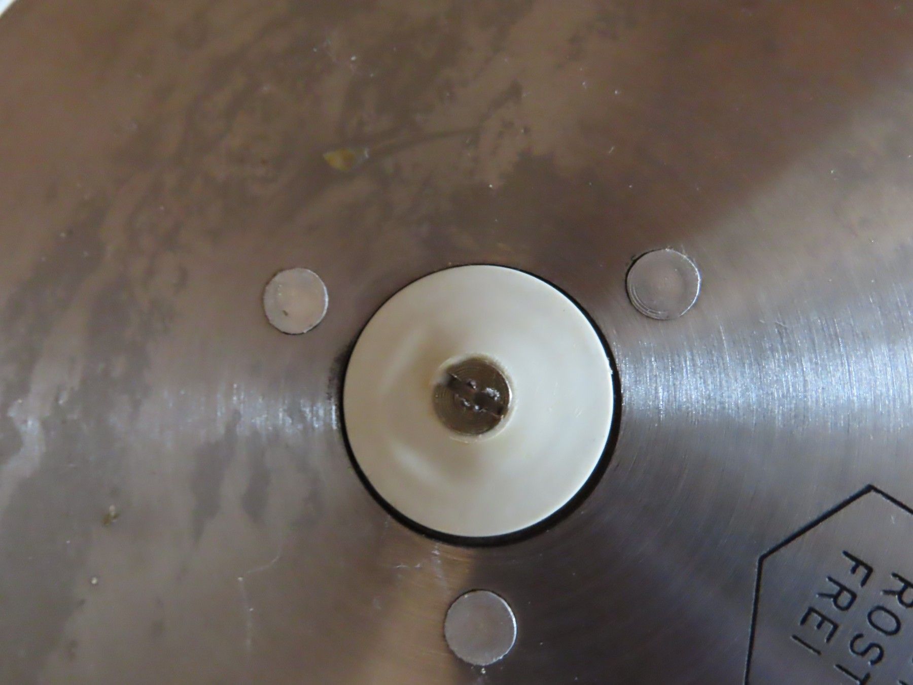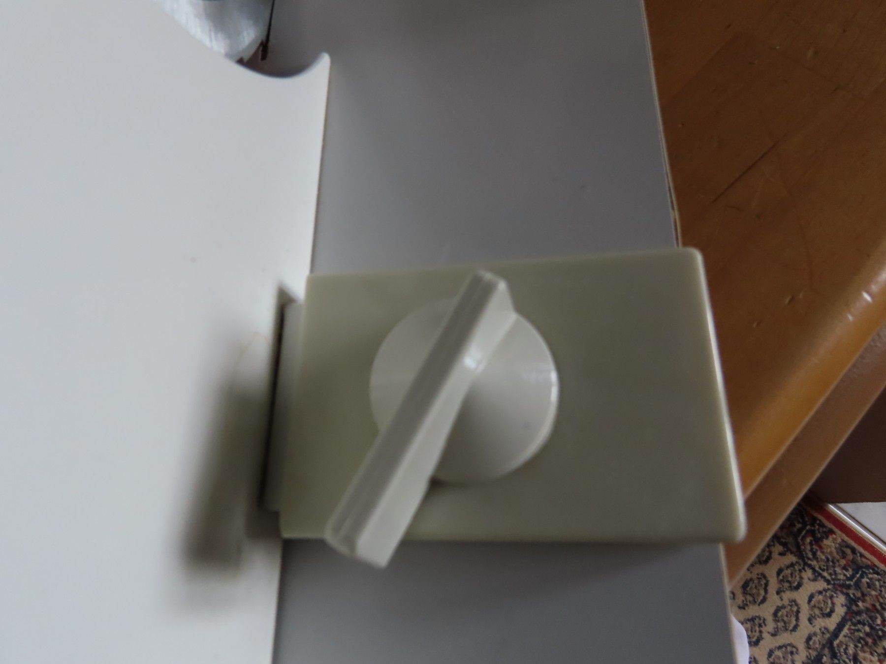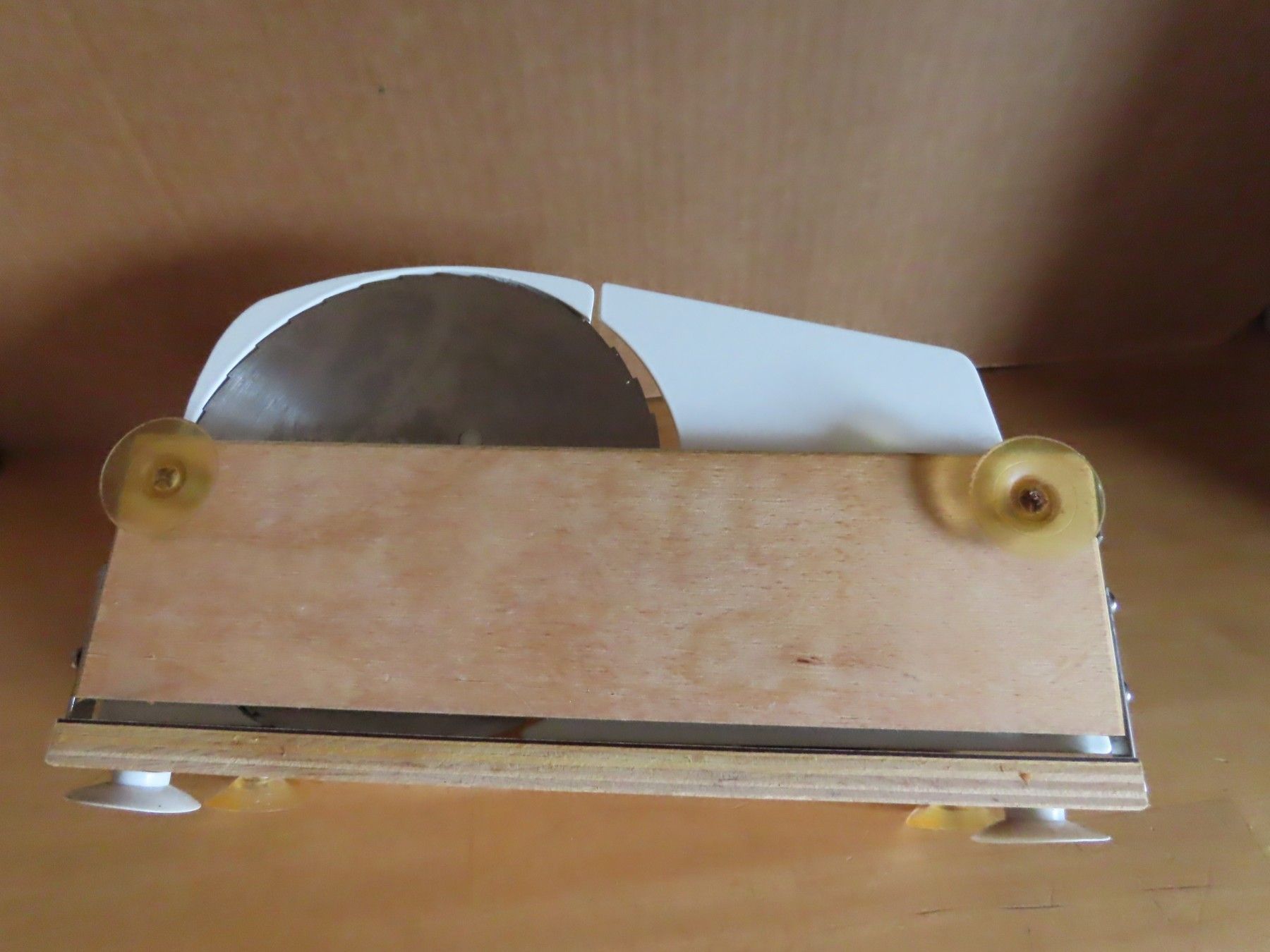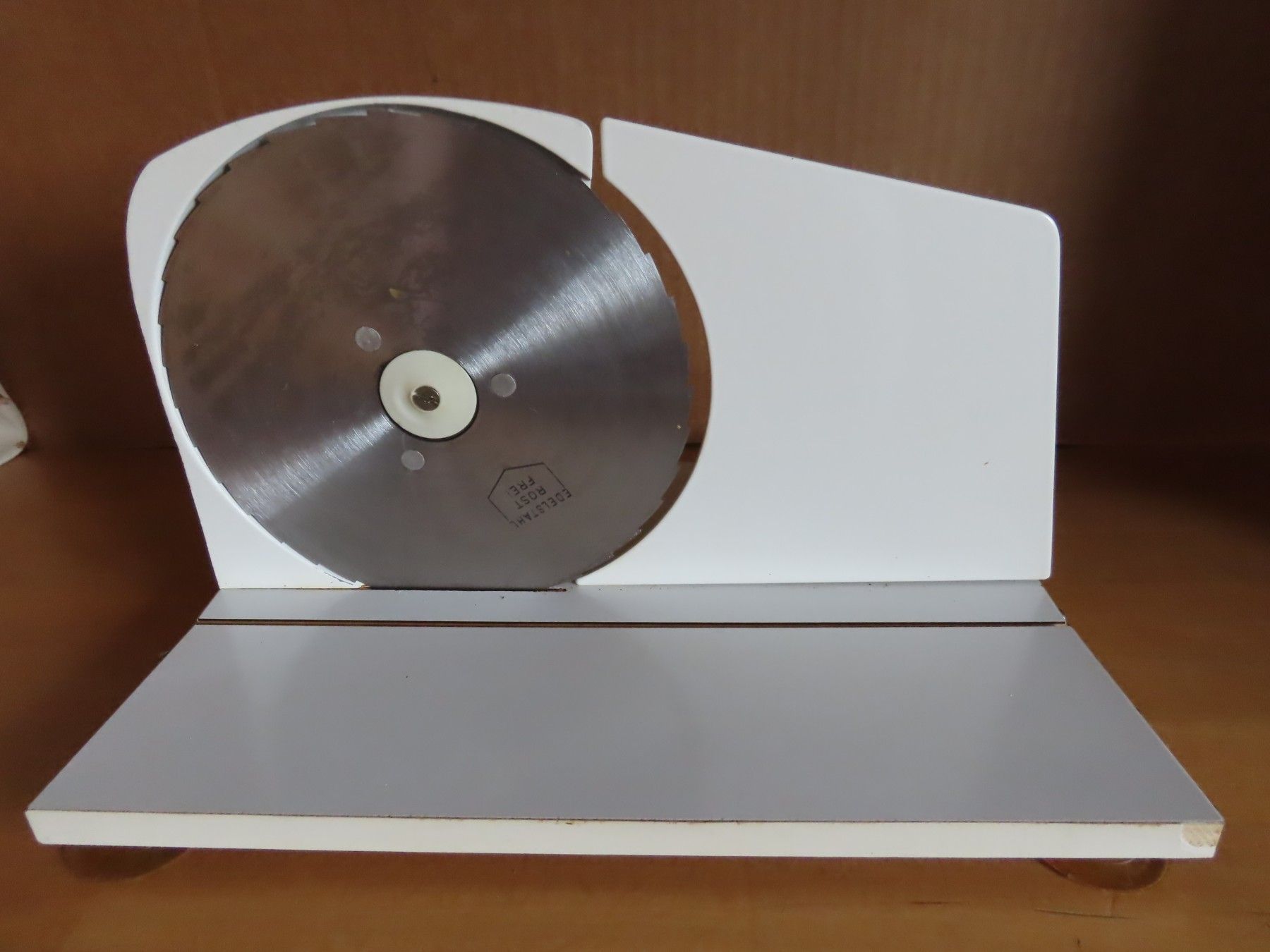 alte Kurbel-Brotmschine Brotschneidemaschine klappbar weiß Schulte