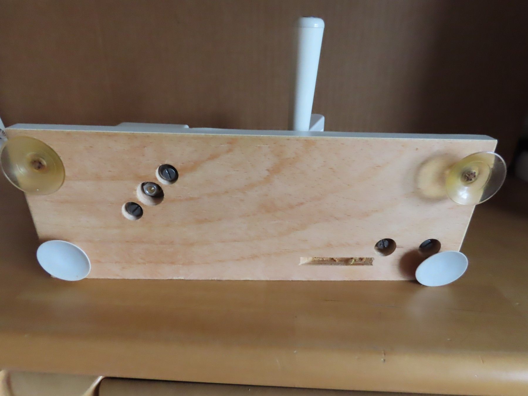 Saugnäpfen auf der Unterseite - Maße: ca.30,5 cm x ca. 20 cm x ca. 19,5 cm ----immer die breiteste Stelle gemessen Material: Holz Metall mit Saugnäpfen ist leicht verschmutzt vergilbt, Furnier ist an einer Stelle abgebrochen