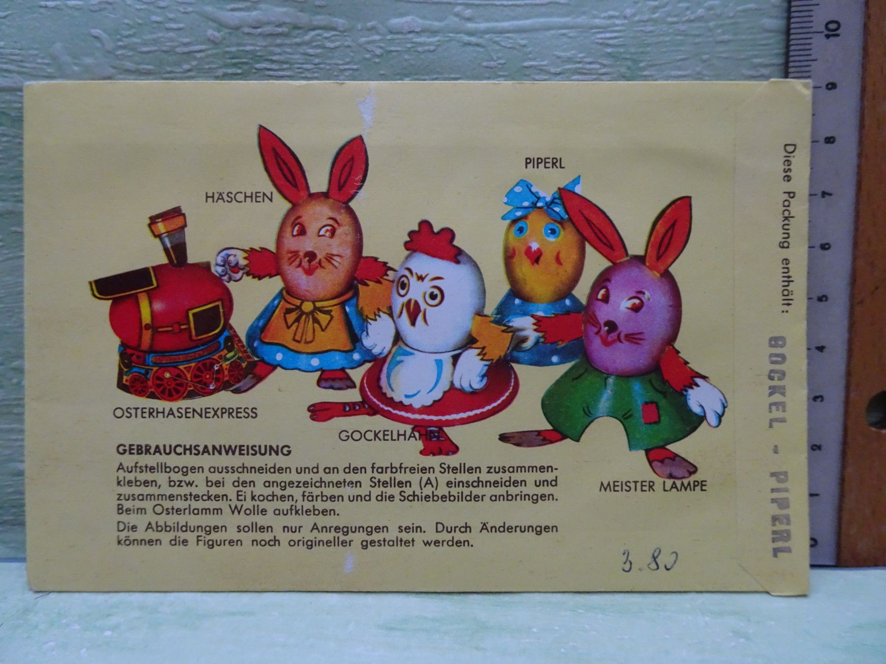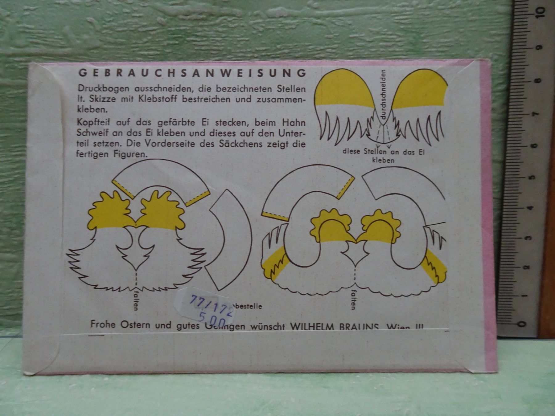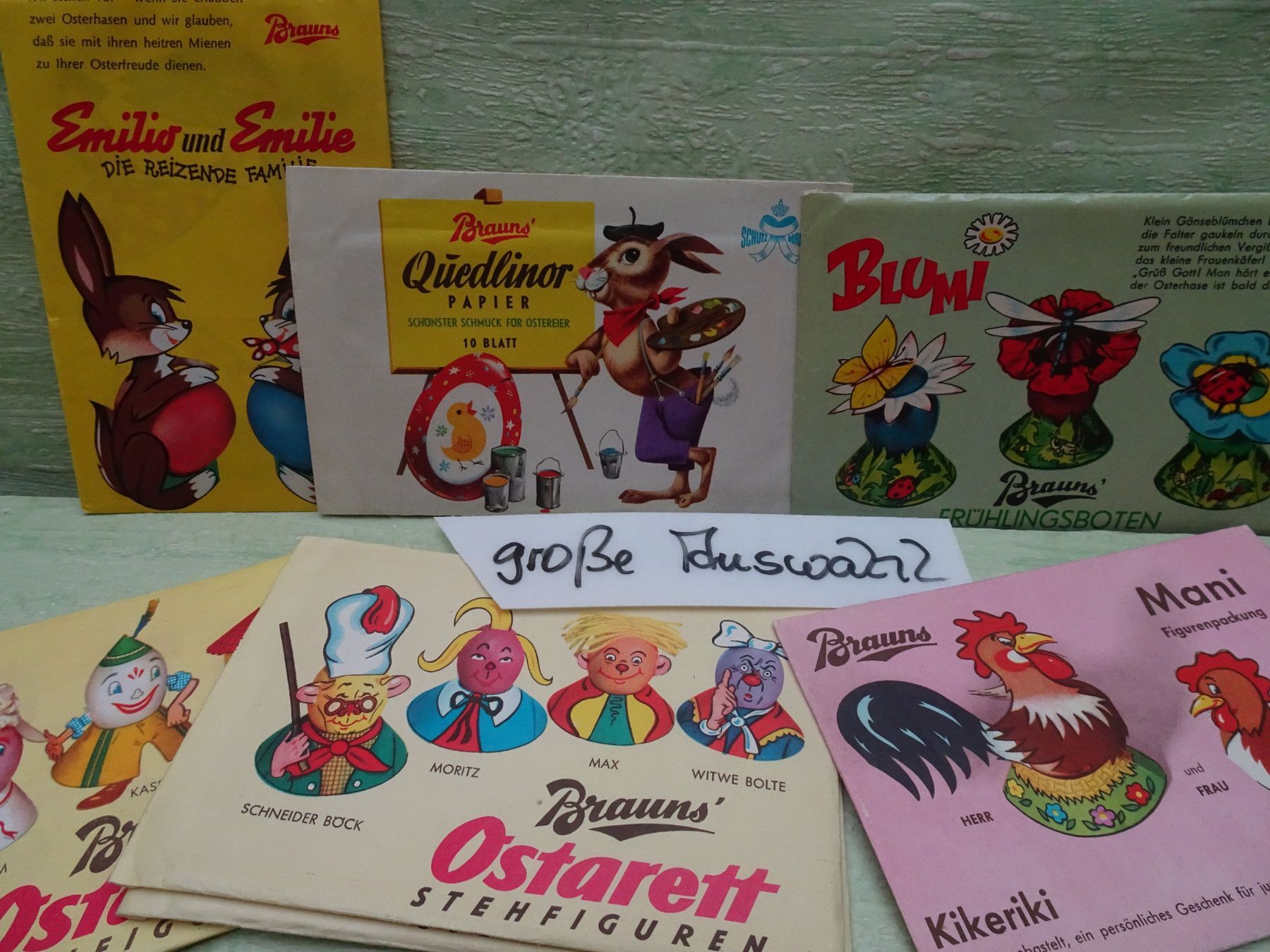 * * * Sammeln & Seltenes - Reklame & Werbung * * * * ... aus Freude an schönen Dingen ..... 50er Jahre als NEU deklariert, da alle Verpackungen noch OVP sind Wilhelm Brauns Wien es handelt sich um alte Papierfiguren zum Basteln für Ihre Ostereier & 1x ist ein Färbemittel dabei - Quedlino... Mehr