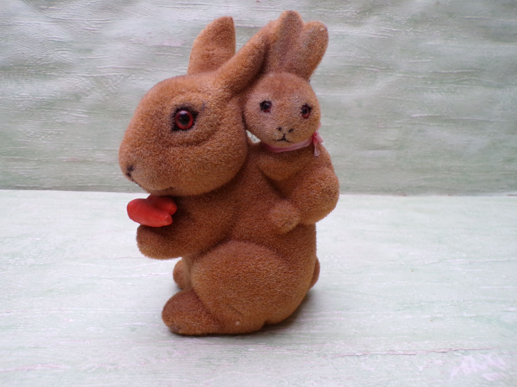 alte Osterhasen Eichhörnchen ca 15cm beflockt Vintage sehr leicht