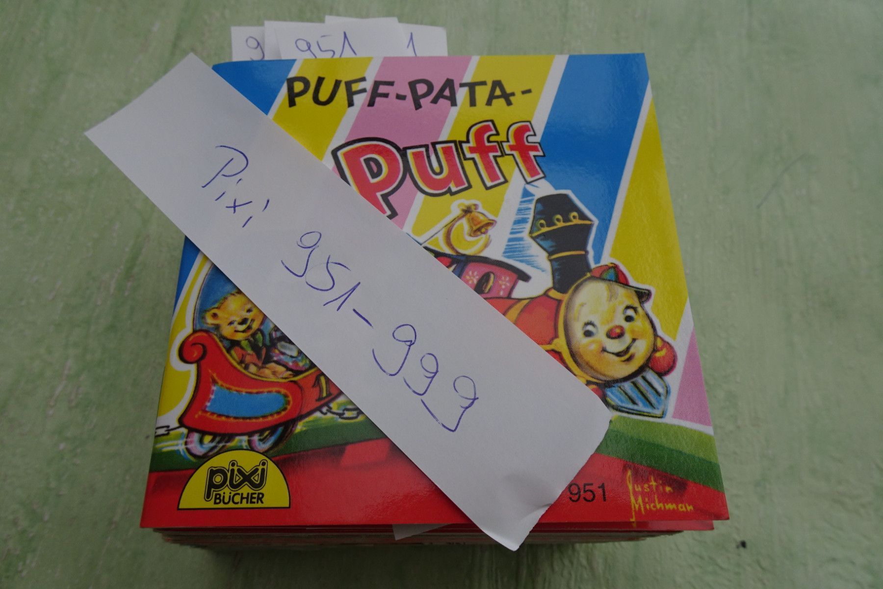 Bilderbücher - Kinderbücher ... Erinnerungen ..... Bilderbücher zum Vorlesen und Selbstlesen Carlsen Verlag Reinbek Ein Pixi Buch Abkürzung in der Artikelauswahl : K-rost für Heftklammer ist rostig EO für Eselsohren bzw leichte Eckenspuren CK für Coverknick 951 : Puff-Pata-Puff von Justin Michman 95... Mehr