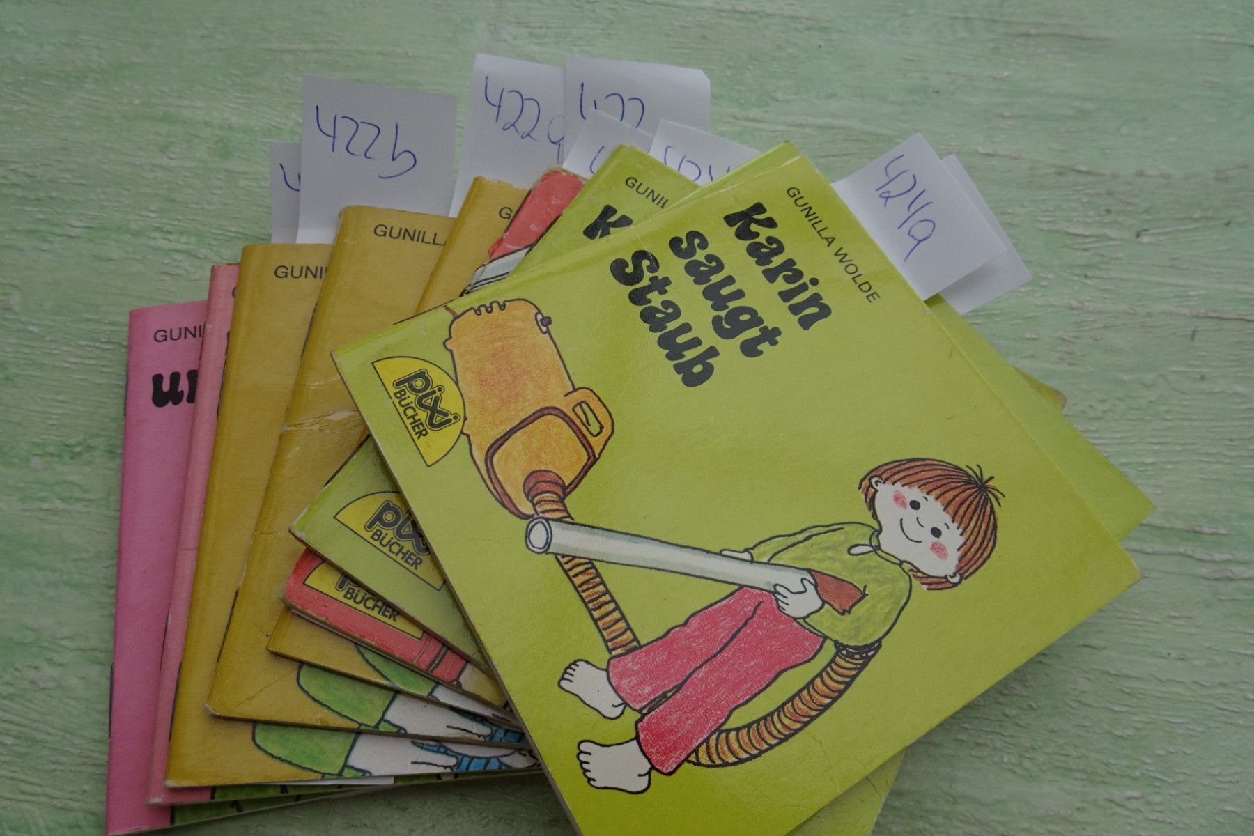 Bilderbücher - Kinderbücher ... Erinnerungen ..... Bilderbücher zum Vorlesen und Selbstlesen Carlsen Verlag Reinbek Ein Pixi Buch Abkürzung in der Artikelauswahl : K-rost für Heftklammer ist rostig EO für Eselsohren CK für Coverknick Gunilla Wolde : Karin saugt Staub Karin beim Zahnarzt Karins klein... Mehr