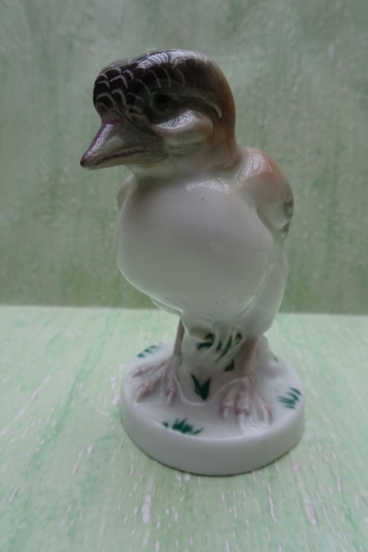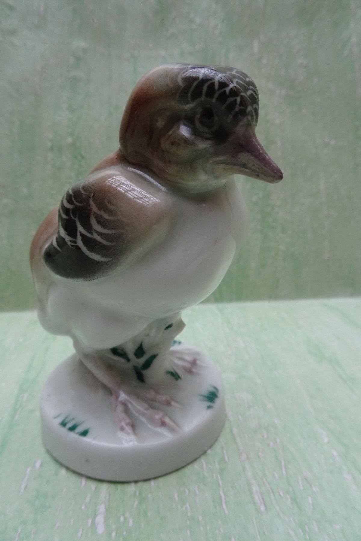 alte Porzellan Figur Tier Vogel Küken Ens "grün Thüringen Volkstedt handgemalt ca 8cm