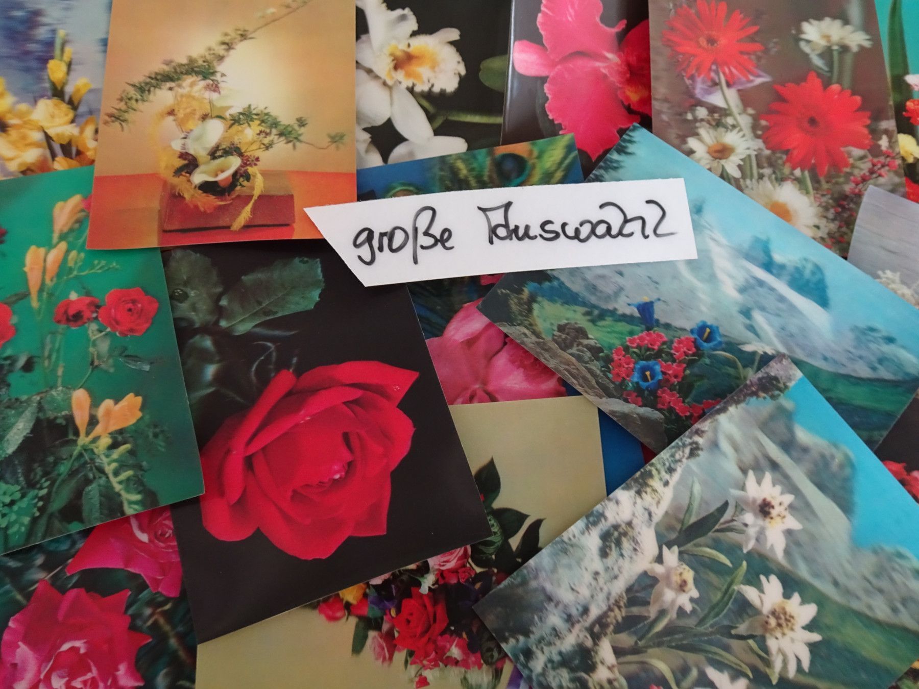 alte Postkarten AK 3D Toppan Stereo Gunkel Blumen Fresien Edelweiss Enzain Rosen....