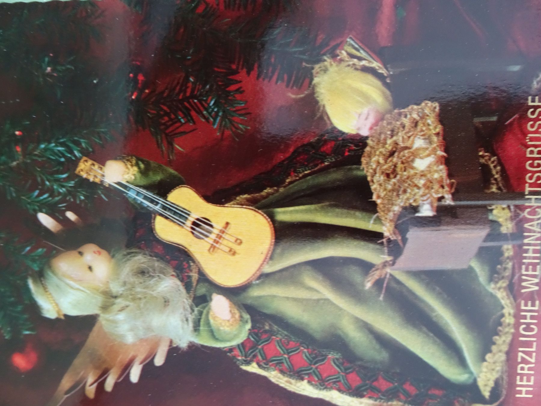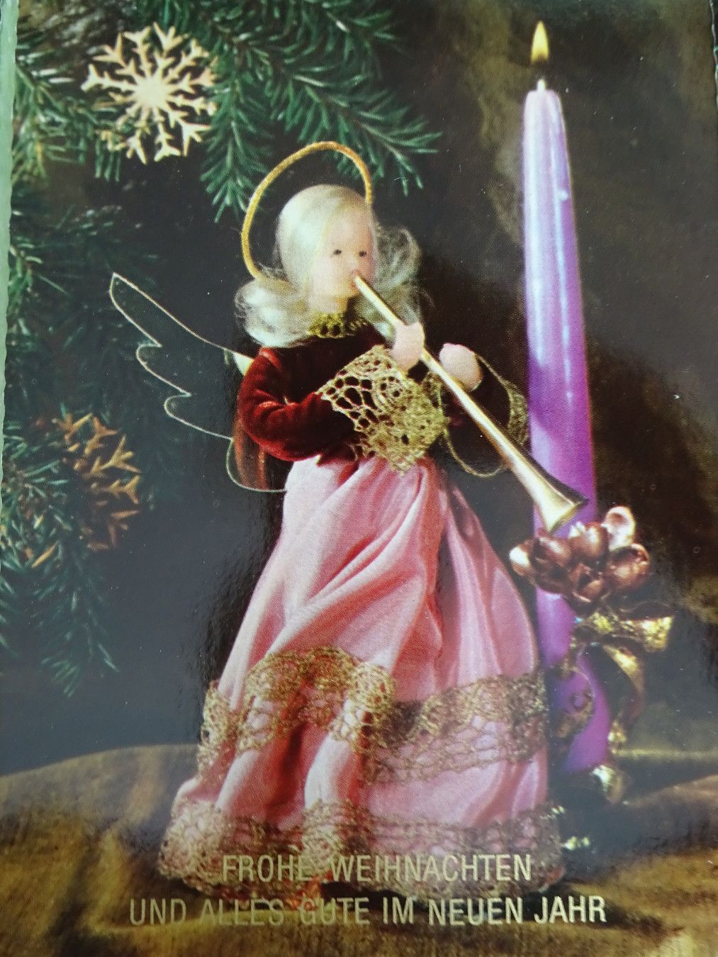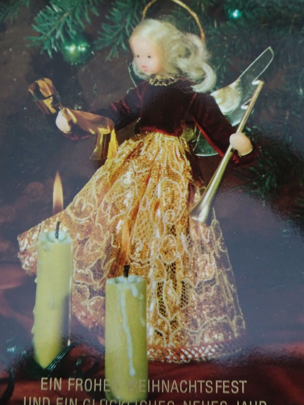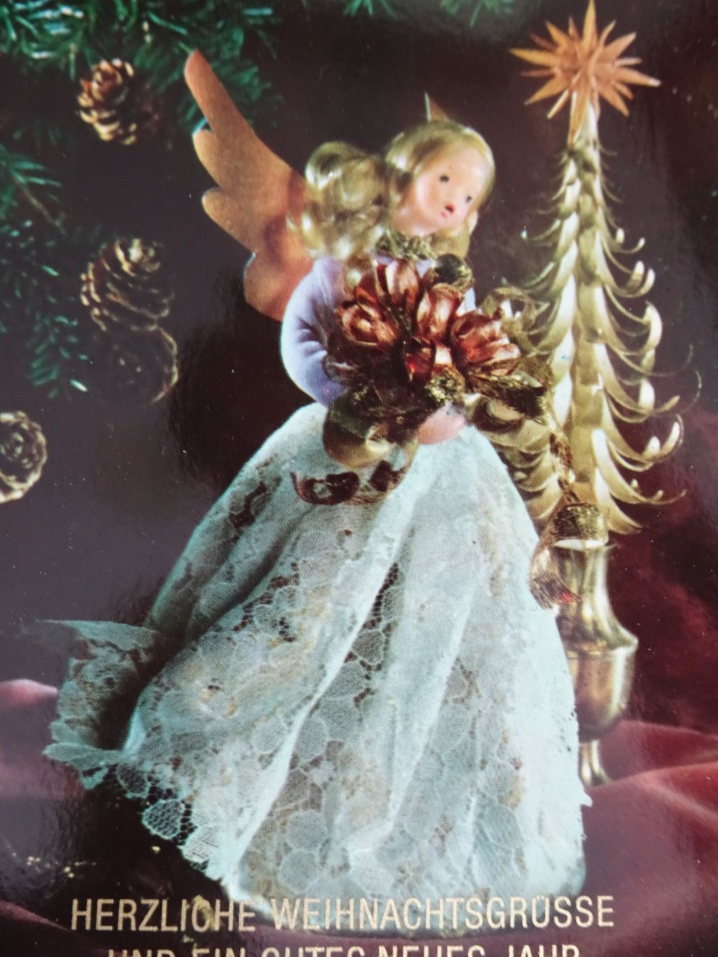 alte Postkarten AK Horn Verlag Germany Weihnachten Brokat Rauschgoldengel Wachsengel