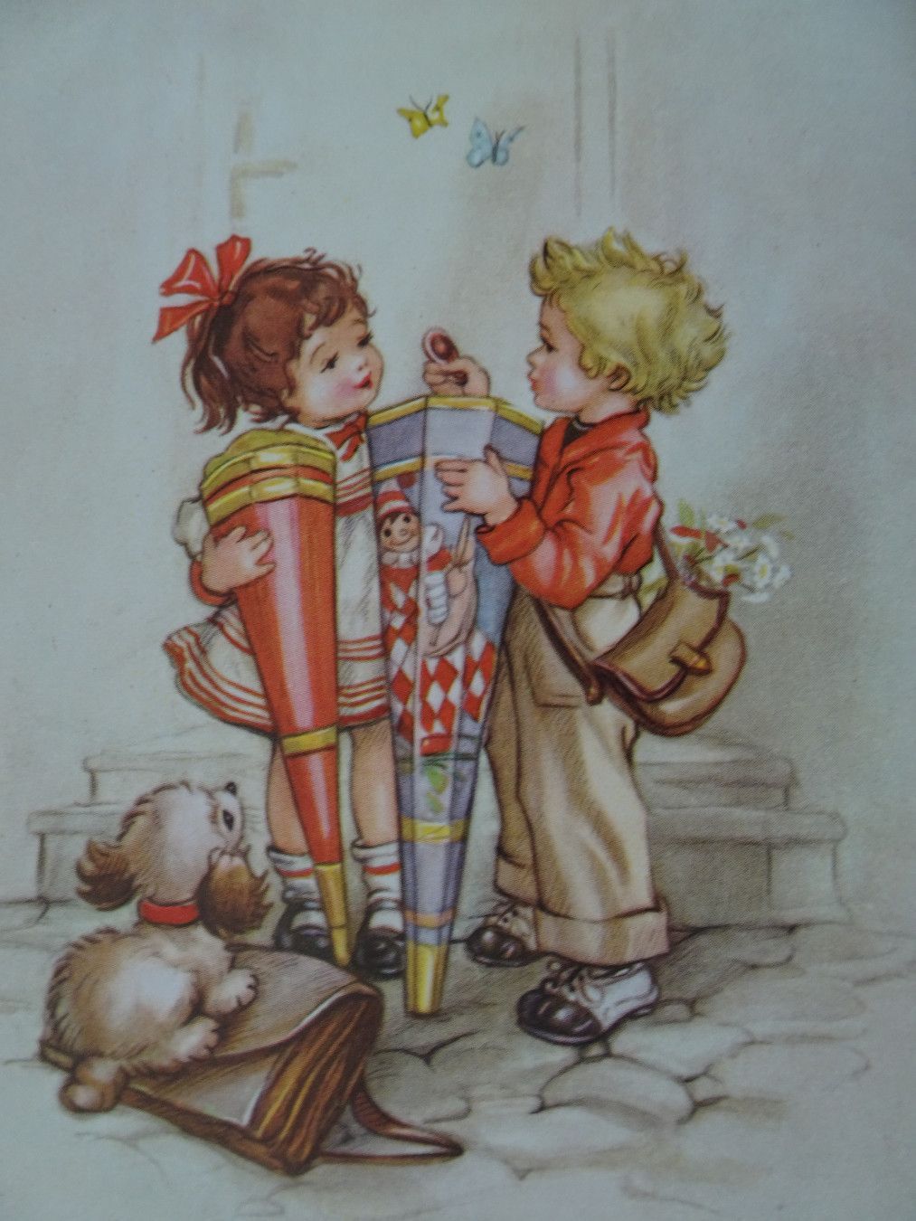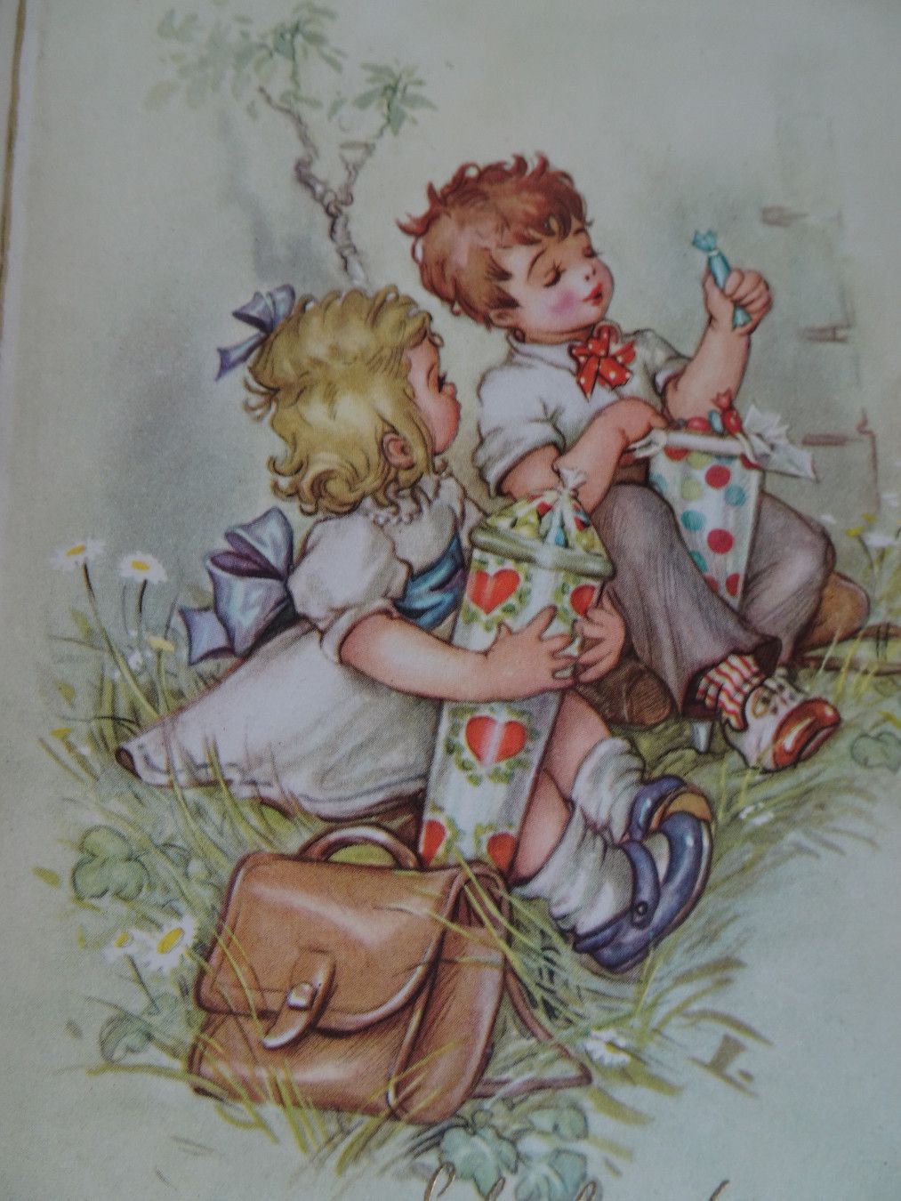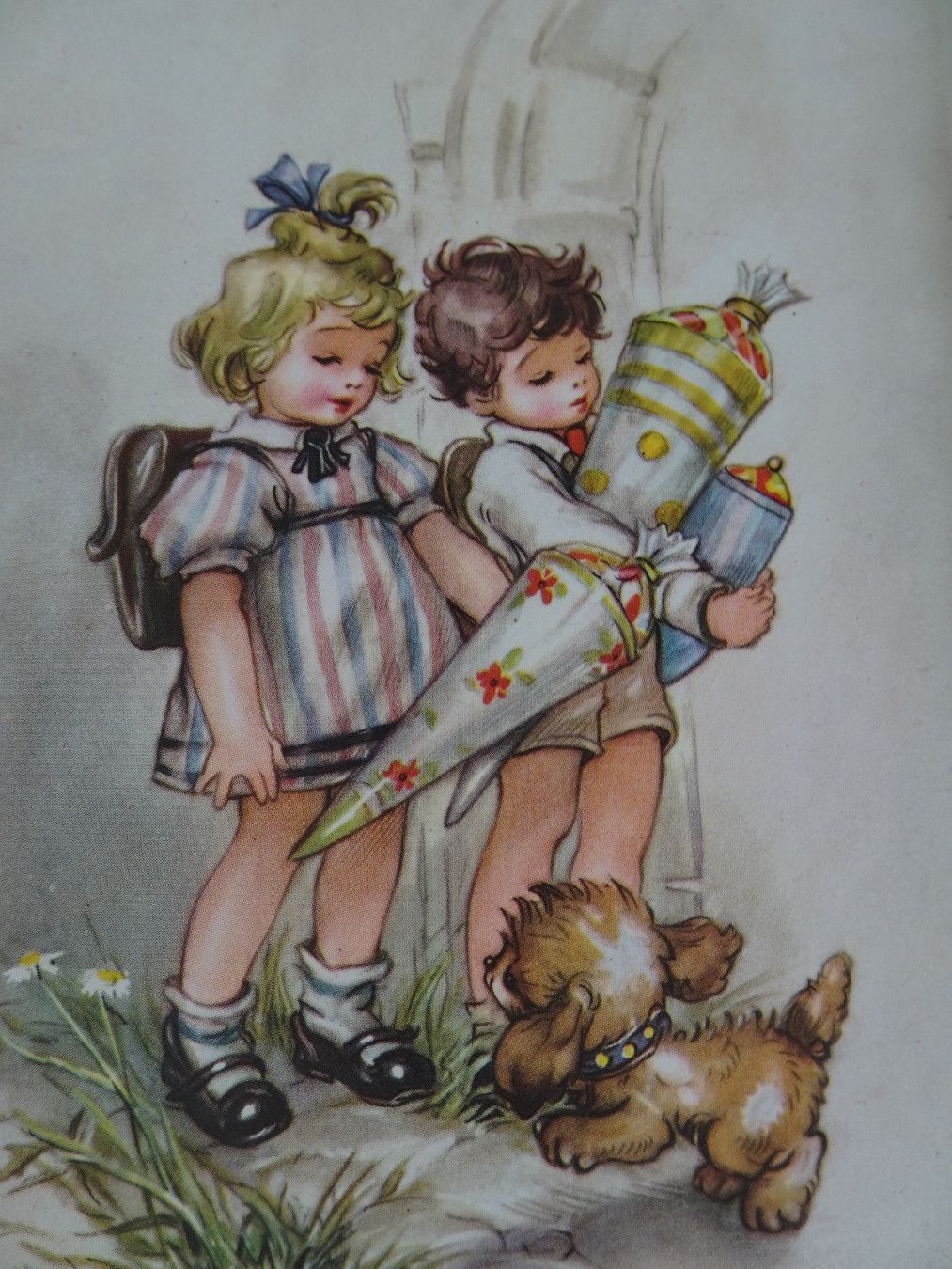 alte Postkarten AK "Schiff" Germany 155 Zum Schulanfang Goldrand geprägte Schrift