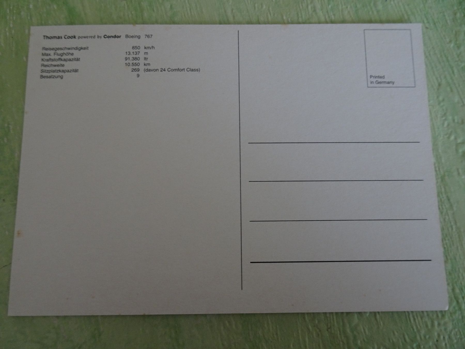 alte Postkarten Flugzeug Boeing 767 Thomas Cook