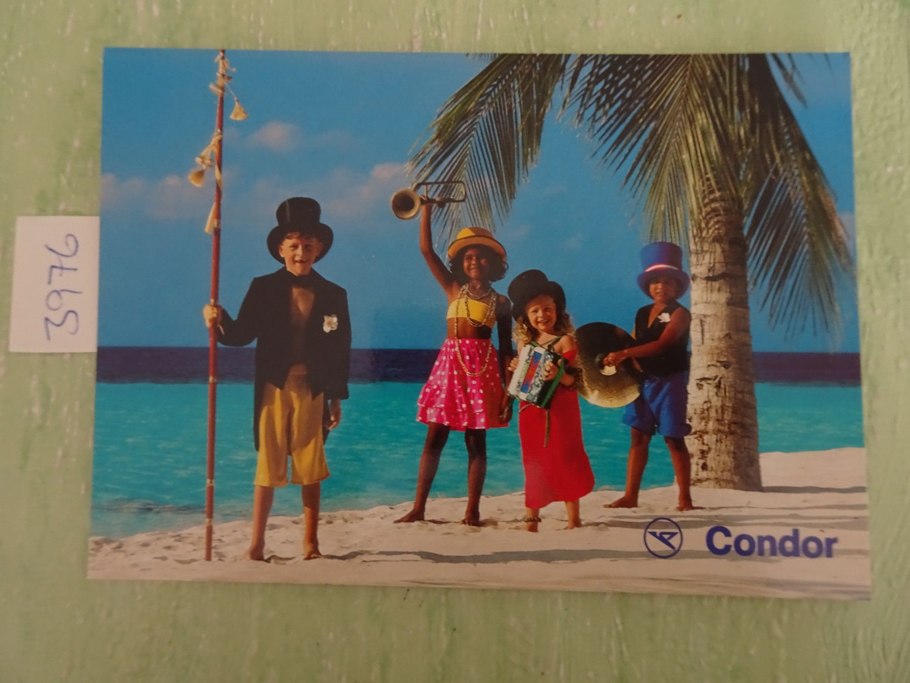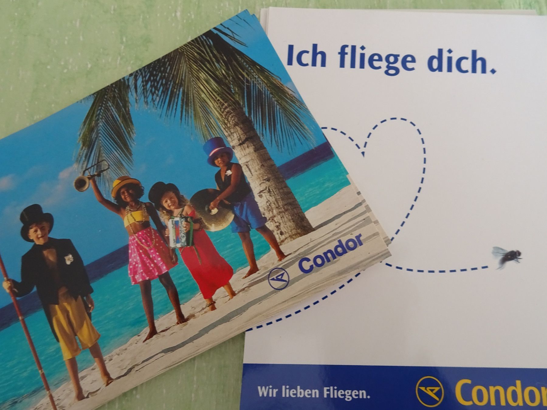 alte Postkarten Flugzeug Condor Werbung Ich fliege Dich Till Leeser Kinder am Strand