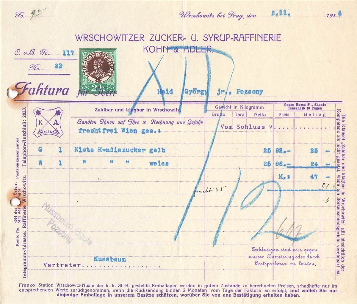 Alte Rechnung, Kohn & Adler, Wrschowits" 03.11.1913