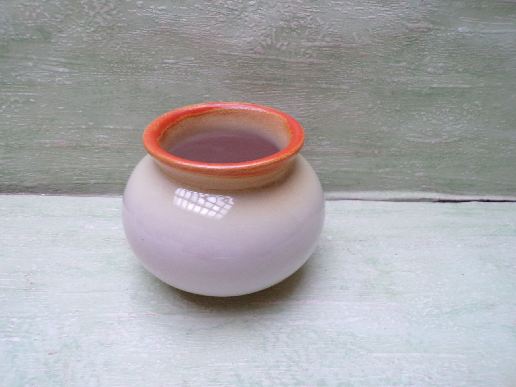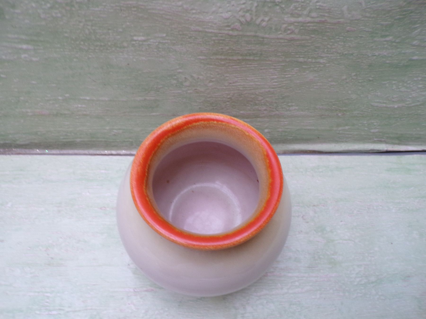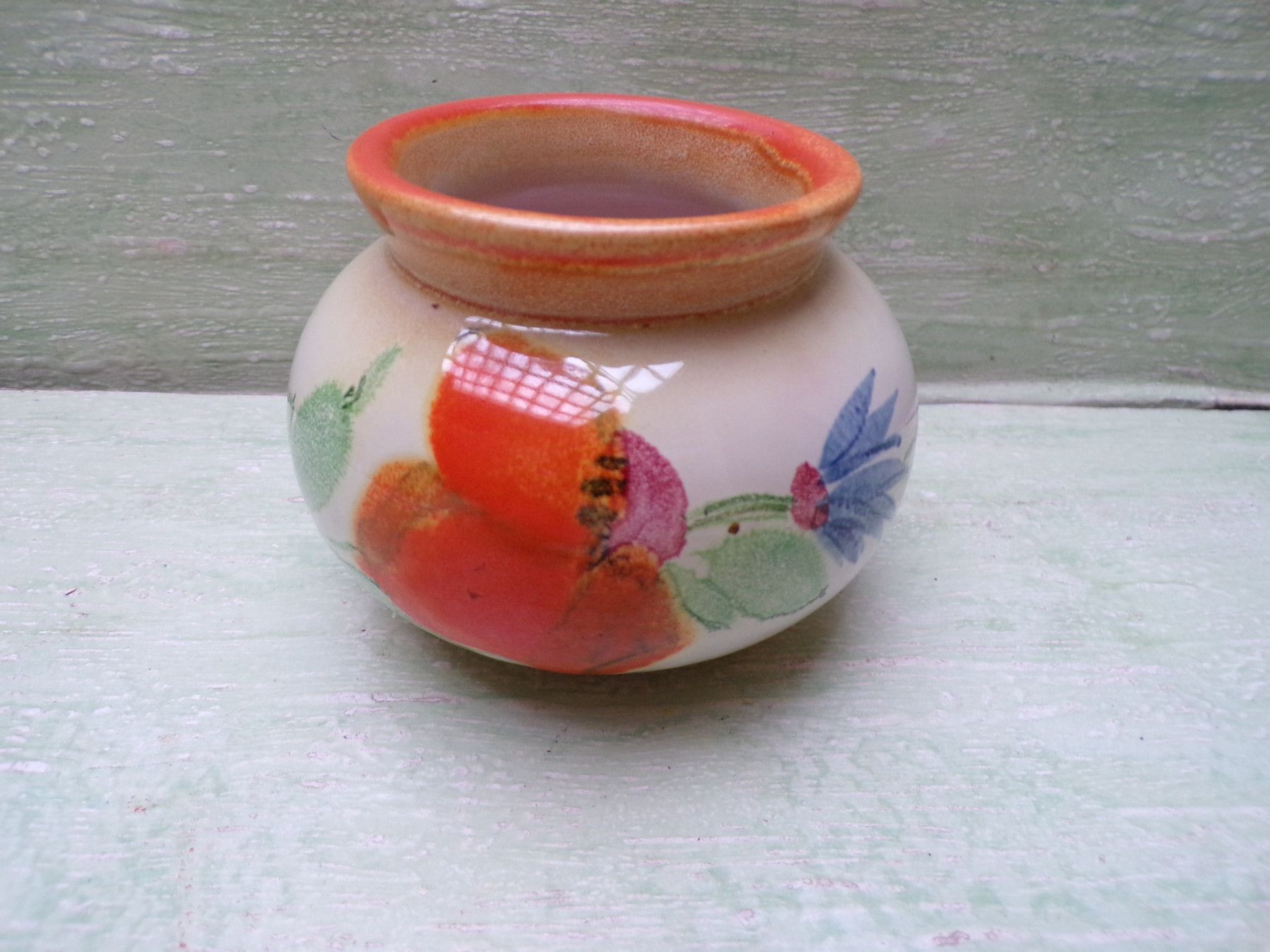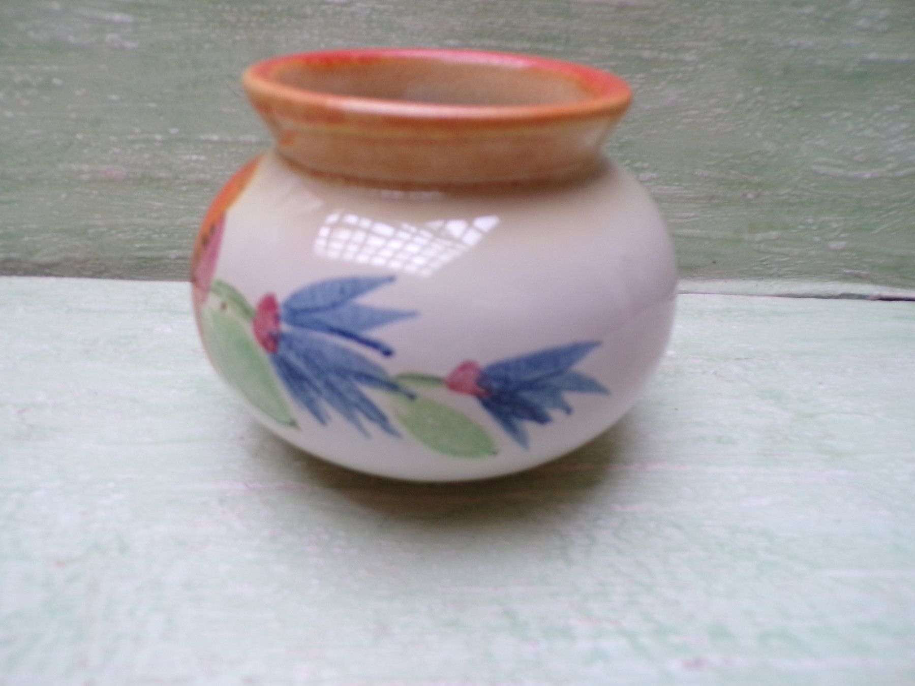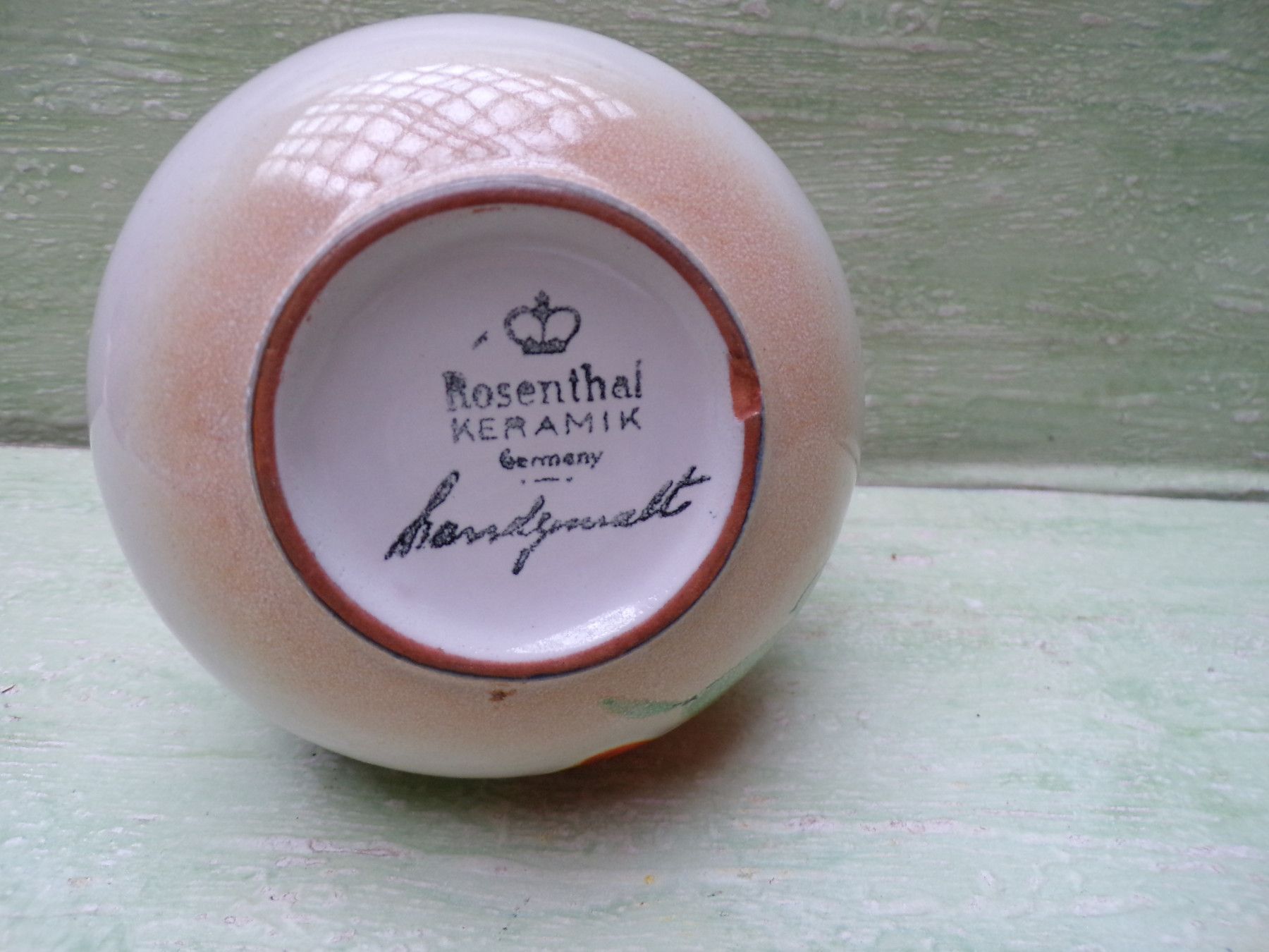 alte Rosenthal Keramik handgemalt "Kugelvase orange creme blau Blüten ca 8cm
