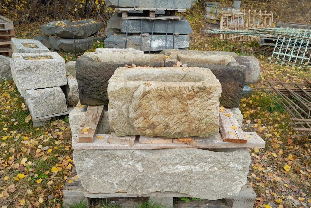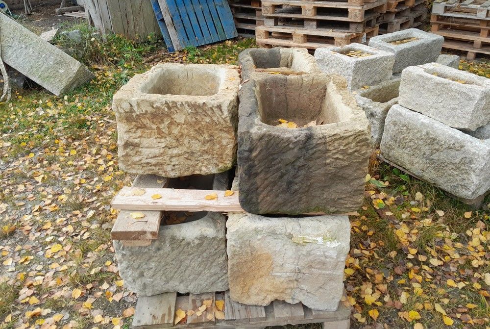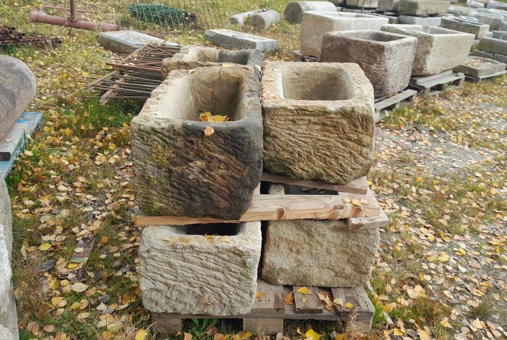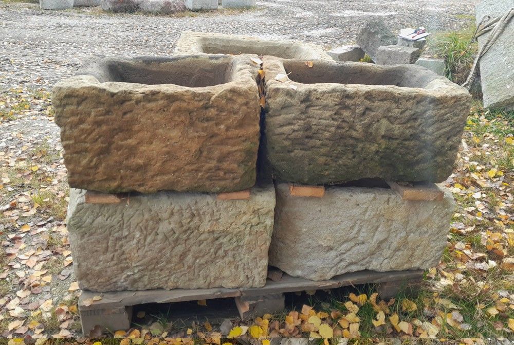 Sehr schöne Tröge aus altem Sandstein, robuster Stein, witterungsbeständig, ideal für Außenbereich, passt wunderbar in jeden Garten und vor jedes Haus Länge x Breite x Höhe: 55-65 x 40-45 x 30-35 cm 5 Stück auf Lager Preis pro Stück: Euro 335,29 zzgl. MwSt. = Euro 399,-- Lieferung per Spedition und ... Mehr