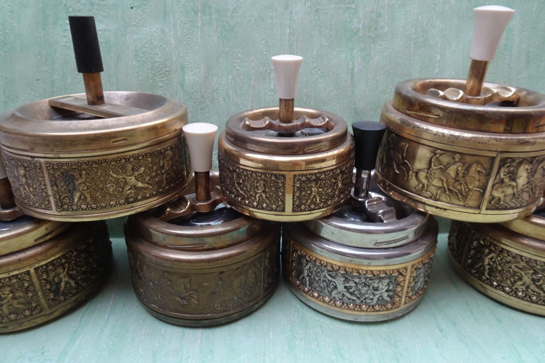 Sammeln & Seltenes ... Erinnerungen ..... Erhard & Söhne original alte Schleuderascher Aschenbecher gebraucht, könnten aufpoliert werden sonst in gutem Zustand voll funktionsfähig Die großen sind ca 11,5cm im Durchmesser, der kleine ca 9cm im Durchmesser !!! ... bitte Fotos anschauen ... !!!