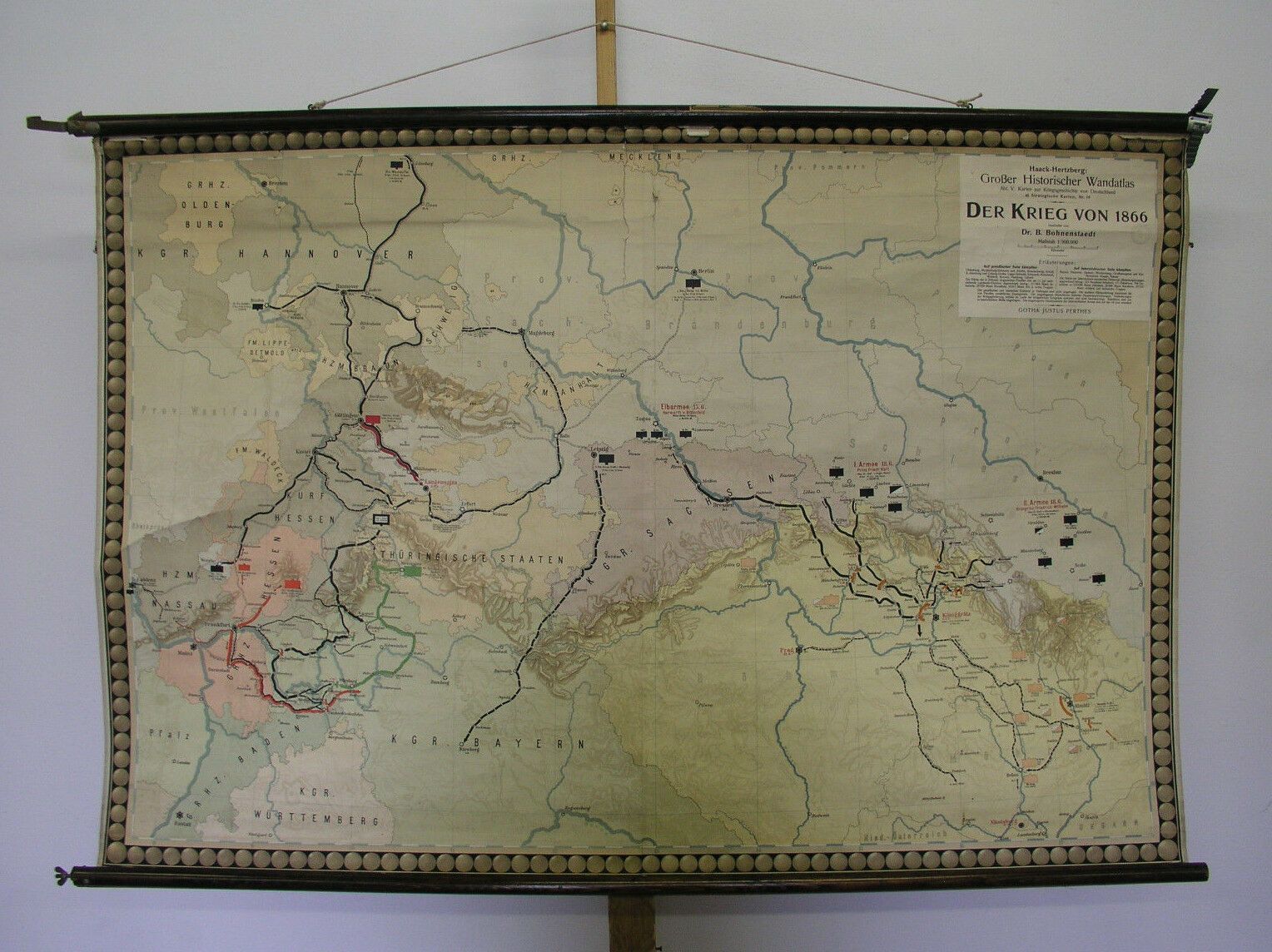 alte Schulwandkarte Der Krieg von 1866 Der Deutsche Krieg 160x107 1930 vintage Siehe in der Liste unter Nr. 1027 Der Krieg von 1866 (KR812) Kartensammler (allumfassend...speziell deutsche bezahlbare Karten ab 1900) verkauft hier seine doppelten Exemplare der Schulwandkarten ( Wandkarte Wandkarten Ro