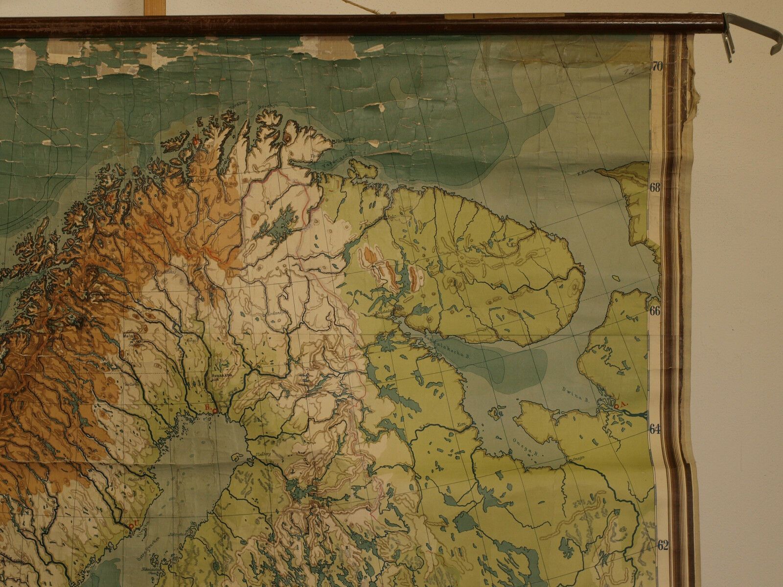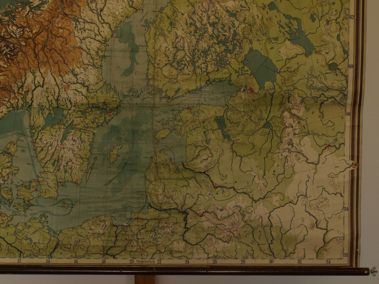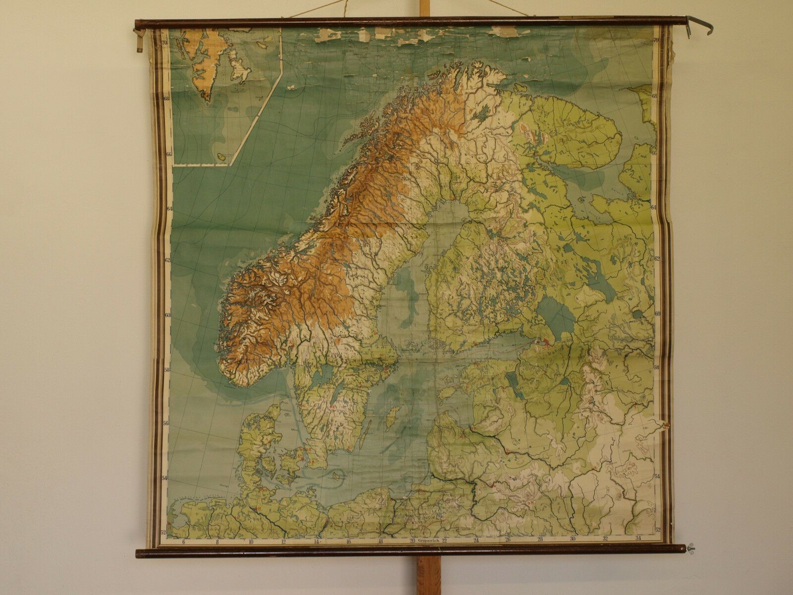 alte Schulwandkarte Nordeuropa Skandinavien Scandinavia Scandia 1940 145x151cm