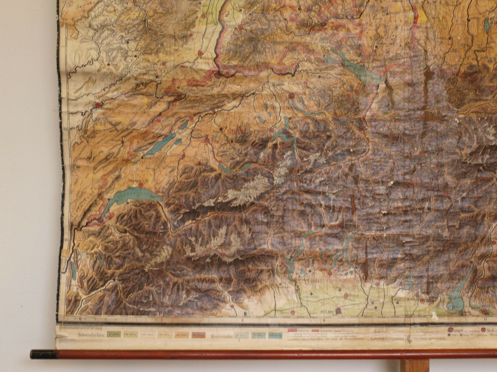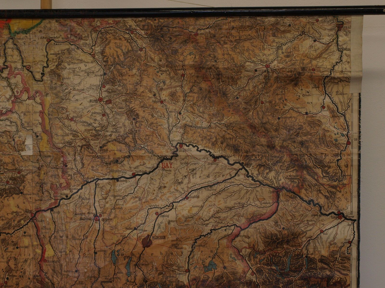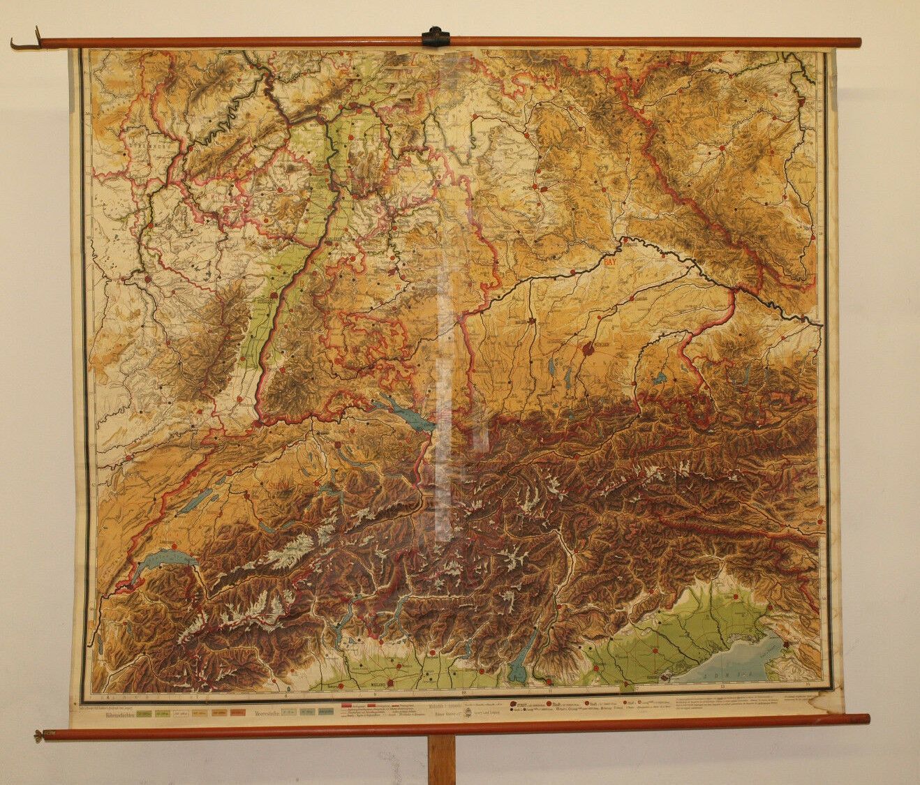 alte Schulwandkarte Süddeutschland Alpen vintage german wall map 200x174cm 1920