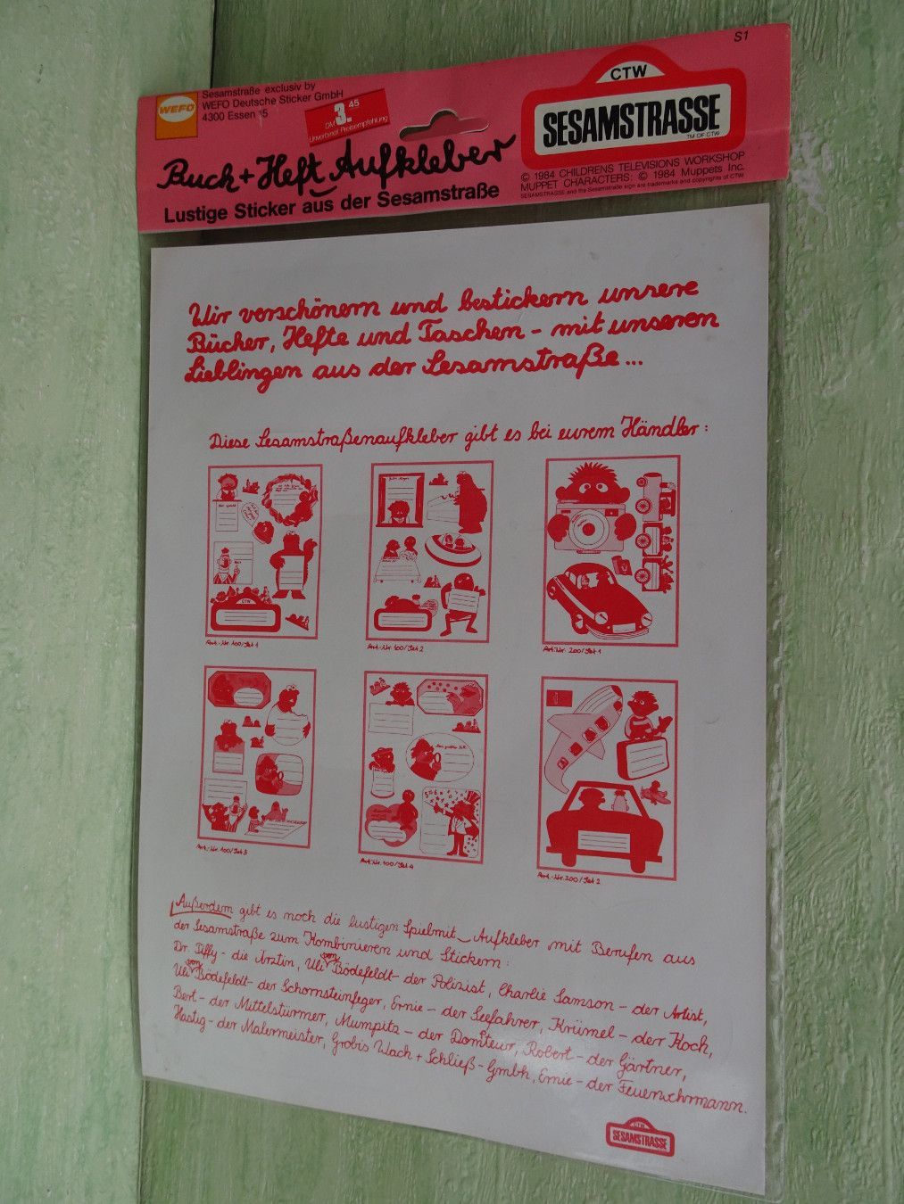* * * Sammeln & Seltenes - Reklame & Werbung * * * * ... aus Freude an schönen Dingen ..... alles Stickerbogen sind OVP ca Din A4 (C) 1984 Childrens Television Workshop Muppet Characters Taschen-Aufkleber Spiel mit Aufkleber Buch & Heft Aufkleber !!! ... bitte Fotos anschauen ... !!! Bes... Mehr